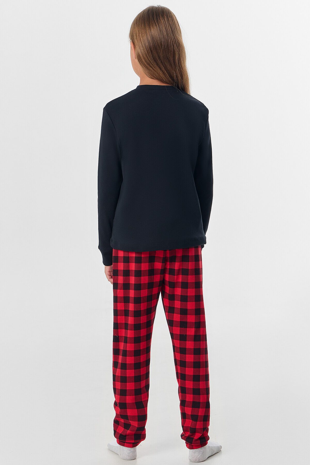 Уютный комплект для девочек, состоящий из джемпера с длинными рукавами и брюк. Джемпер свободного силуэта. Перед и спинка цельнокроеные. Горловина круглой формы из основного полотна. Рукава втачные, низ рукавов с притачными манжетами. Брюки прямые, с притачными манжетами. Пояс с эластичной тесьмой, которая обеспечивает отличную посадку. Стильная и комфортная детская пижама — лучший вариант для прохладного времени года. Широкий размерный ряд, красивые расцветки моделей в линейке. Рекомендуем!