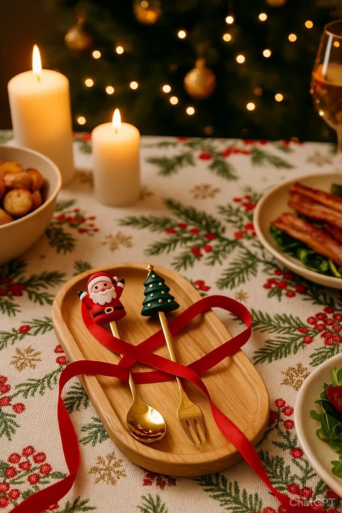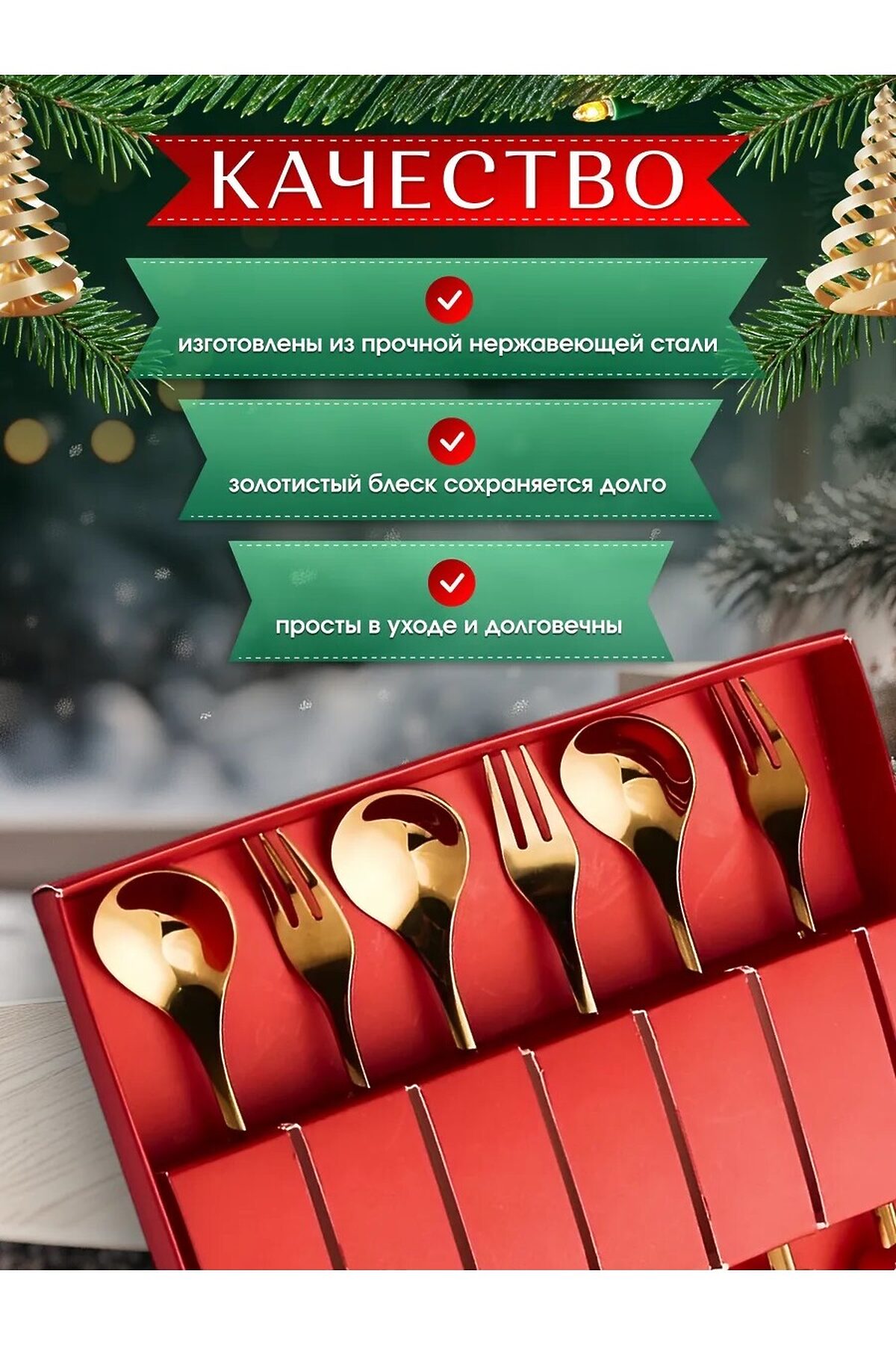 Ищите уникальное решение для вашего новогоднего стола? Невероятный новогодний набор из 6 десертных приборов станет прекрасным решением для вашего Нового Года и Рождества. В наборе вы найдете 3 вилки и 3 ложки из нержавеющей стали, украшенные милыми резиновыми новогодними фигурками. Подарочный новогодний набор для стола станет отличным дополнением вашего подарка для вашей любимой супруги или коллеги, а также отлично порадует маму и девушку. Десертные приборы выполнены в золотом цвете, что придает им праздничный вид. Набор уже упакован в подарочную коробочку. Добавьте в коллекцию новогодний набор, чтобы украсить праздники и порадовать близких. Набор столовых предметов - это отличное решение для сервировки вашего новогоднего стола ! Удивите своих родных и близких с нашим набором и прочувствуйте всю атмосферу Нового года !