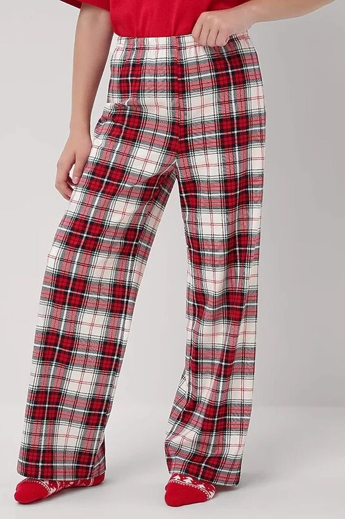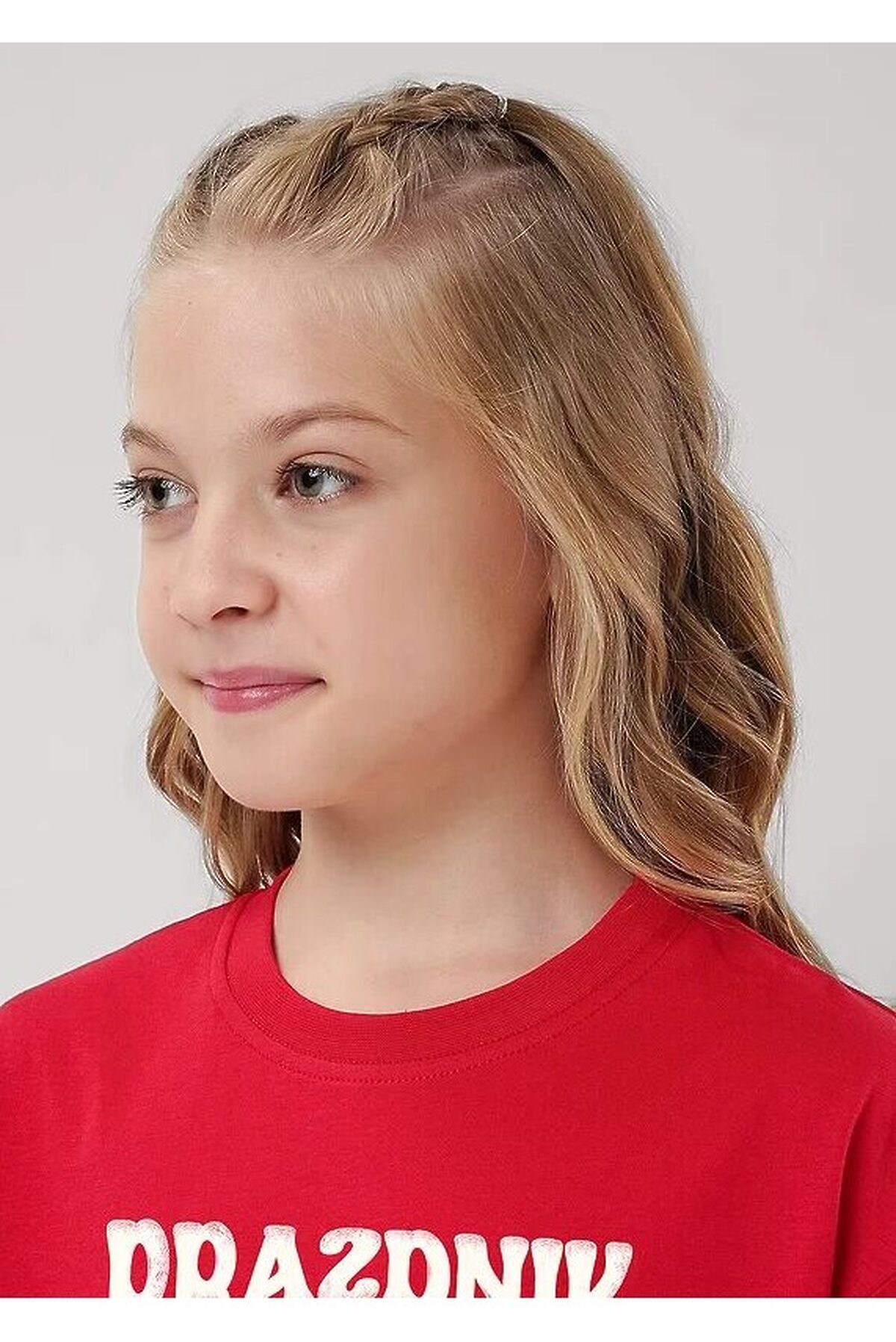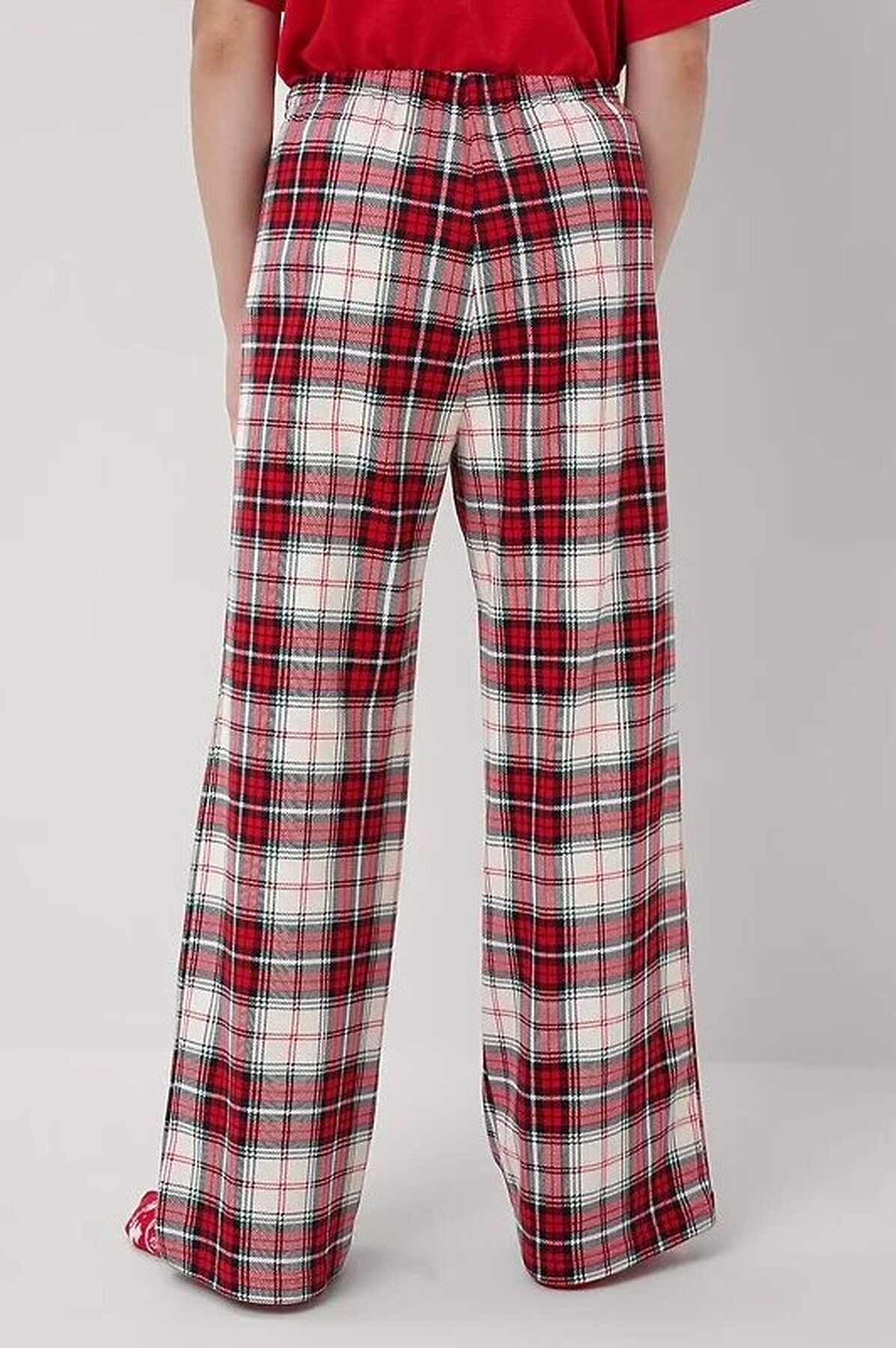 Новогодняя пижама для подростков,состоящая из футболки и брюк. Футболка свободного кроя спереди украшена милым тематическим принтом. Брюки прямые среднего объема с эластичным поясом.