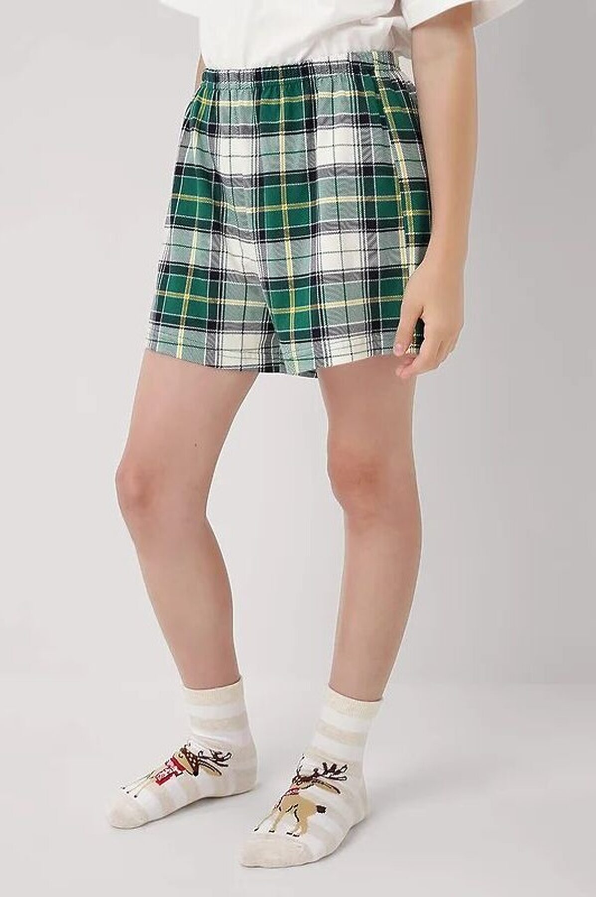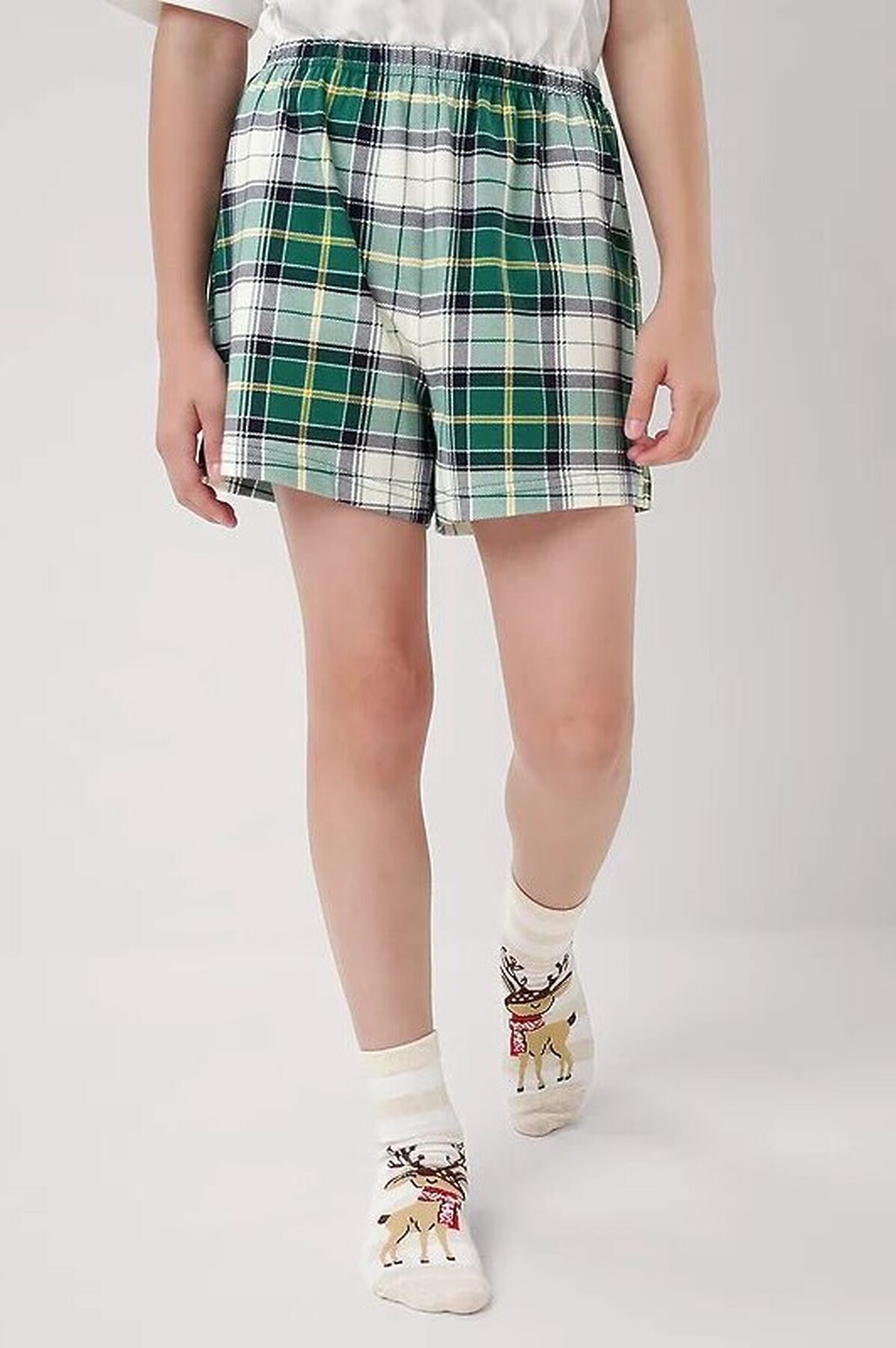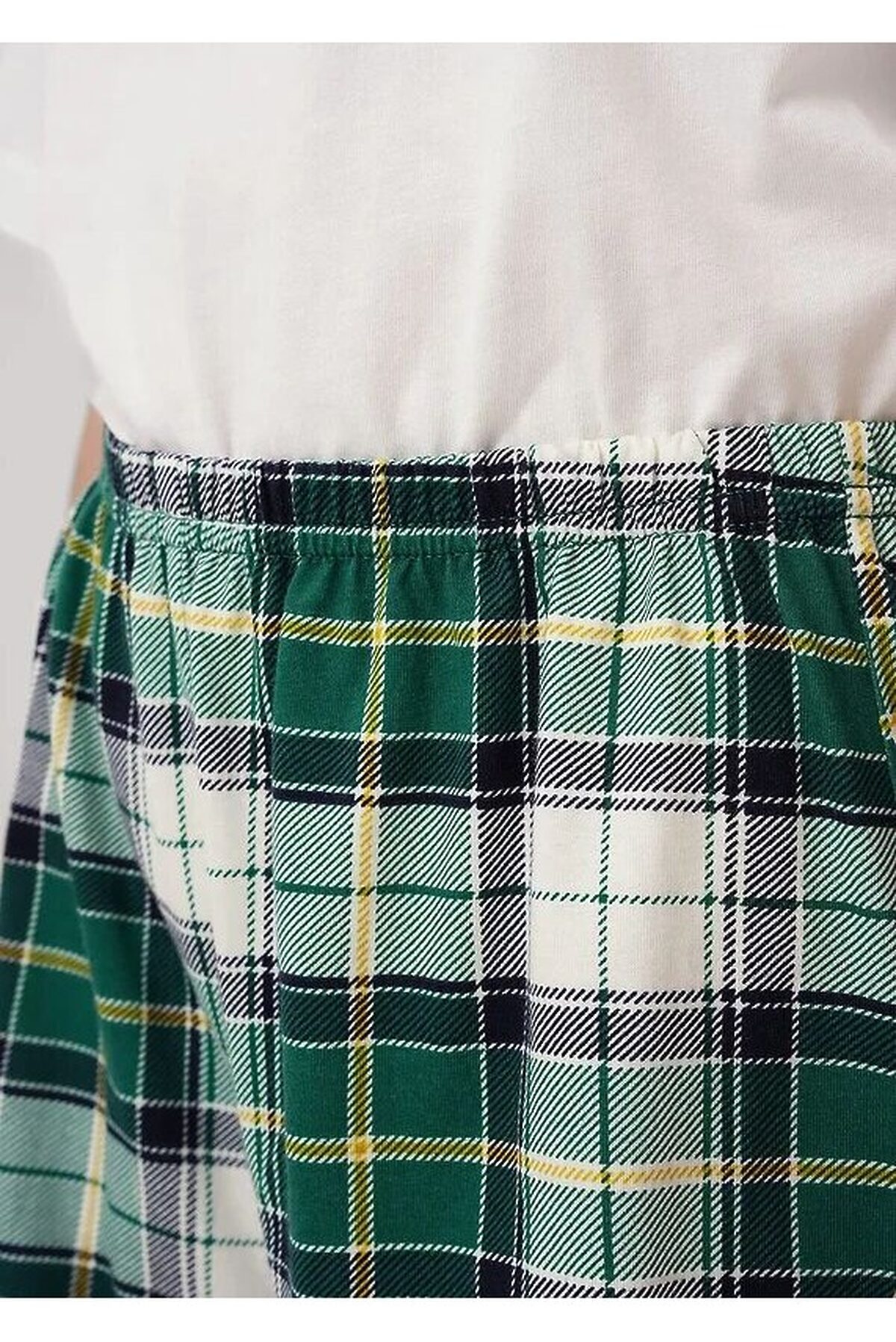 Новогодняя хлопковая пижама,состоящая из футболки и шорт. Футболка свободного кроя спереди украшена милым тематическим принтом. Шорты с высокой талией, эластичный пояс обеспечит комфорт и идеальную посадку.