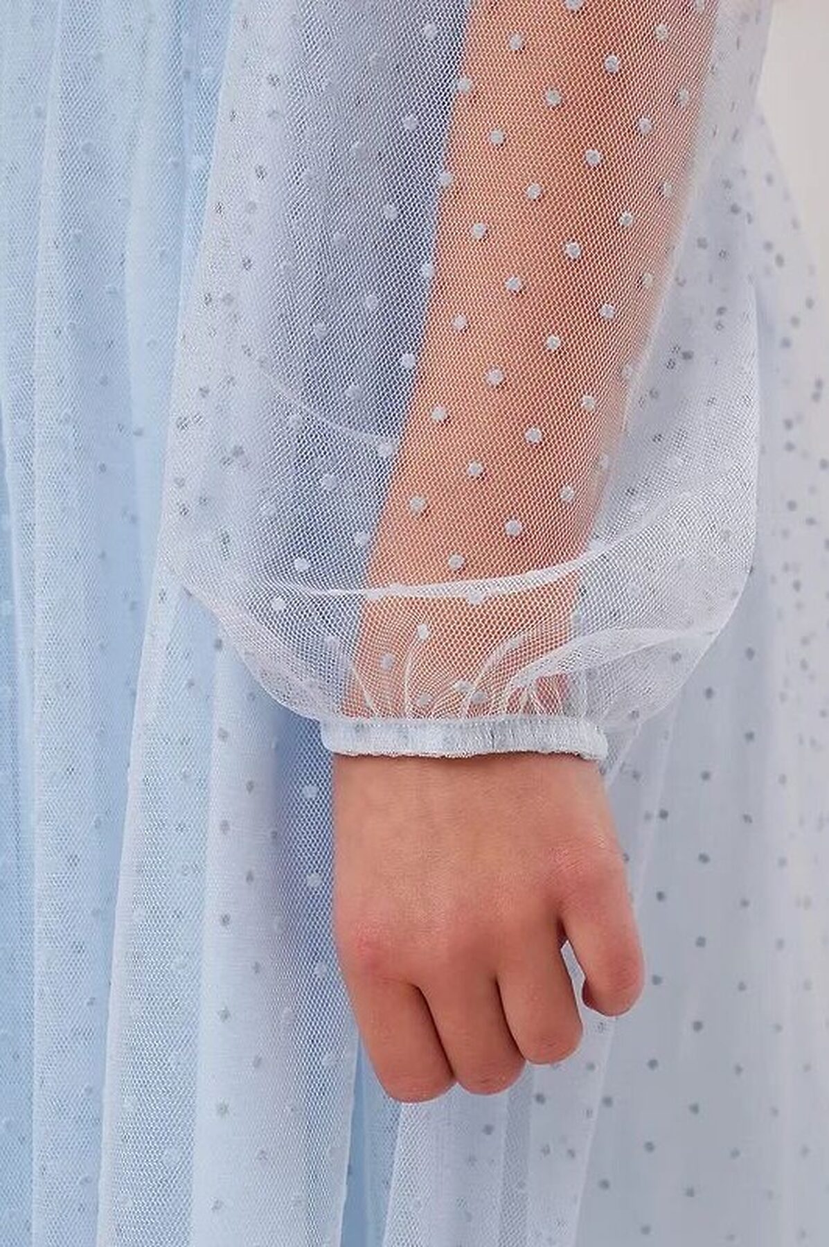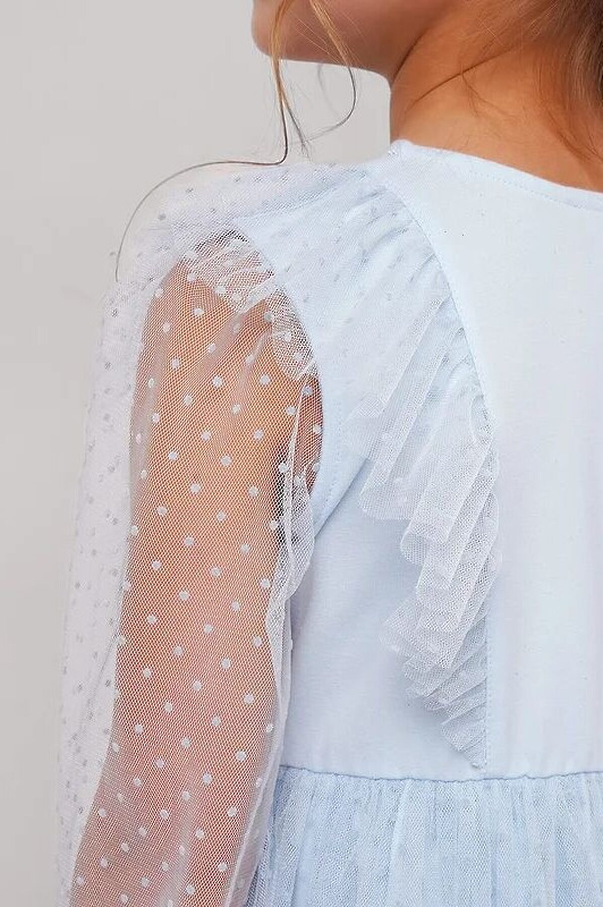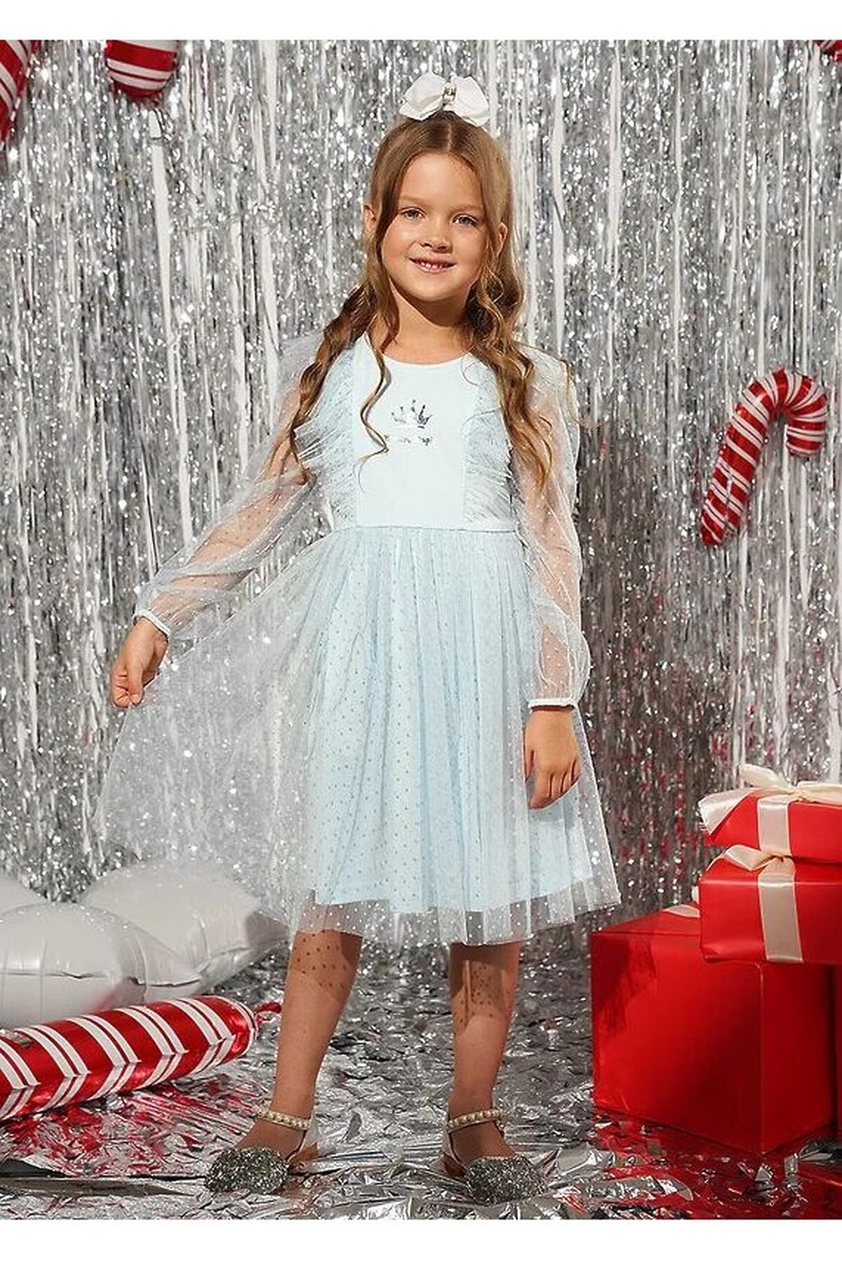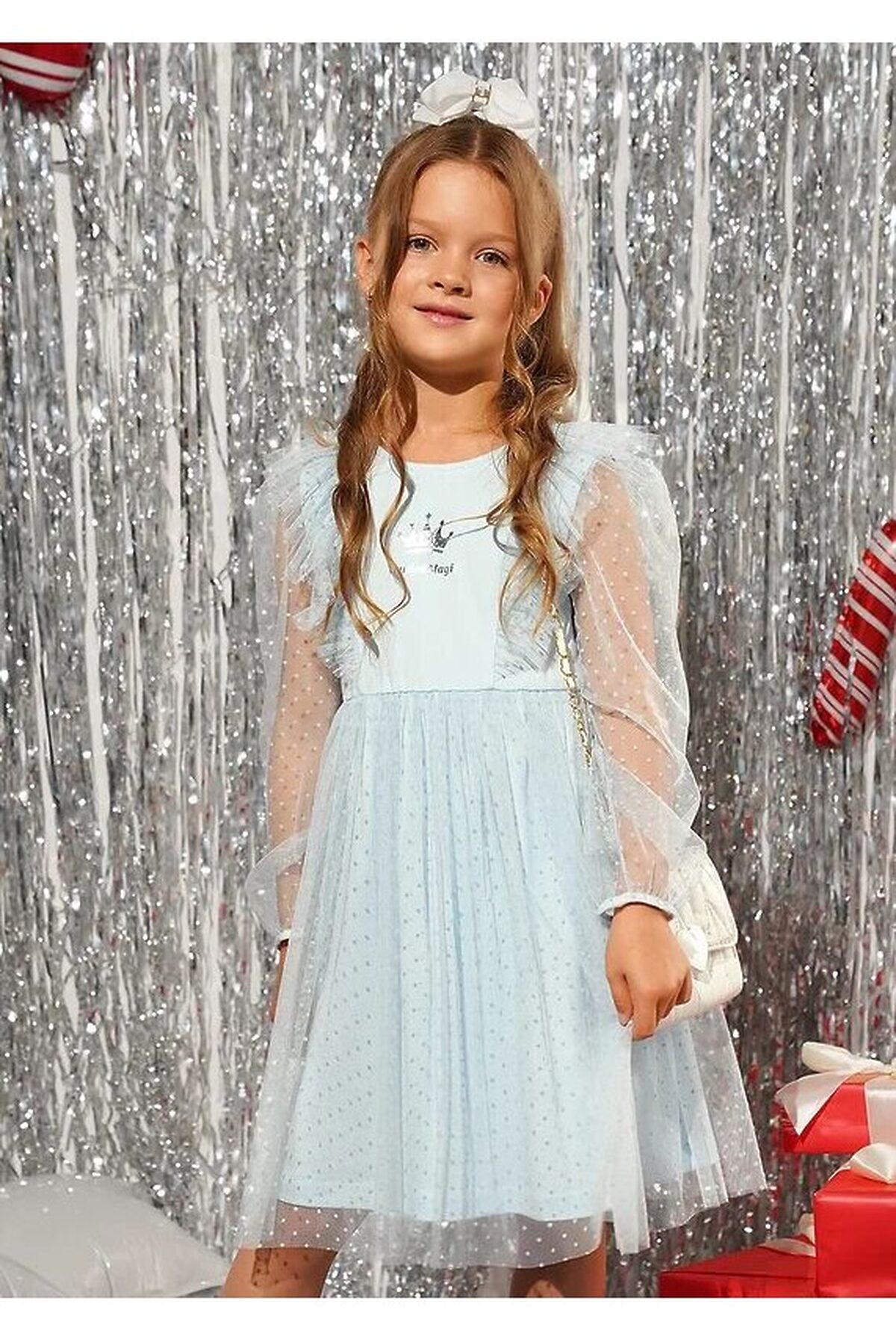 Воздушное платье для девочки создано для волшебных образов! Низ - двухслойная юбка,рукав и "крылышки" из мягкой сетки. Стильный вариант для любого праздника!