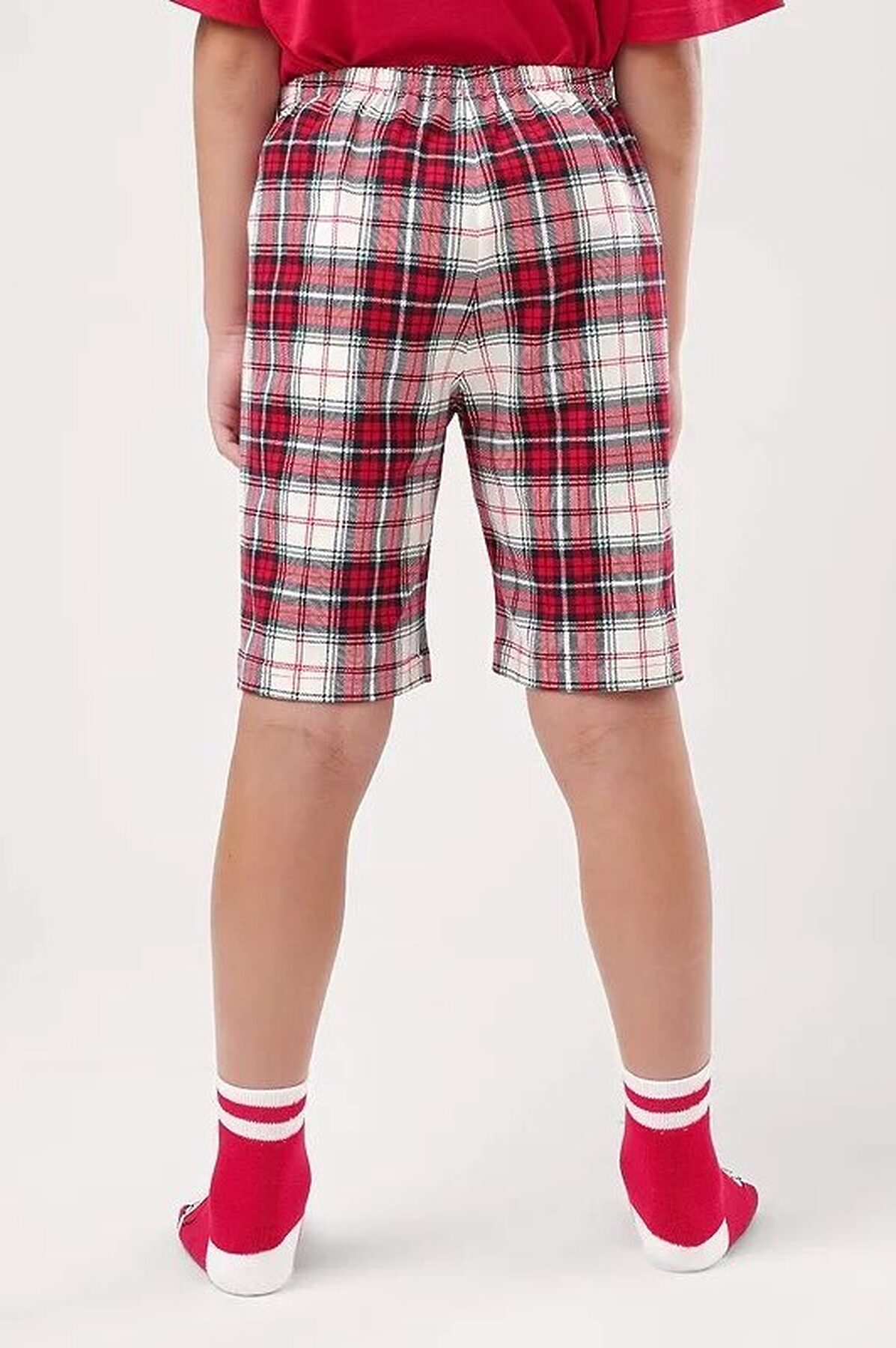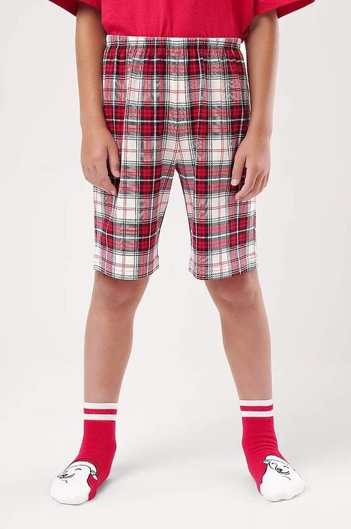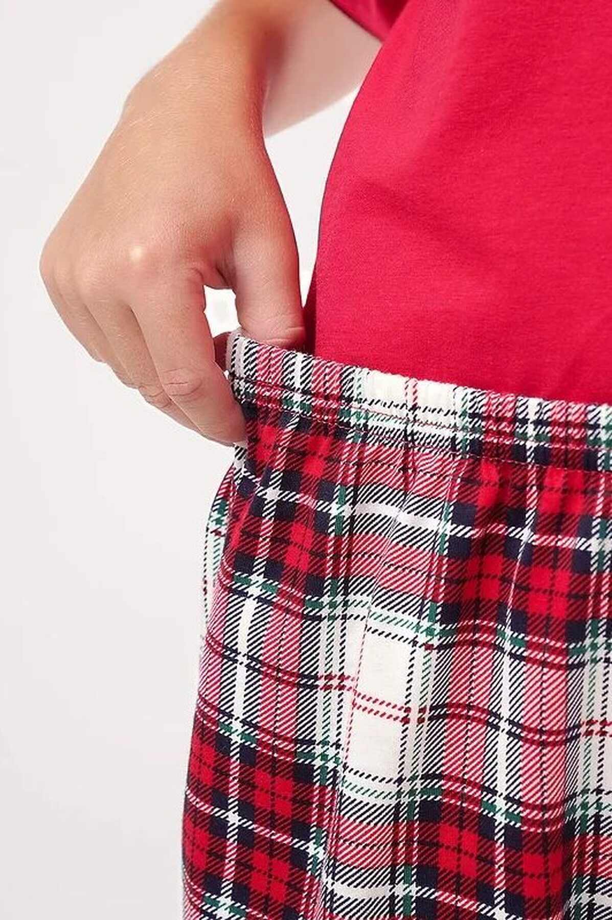 Новогодняя пижама для подростков, состоящая из футболки и шорт. Стильная футболка свободного кроя дополнена оригинальным принтом. Шорты прямые средней длины с эластичным удобным поясом, выполнены из хлопкового полотна в клетку.
