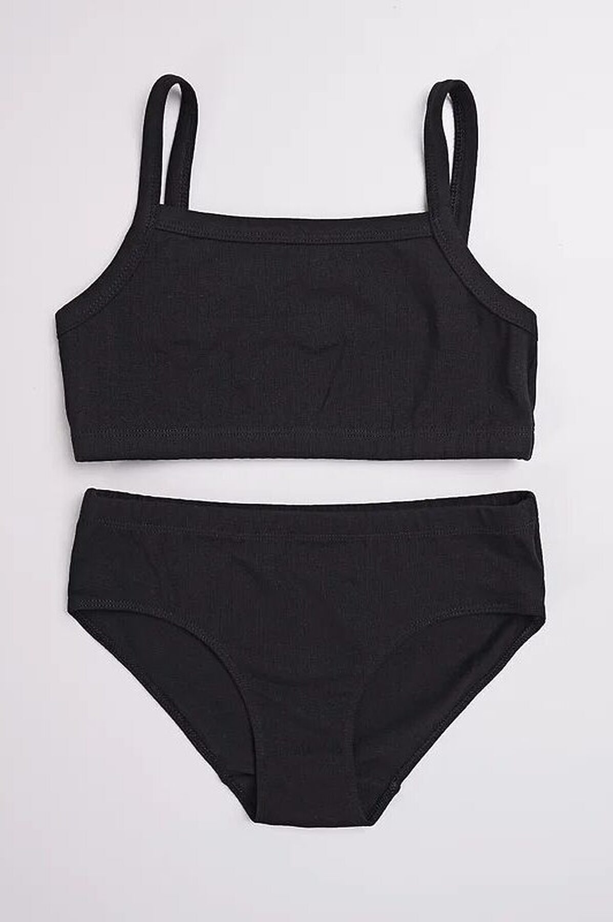 Нежный детский комплект белья в чёрном оттенке: мягкий топ и удобные трусики из приятной хлопковой лапши. Натуральные материалы и продуманный крой обеспечивают идеальную посадку и комфорт в течение всего дня.