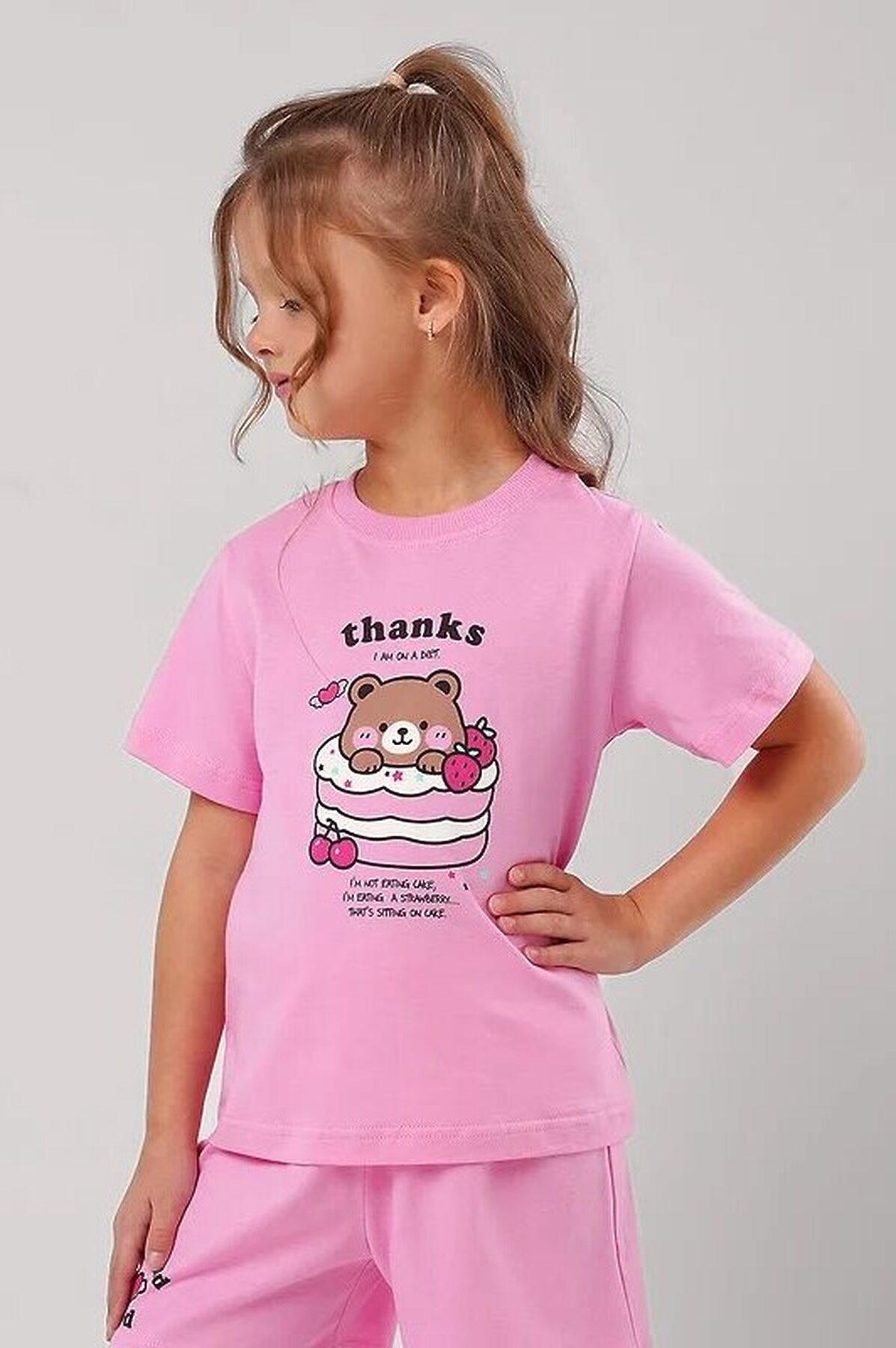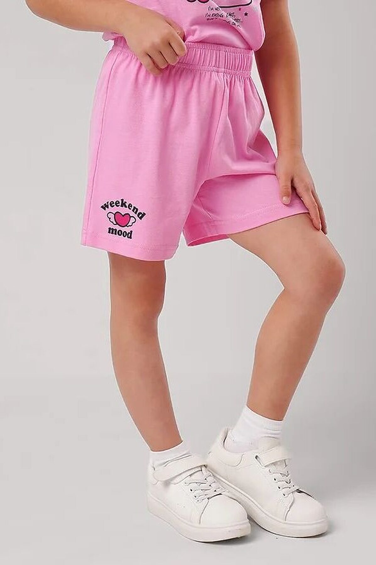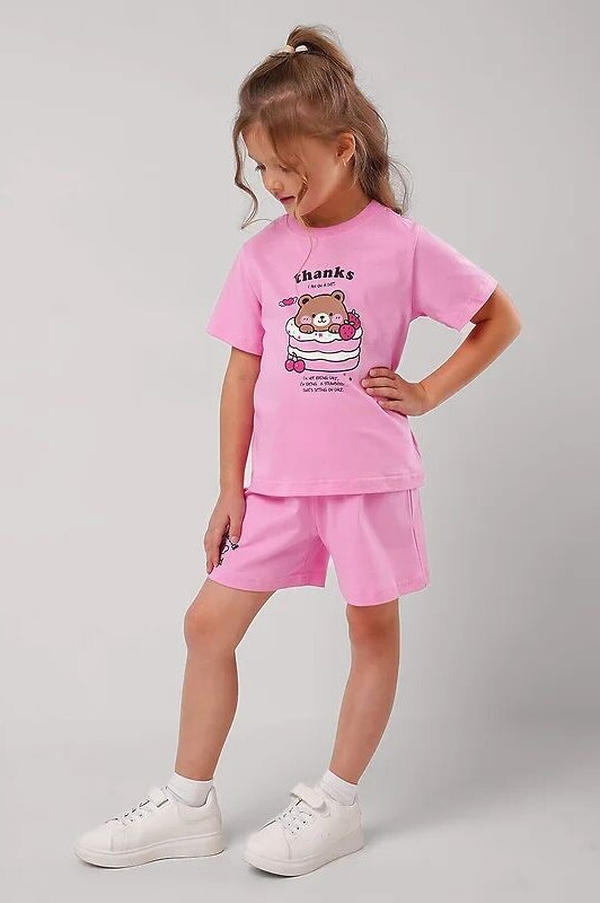 Комплект из футбоки и шорт для девочки. Футболка из 100% хлопка, украшена милым принтом!Стильные базовые шорты из натурального трикотажного полотна отлично подойдут для занятий спортом и повседневной носки.
