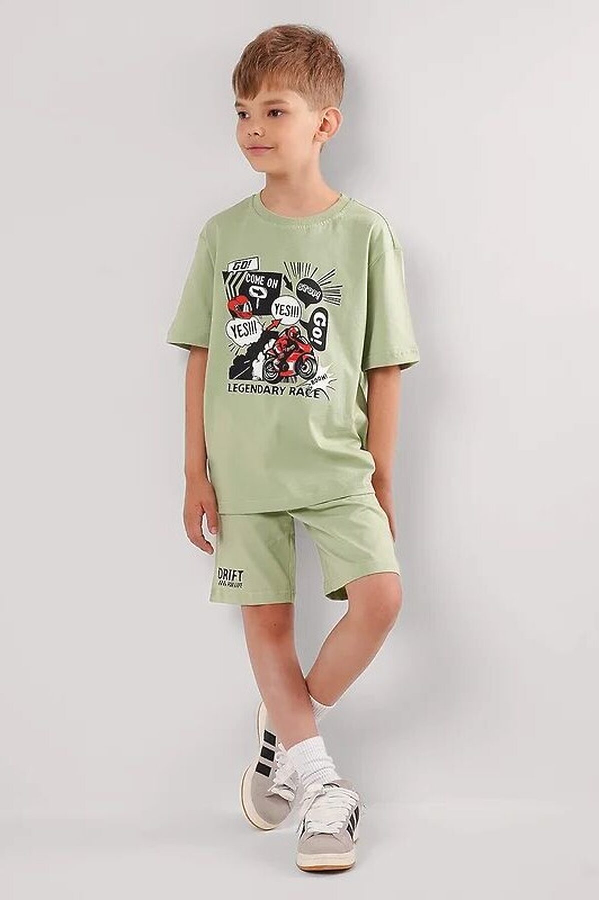 Комплект из футбоки и шорт для мальчика. Футболка из 100% хлопка, украшена крутым принтом!Стильные базовые шорты из натурального трикотажного полотна отлично подойдут для занятий спортом и повседневной носки.