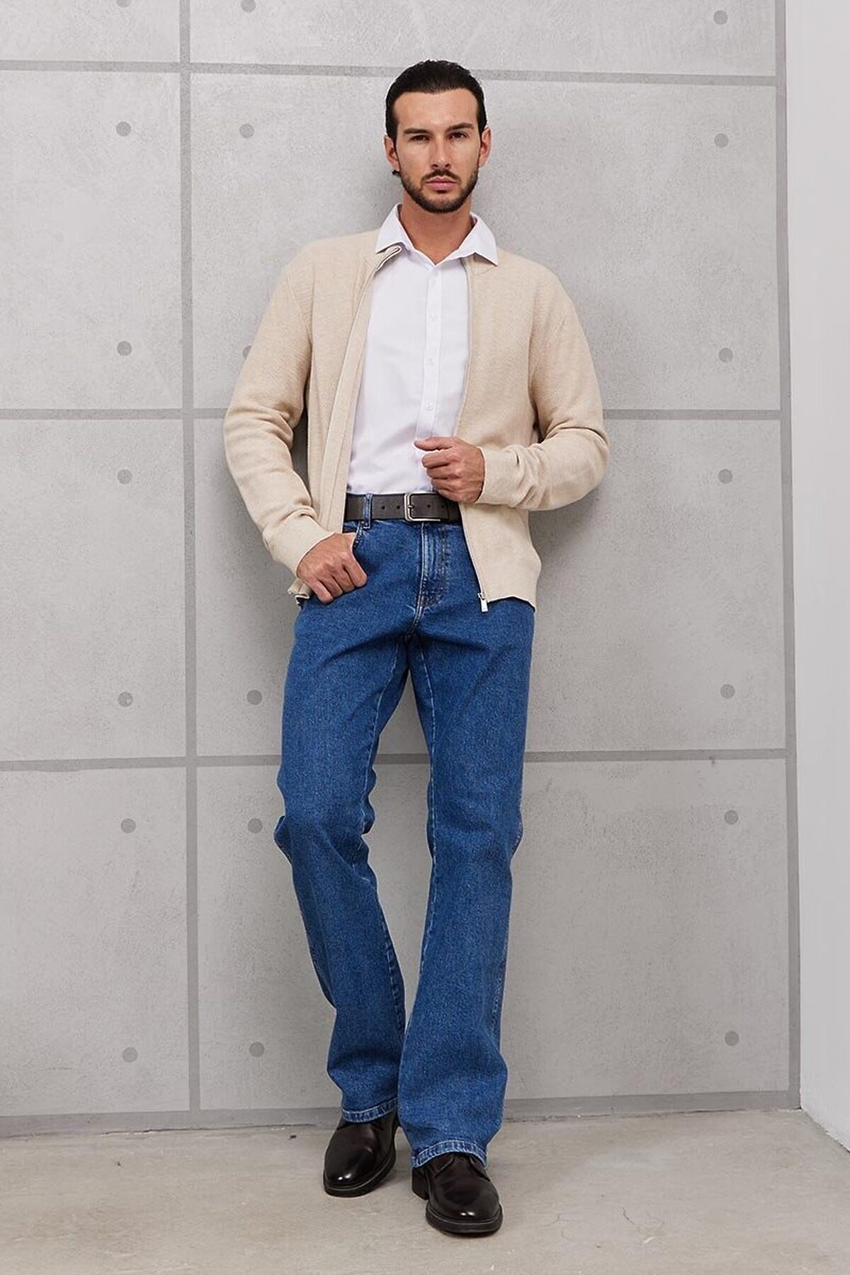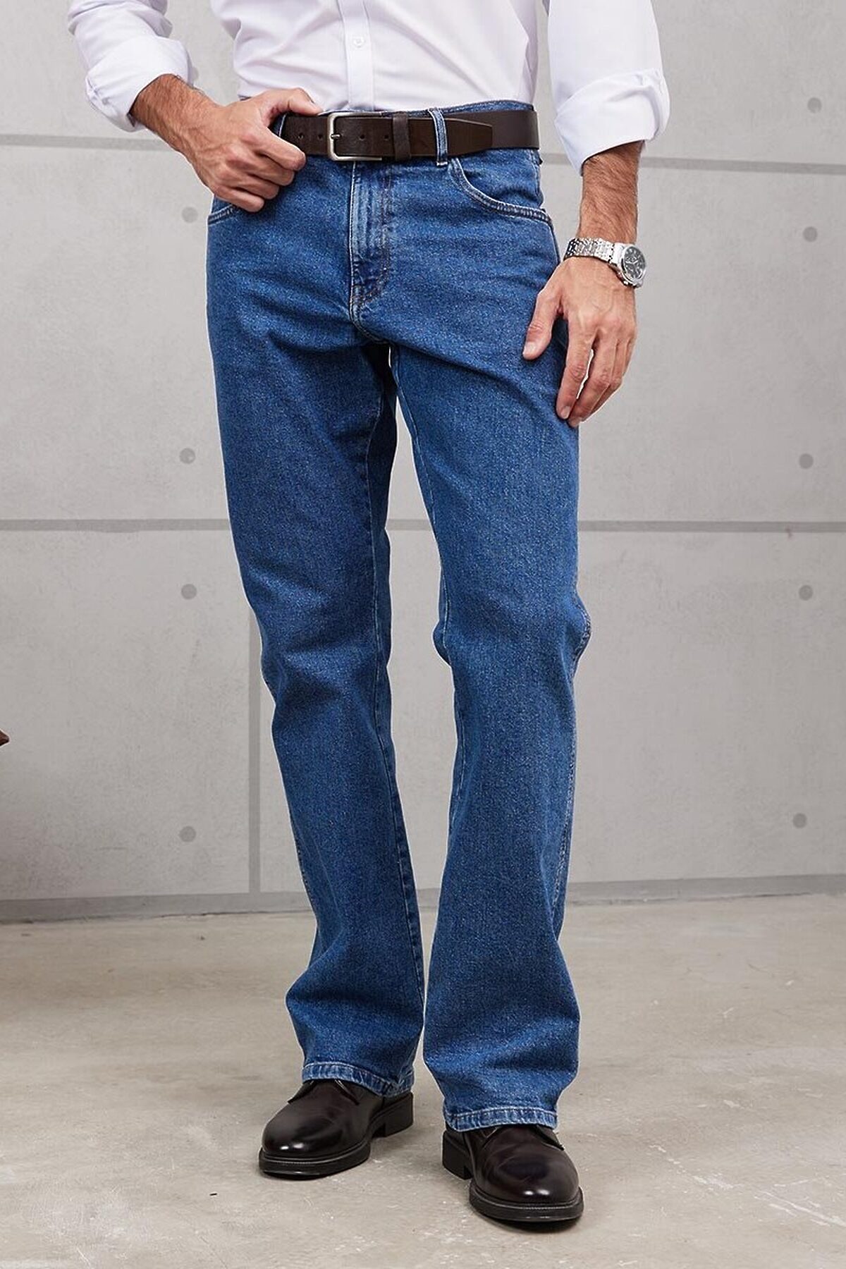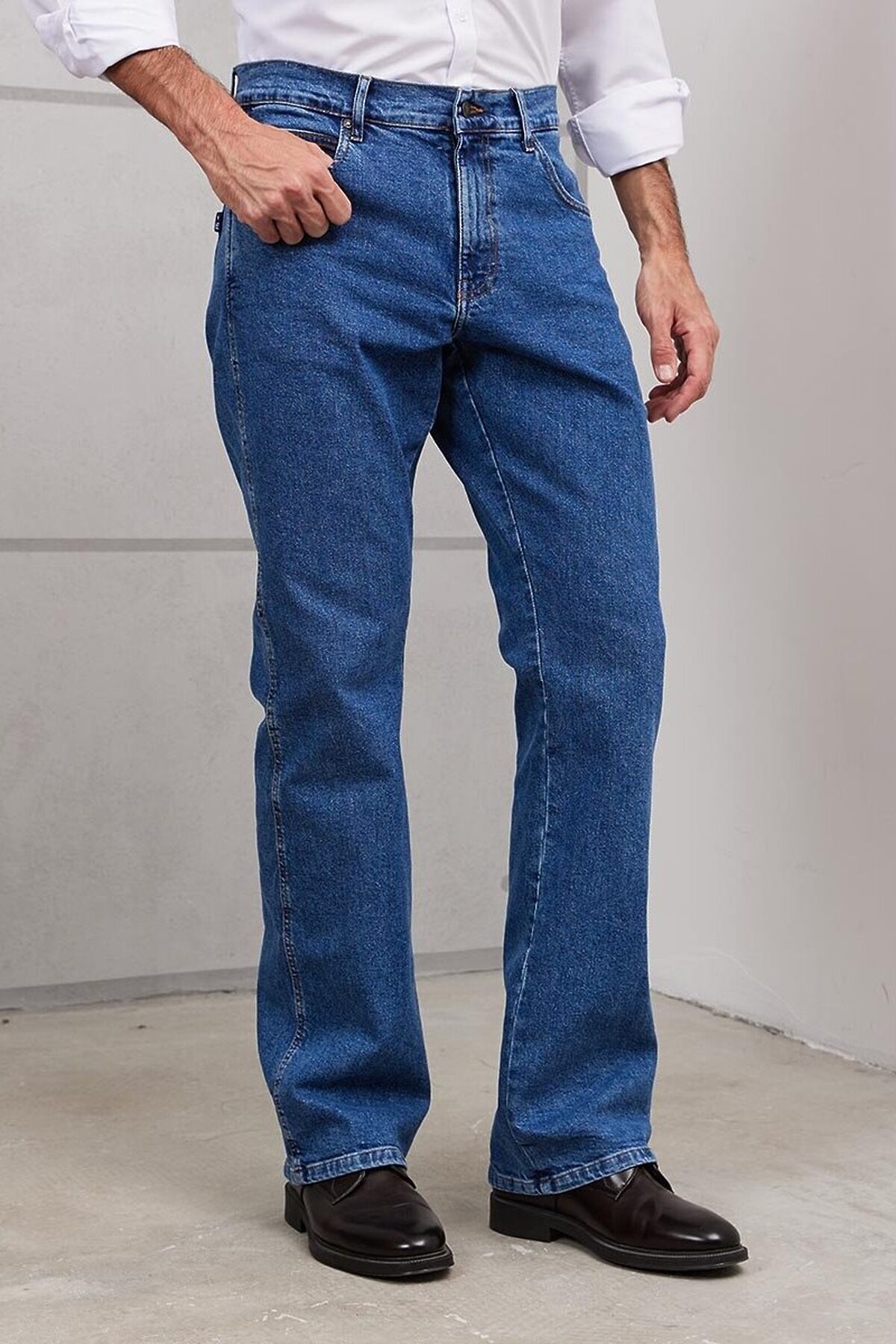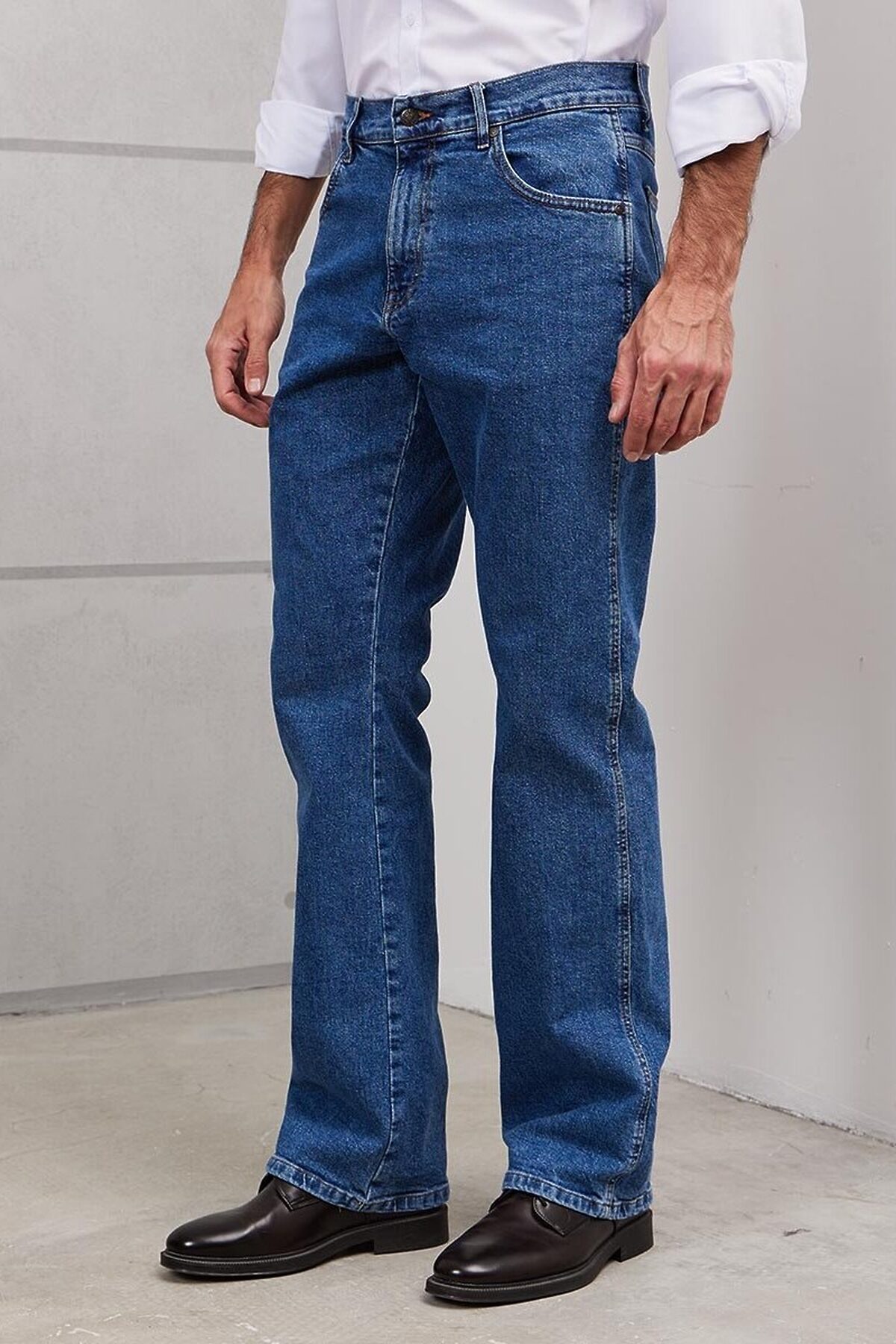 Мужские джинсы Relaxed Fit Bootcut: ретро-стиль и современный комфорт. Представляем универсальные джинсы в ретро-стиле - модель Relaxed Fit Bootcut с расслабленным силуэтом и характерным расклёшением штанин. Ключевые особенности: Посадка Relaxed Fit- обеспечивает свободу движений и комфорт в течение всего дня. Крой Bootcut* - классическое расклёшение от колена, которое: -идеально сочетается с любой обувью; -визуально вытягивает силуэт; -придаёт образу узнаваемый ретро-шарм. Ткань: - слабоэластичный деним Denim Comfort Stretch средней плотности; - гарантирует дополнительный комфорт при носке. Эта модель - идеальный выбор для создания модных образов в стиле кантри или кэжуал