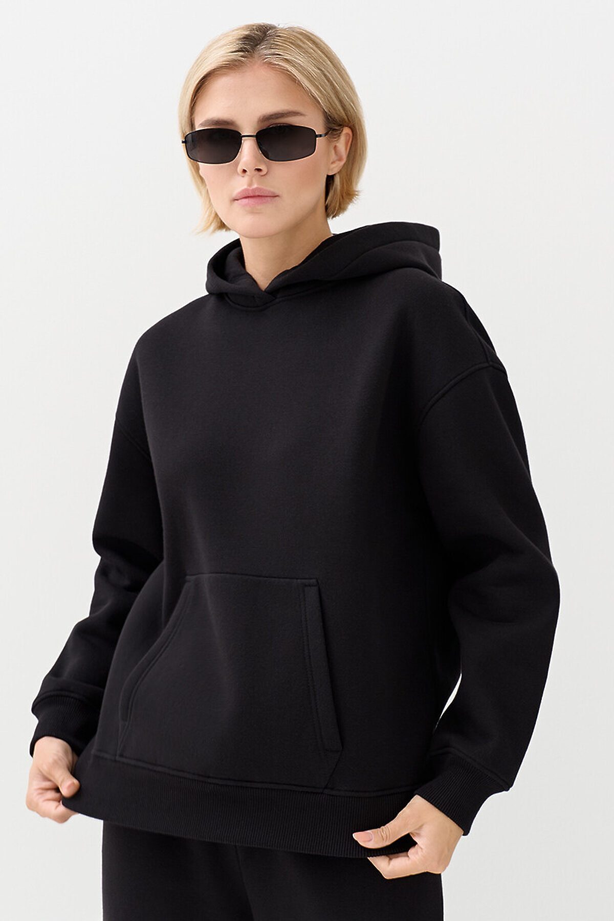 Женское утеплённое худи свободного кроя из мягкого футера с начёсом, со спущенным плечом, длинными рукавами, капюшоном и карманом-«кенгуру» спереди. Манжеты и низ, оформленные рибаной в лаконичный рубчик, добавляют изделию текстурности и делают силуэт более графичным. Трикотажный материал на основе высококачественного хлопка отлично пропускает воздух, приятно ощущается на теле и подходит даже для чувствительной кожи. Добавление полиэстера создает теплосберегающий эффект, а деликатная обработка швов обеспечивает дополнительный комфорт. Стильное и тёплое решение на каждый день: расслабленный силуэт и тактильная мягкость создают атмосферу уюта, а минималистичный дизайн становится универсальной основой для самых разных образов — от спортивных до городских.