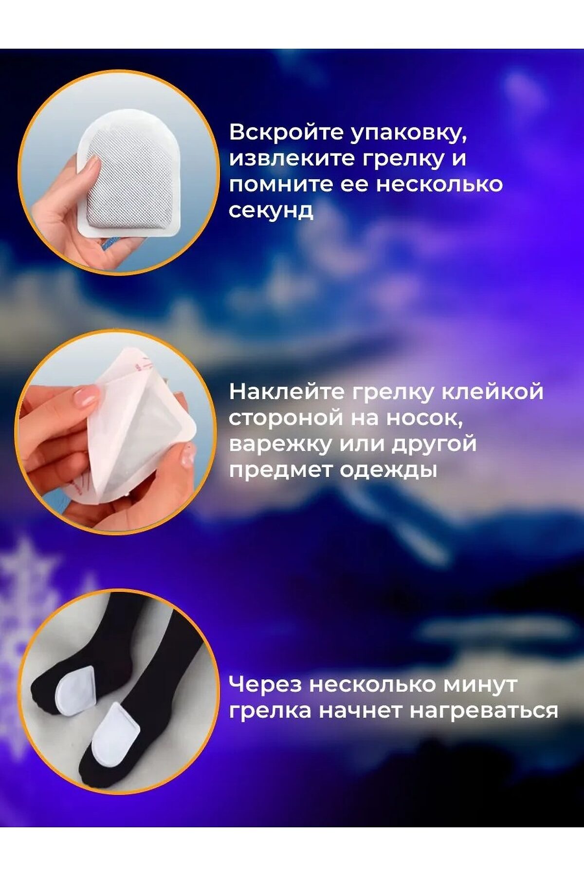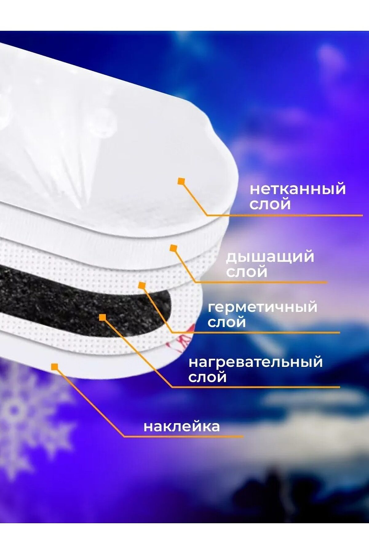 Грелка самонагревающаяся для ног и тела туристическая, одноразовая, до 8-10 часов тепла. Они просты в использовании, вставляются в любую обувь и делают ходьбу более комфортной. Поделитесь этим со своими родственниками, чтобы их ноги тоже были в тепле. Две грелки в одном пакете с застежкой-молнией Одноразовые грелки для тела и ног новое поколение автономных источников тепла идеально подходят для тех, кто много времени проводит на свежем воздухе! Переносная грелка спасет вас от замерзания зимой. Компактный и практичный дорожный аксессуар обогреватель лучший помощник в отпуске и путешествиях! Он активируется при взаимодействии с кислородом, поэтому сразу после извлечения из индивидуальной герметичной упаковки пакетик необходимо размять в руках и примерно через 5 минут он нагреется. Максимальный нагрев через 15-30 минут. Если вы больше не чувствуете тепла, снимите грелку и встряхните еще раз. Не издает запаха при нагревании. Только для наружного применения.