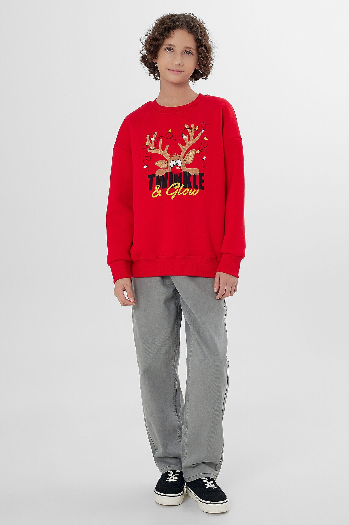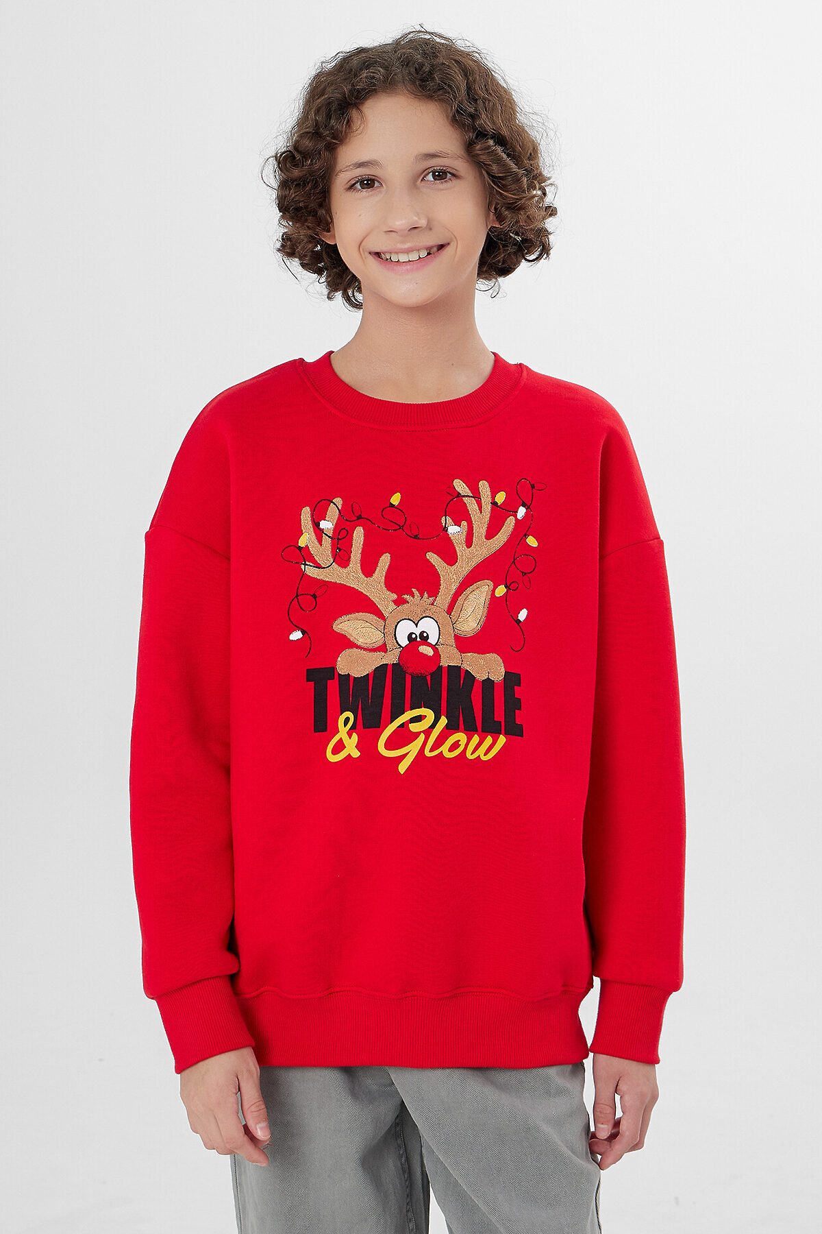 Яркий тематический принт и жизнерадостная надпись поднимут настроение в преддверии праздников. Состав с добавлением полиэстера делает свитшот практичным и износостойким для активных зимних игр. Этот свитшот станет любимой вещью для зимних прогулок, утренников и домашних праздников, даря мальчику ощущение волшебства и уюта на протяжении всего праздничного сезона.