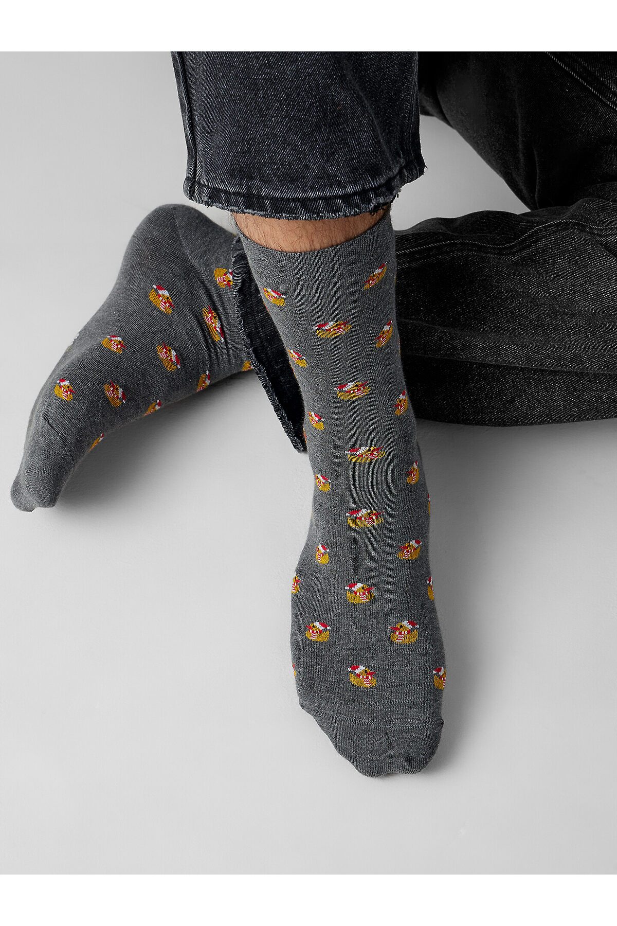 рис.3421 Мужской носок классический, с рисунком в виде маленьких уточек.