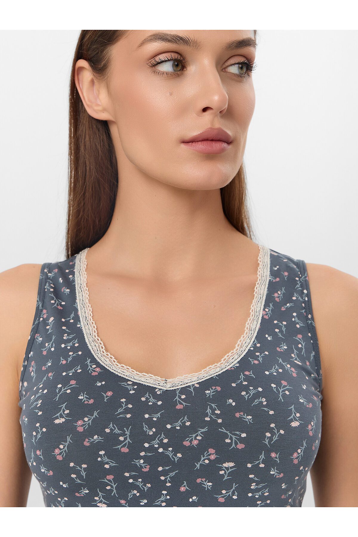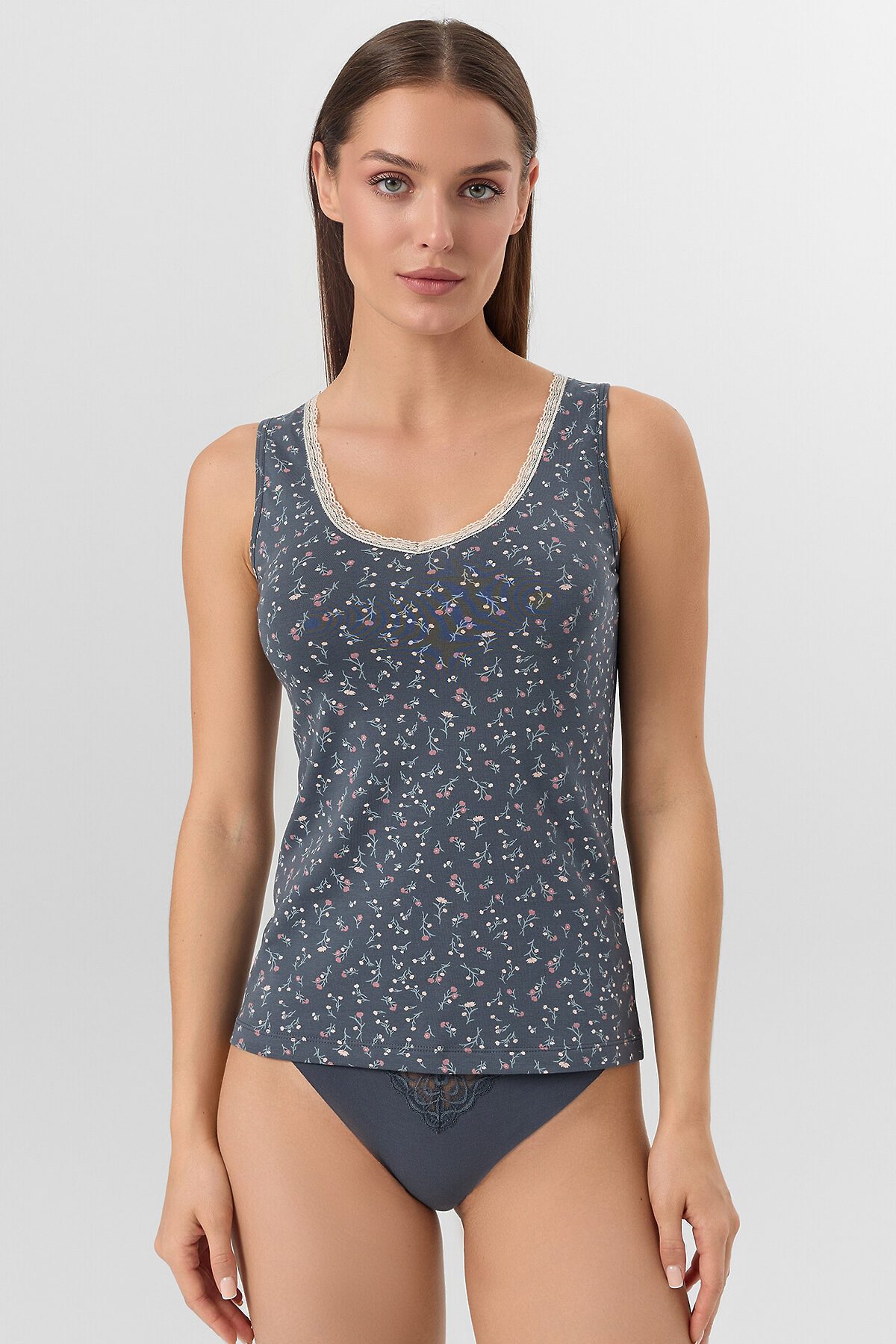 Майка прилегающего силуэта из хлопка. Горловина обработана узким эластичным кружевом. Длина классическая. Рекомендуем!