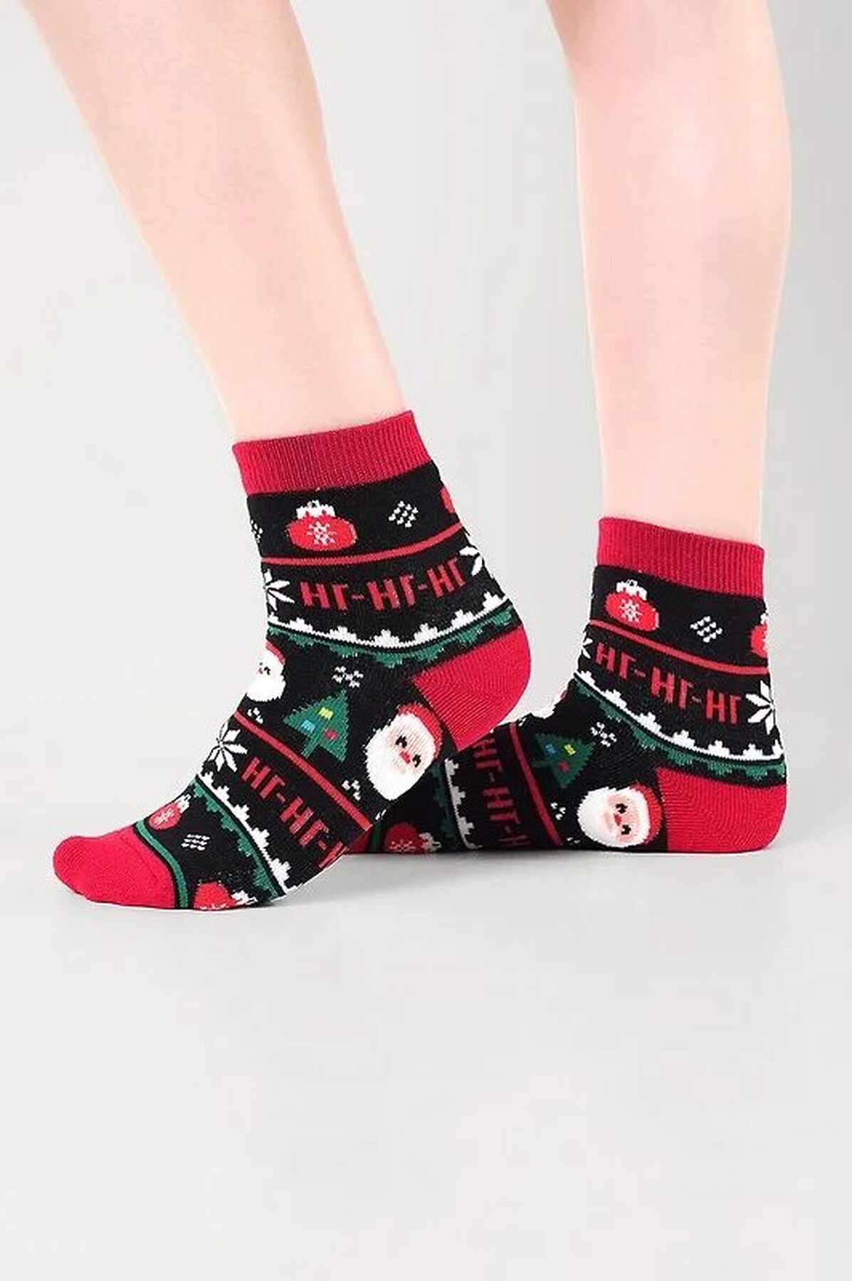 Теплые плюшевые новогодние детские носки со скандинавским орнаментом и дед морозом