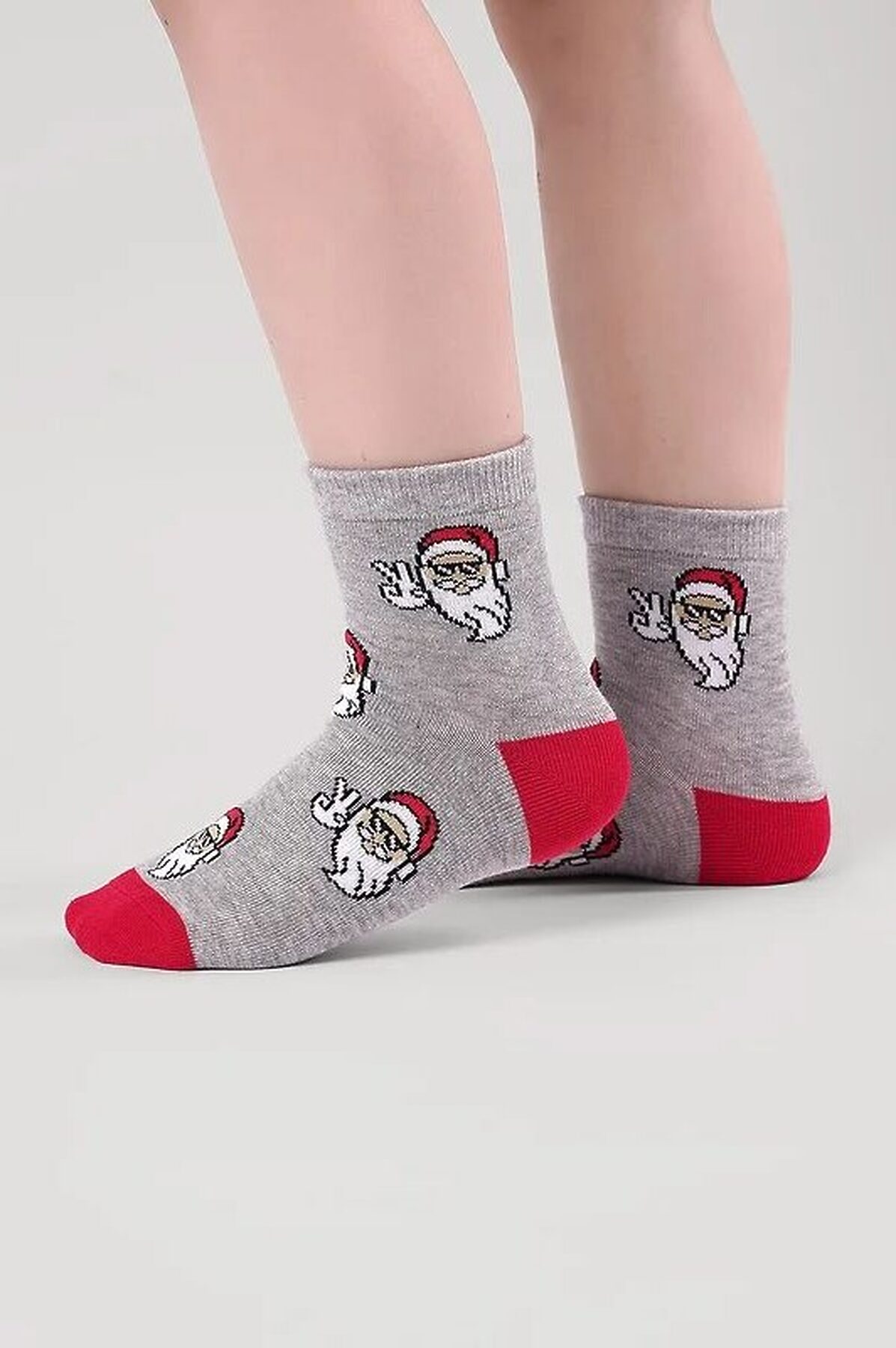 Носки детские для мальчика с выделенным мыском и пяткой с рисунком лица деда мороза
