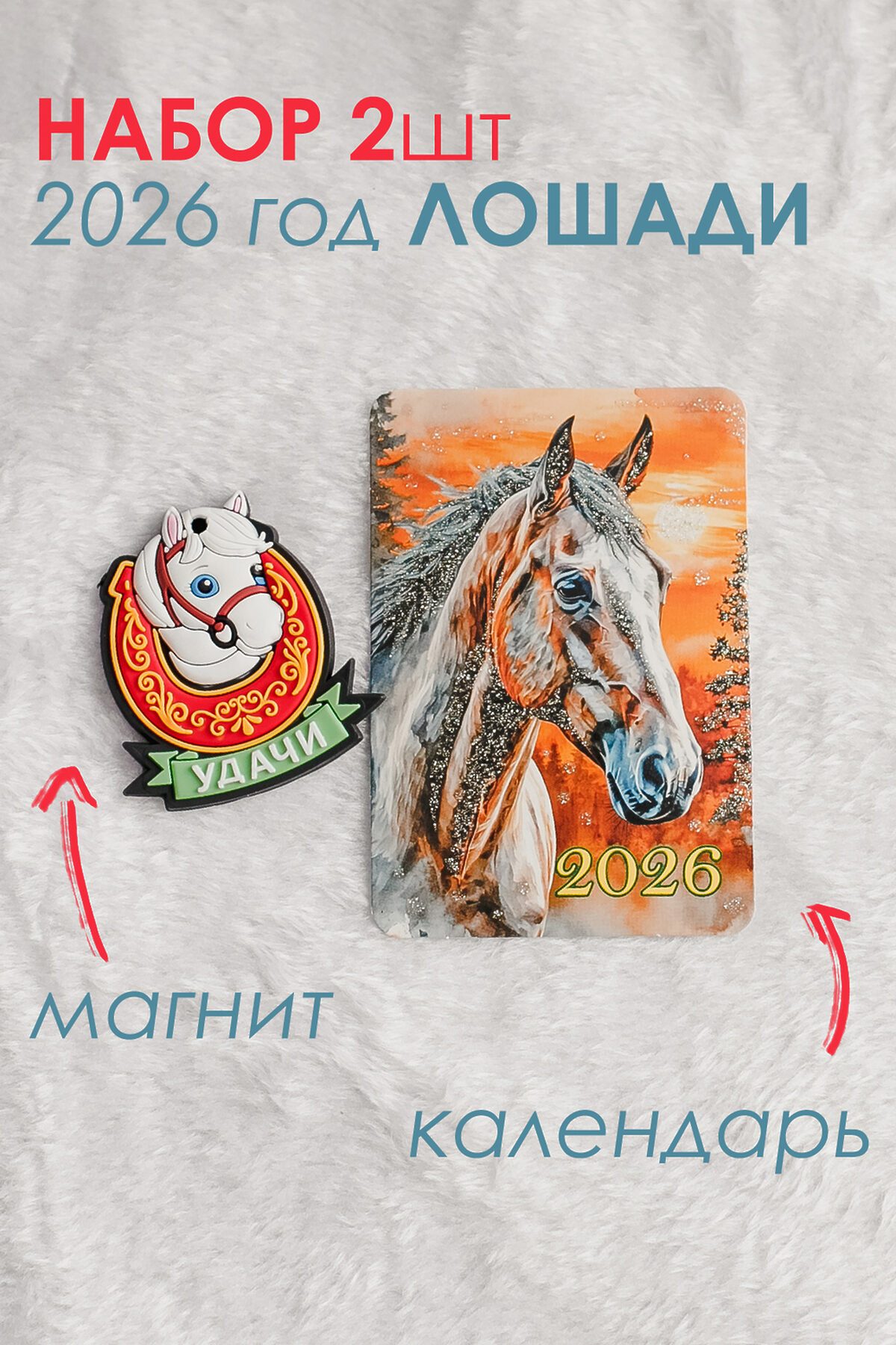 Набор магнит и календарь Лошадь 2026 НАТАЛИ, оранжевый