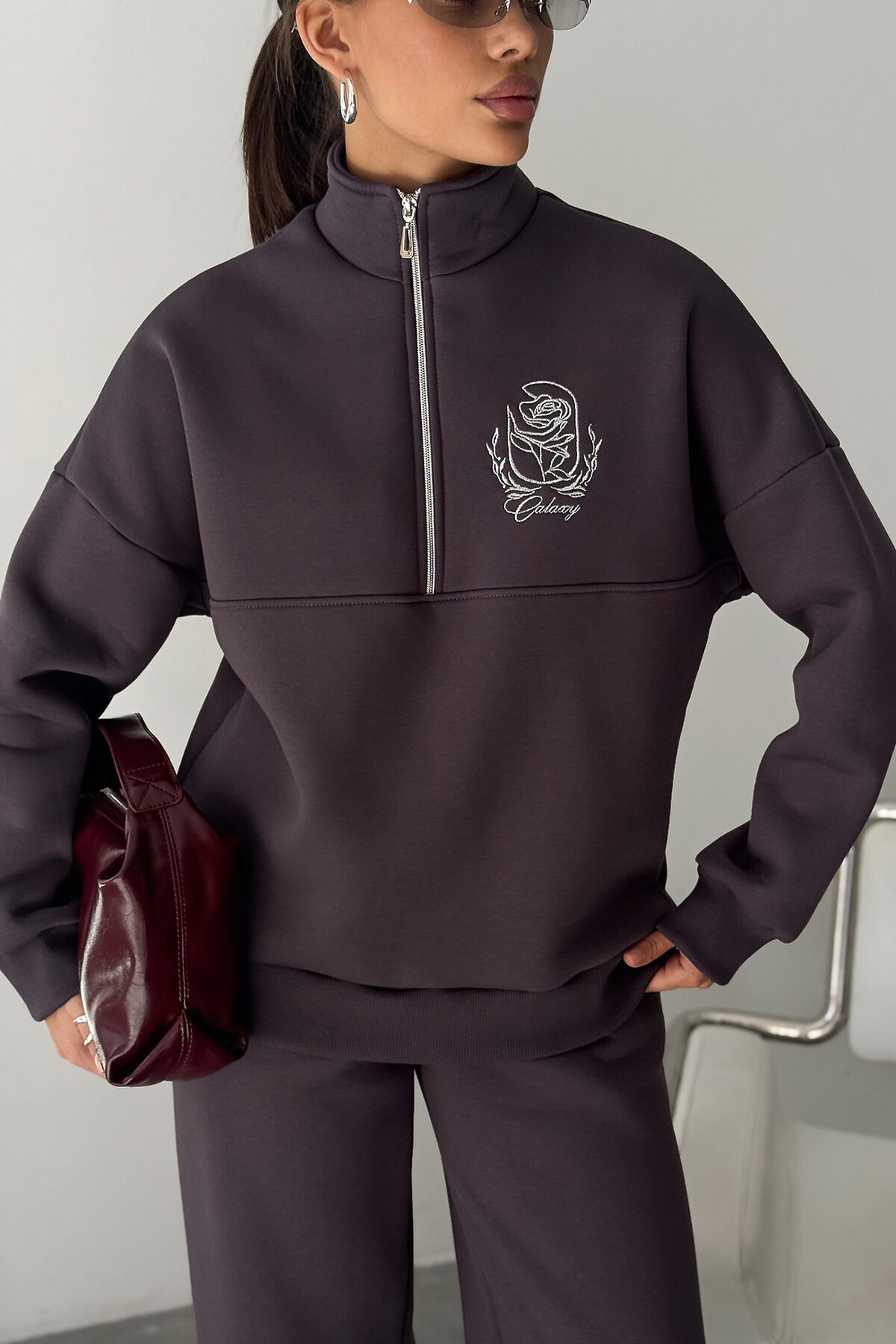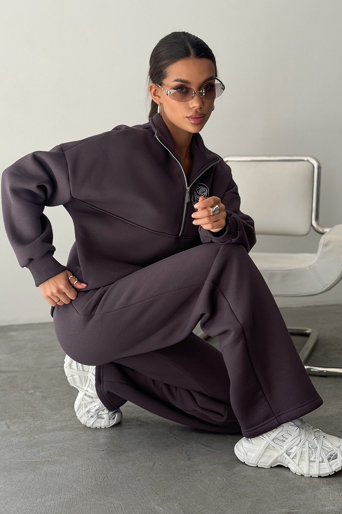 Теплый женский спортивный костюм отличный выбор в качестве базовой одежды для зимы и холодного демисезонного периода! Комплект - двойка из коллекции включает свитшот с длинными рукавами и брюки с высокой посадкой. Модели сшиты из мягкого и приятного к телу футера. Это плотный материал, который приятно согревает и отлично дышит. В составе ткани хлопок и полиэстер. Вещи имеют прямой крой и свободно сидят по фигуре.