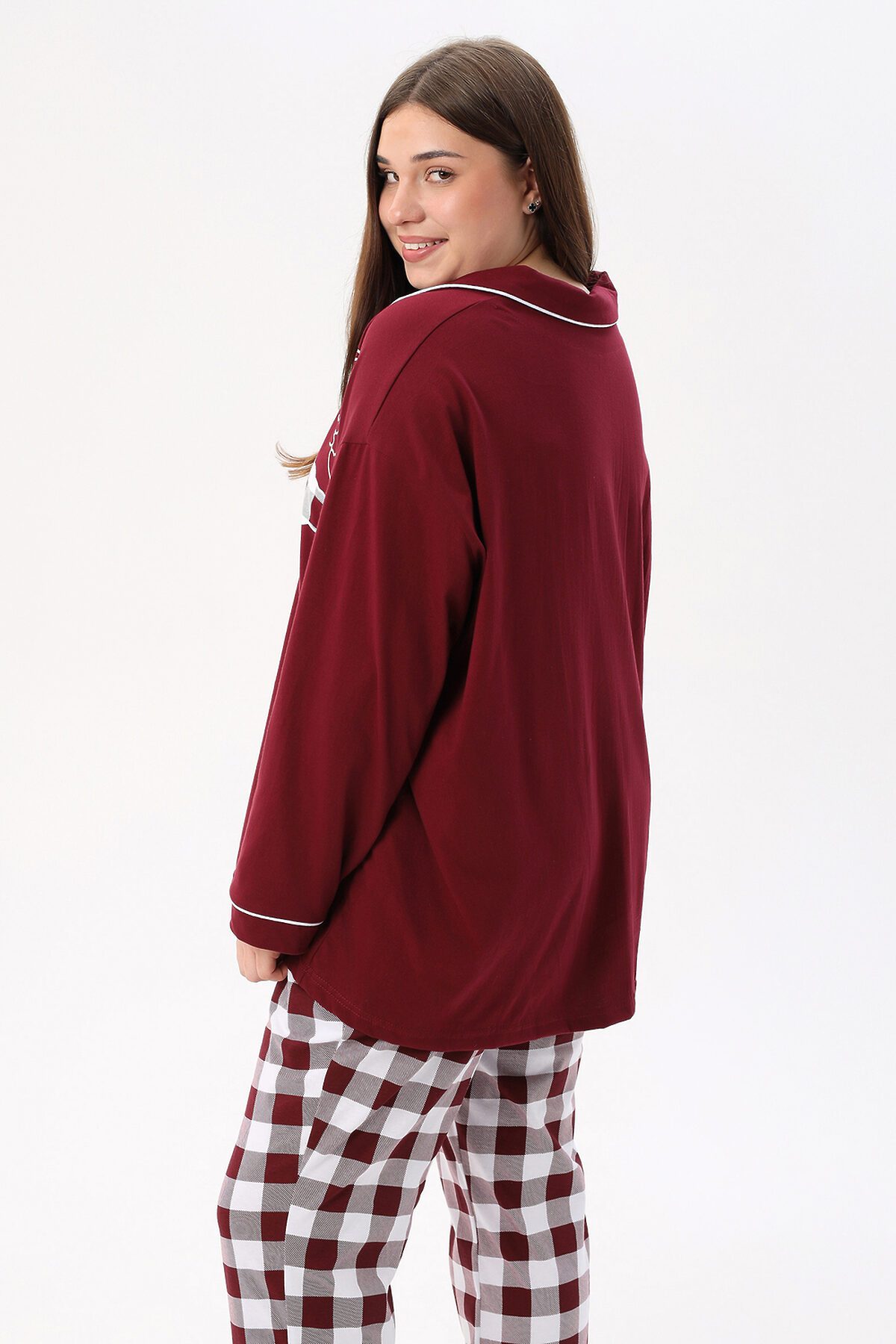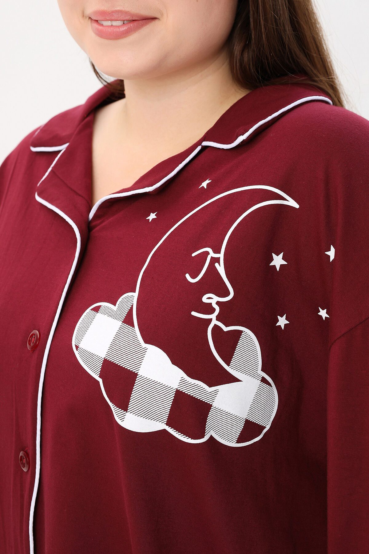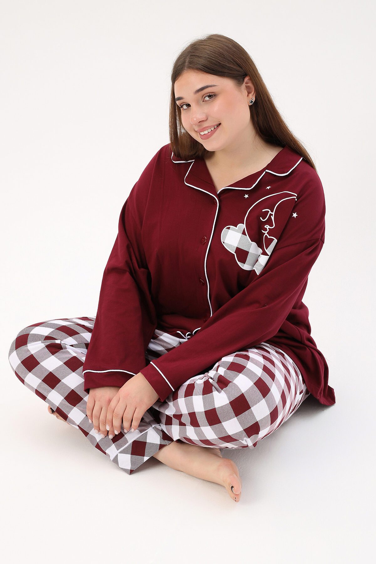 Набор пижамы В Размере из коллекции 2026 станет идеальным выбором для комфортного отдыха дома в прохладные осенние вечера. Этот утепленный комплект, выполненный из 100% хлопка, подарит вам ощущение нежности и тепла. Мягкая рубашка с длинным рукавом и прямые штанишки на резинке с удобными карманами в шве создают стильный и уютный образ. Рисунок в виде бордовой сетки придает пижаме особый шарм, а свободный крой обеспечивает максимальный комфорт для женщин plus size. Легкий трикотажный материал приятен к телу и не сковывает движений. Этот набор станет прекрасным подарком на Рождество или для тех, кто ценит комфорт и уют. Благодаря натуральным материалам и продуманному крою, пижама В Размере станет вашим любимым спутником в холодные осенние ночи.