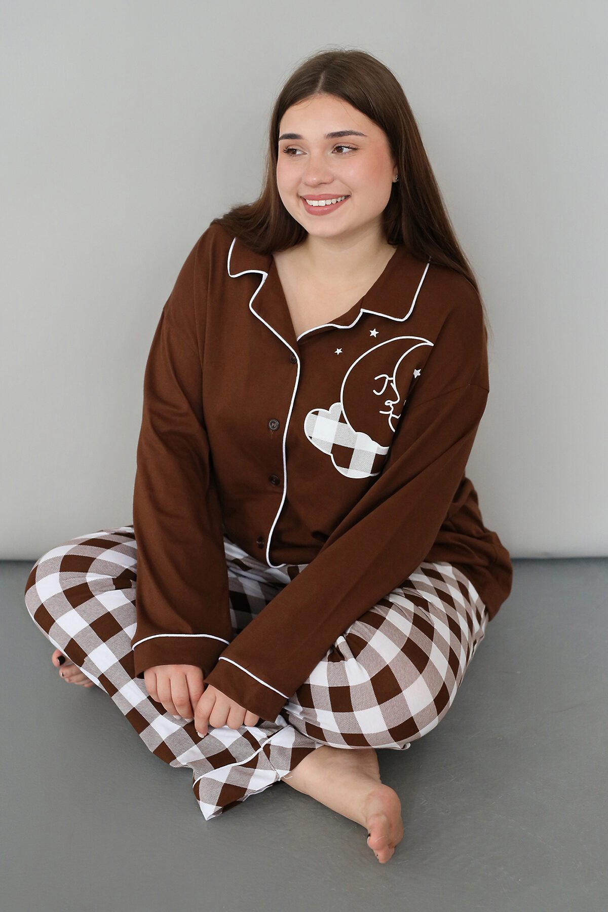 Набор пижамы В Размере из коллекции 2026 станет идеальным выбором для комфортного отдыха дома в прохладные осенние вечера. Этот утепленный комплект, выполненный из 100% хлопка, подарит вам ощущение нежности и тепла. Мягкая рубашка с длинным рукавом и прямые штанишки на резинке с удобными карманами в шве создают стильный и уютный образ. Рисунок в виде бордовой сетки придает пижаме особый шарм, а свободный крой обеспечивает максимальный комфорт для женщин plus size. Легкий трикотажный материал приятен к телу и не сковывает движений. Этот набор станет прекрасным подарком на Рождество или для тех, кто ценит комфорт и уют. Благодаря натуральным материалам и продуманному крою, пижама В Размере станет вашим любимым спутником в холодные осенние ночи.