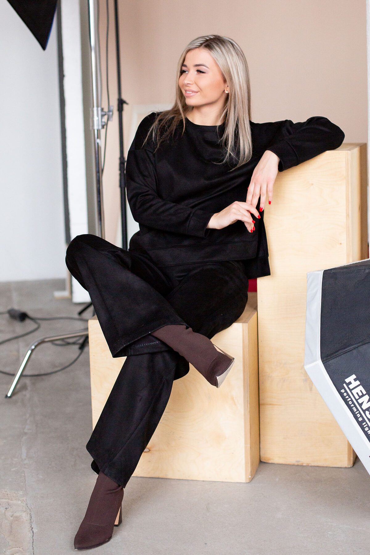 Костюм с брюками замшевый брючный 43043 НАТАЛИ, черный