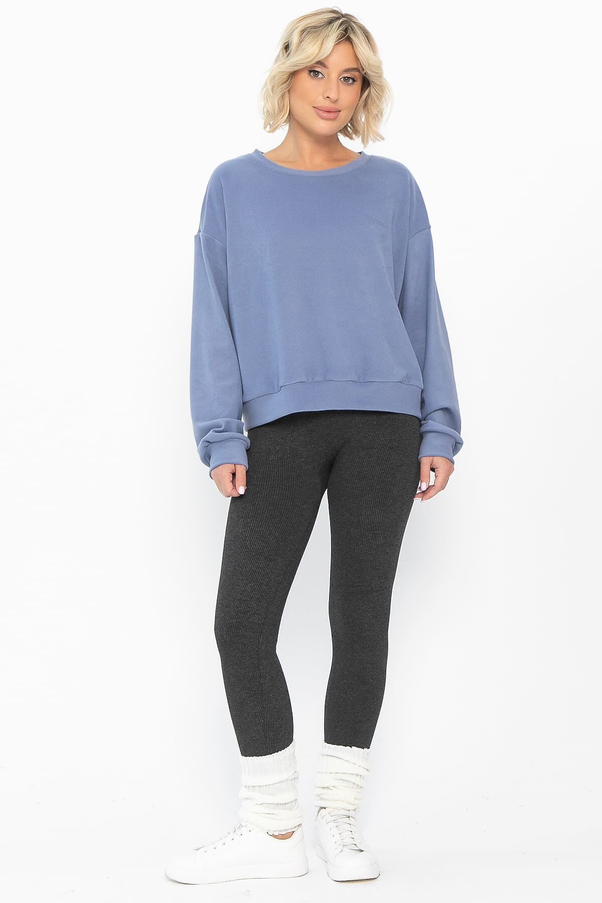 Наш новый укороченный свитшот сделан из мягкого трикотажа с фланелевой изнаночной стороной, что добавляет уюта и тепла. Этот стильный элемент гардероба станет отличным дополнением к вашему повседневному стилю. Однотонный голубой цвет легко комбинируется с джинсами, брюками и юбками. Горловина округлая, рукава и низ изделия с манжетами. Добавьте этот свитшот в свой гардероб и наслаждайтесь комфортом и модным образом каждый день!
