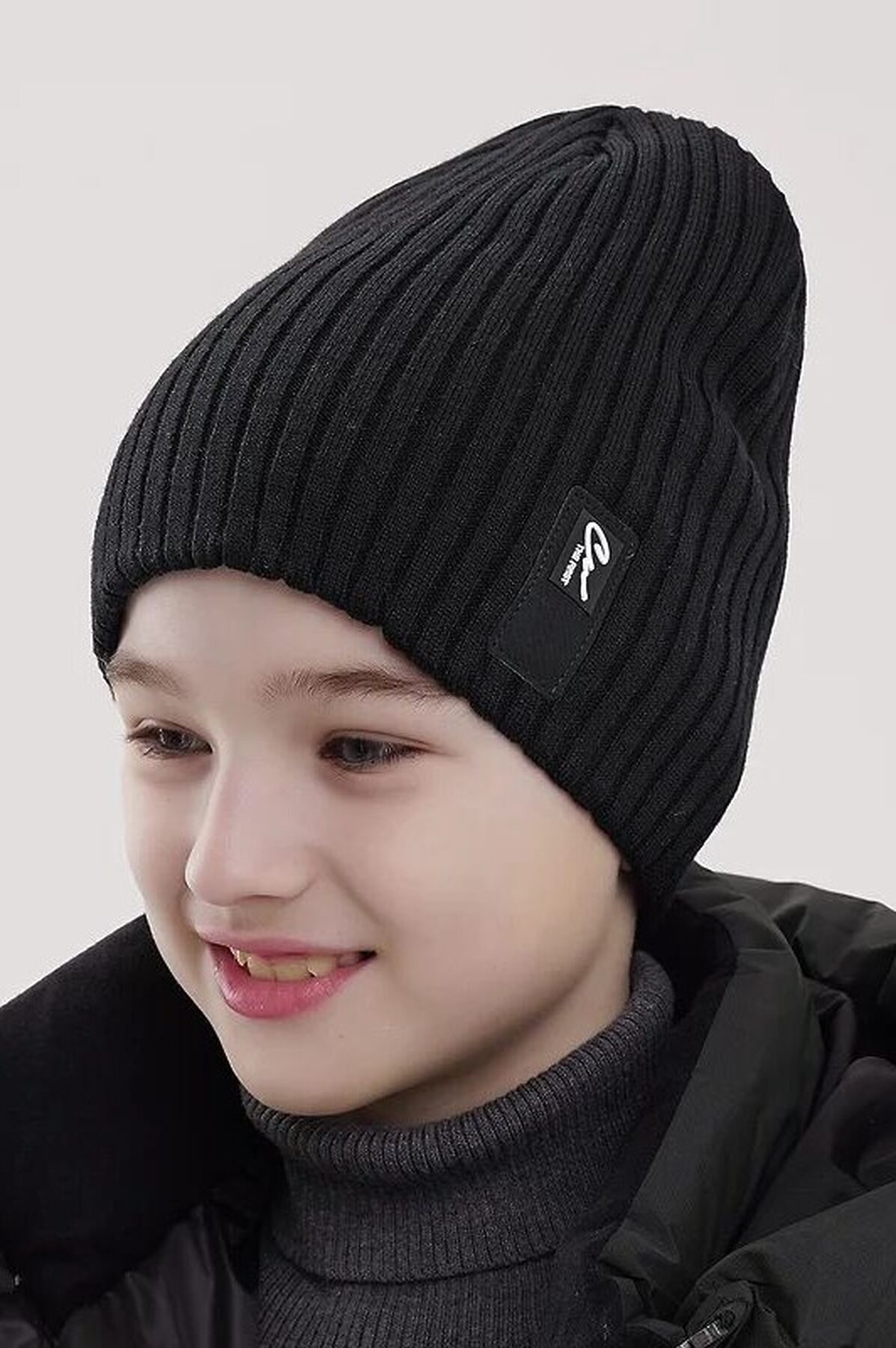 Шапка детская двойная без отворота, выполнена из высококачественной пряжи с добавлением шерсти. Утепление полоской флиса в области ушей. Отлично подойдёт для холодной зимы.
