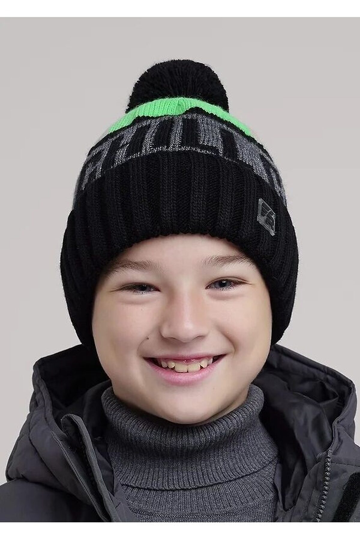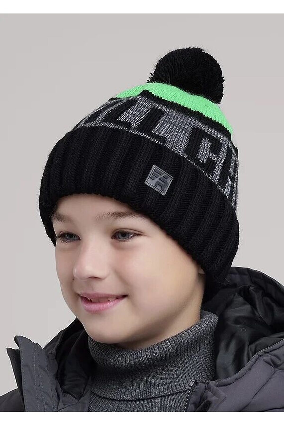 Шапка детская с отворотом и ниточным помпоном, с утеплением флисом по всей голове. Выполнена из высококачественной пряжи, декорирована стильной нашивкой в височной зоне. Станет не только отличной защитой от холода, но и модным аксессуаром.