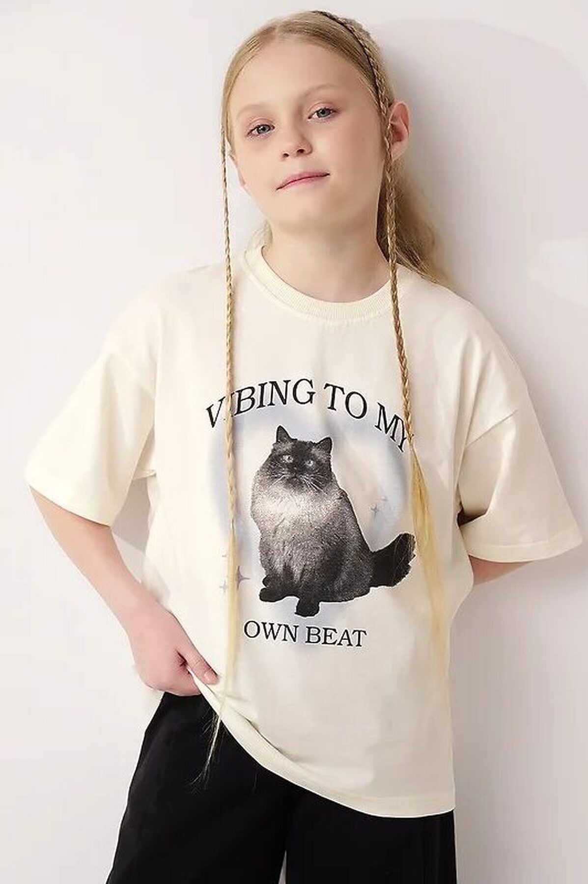Классная футболка с ярким принтом- то, что нужно для создания классного образа и отличного настроения! Горловина выполнена из эластичного трикотажа. Качественные материалы, актуальный крой и трендовый принт- всё для твоего комфорта!