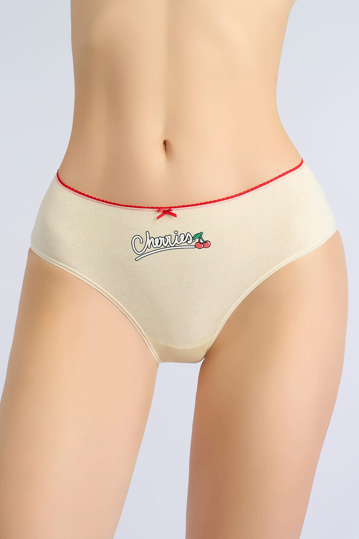 Трусы слипы женские 3127LUB бренда Indefini изготовлены из смеси хлопка и эластана. Выполнены в кремовом цвете. Трусы средней посадки держатся на талии мягкой резинкой с красной строчкой и декоративным бантиком спереди. На внутренней стороне трусов имеется хлопковая ластовица. На трусы нанесён принт с надписью «Cherries» и изображением вишни. Параметры модели на фото: 89-61-95 Рост модели на фото: 179 см Атрибуты ID119814624 Артикул3127LUB