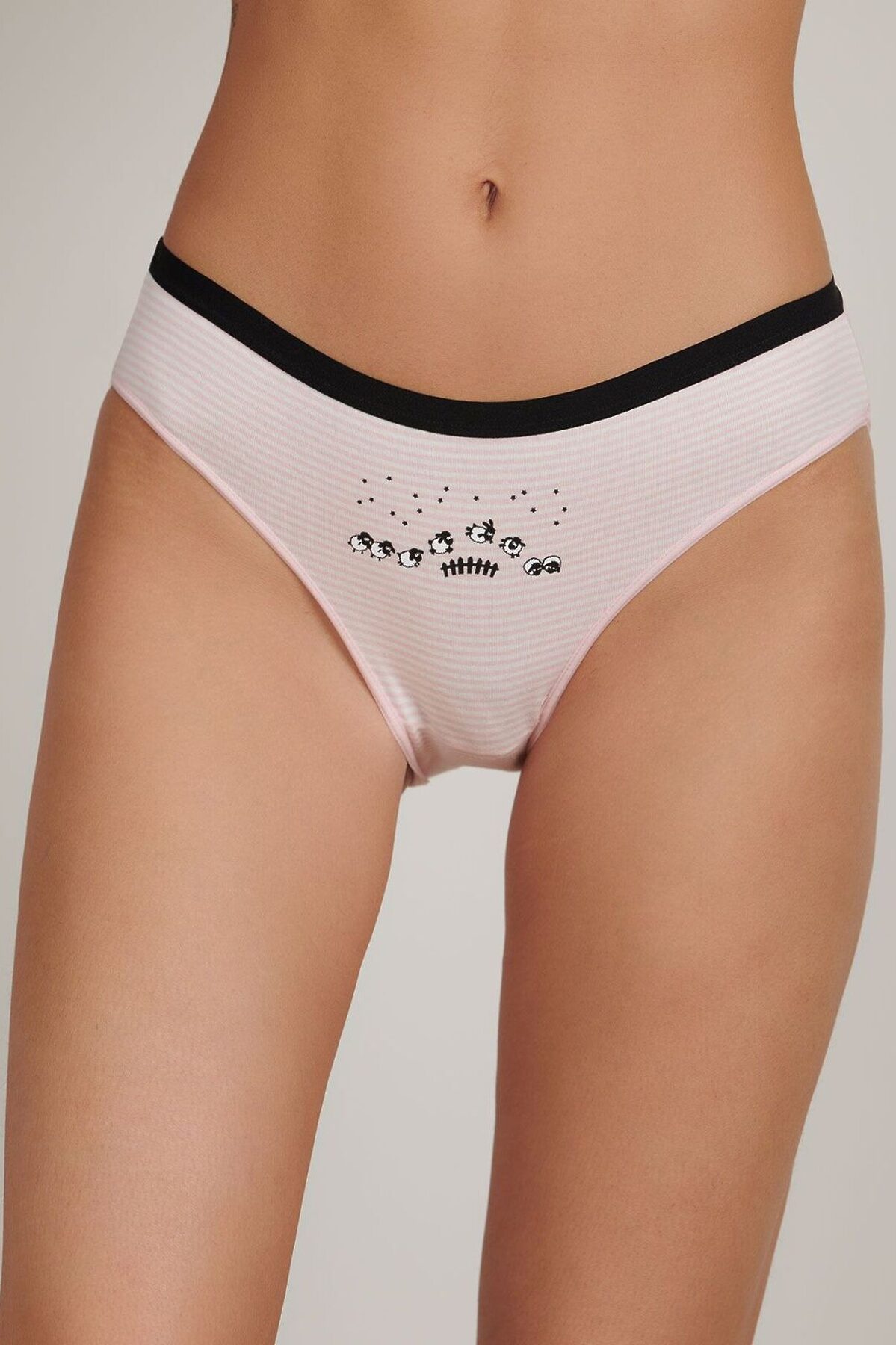 Женские трусы от торговой марки Индефини. Трусы-слипы из хлопка, розового цвета, с принтом, в полоску спереди, на мягкой резинке, средней посадки.