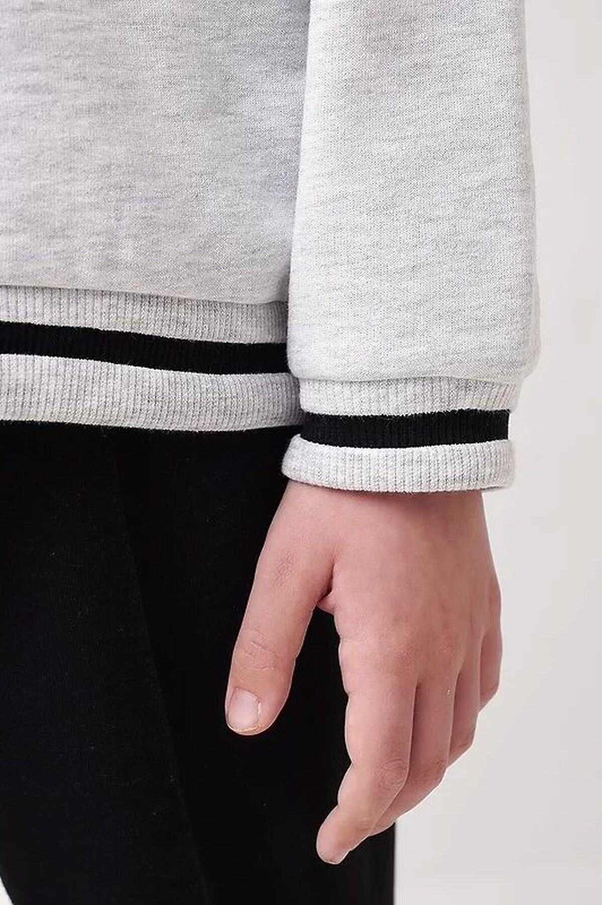 Стильный меланжевый джемпер- тренд сезона! Модель расслабленного кроя с рукавом "реглан" идеально дополнит твой гардероб. Модель дополнена эластичной горловиной, манжетами и поясом с контрастными полосками. Стильный принт спереди завершает образ.