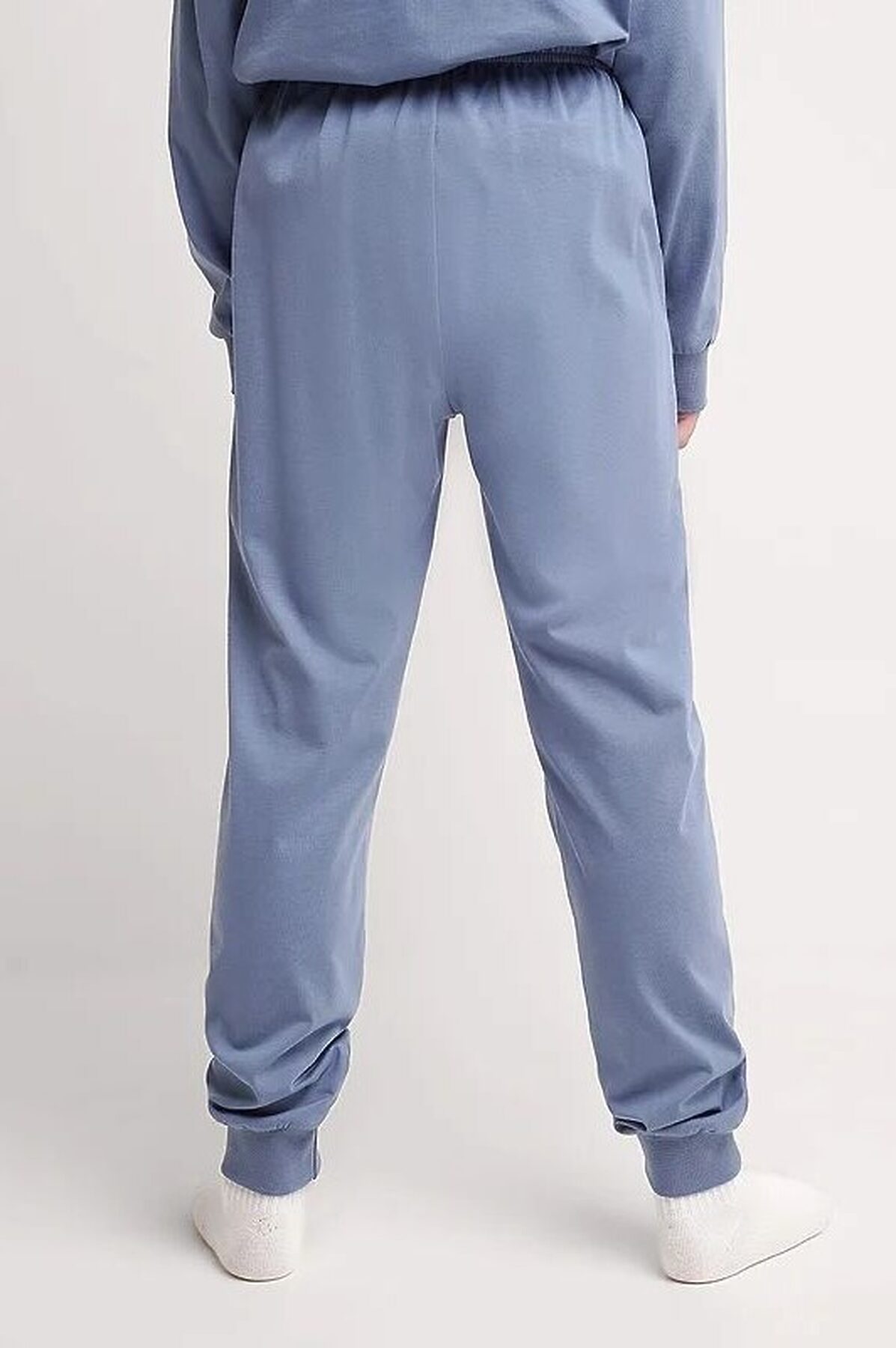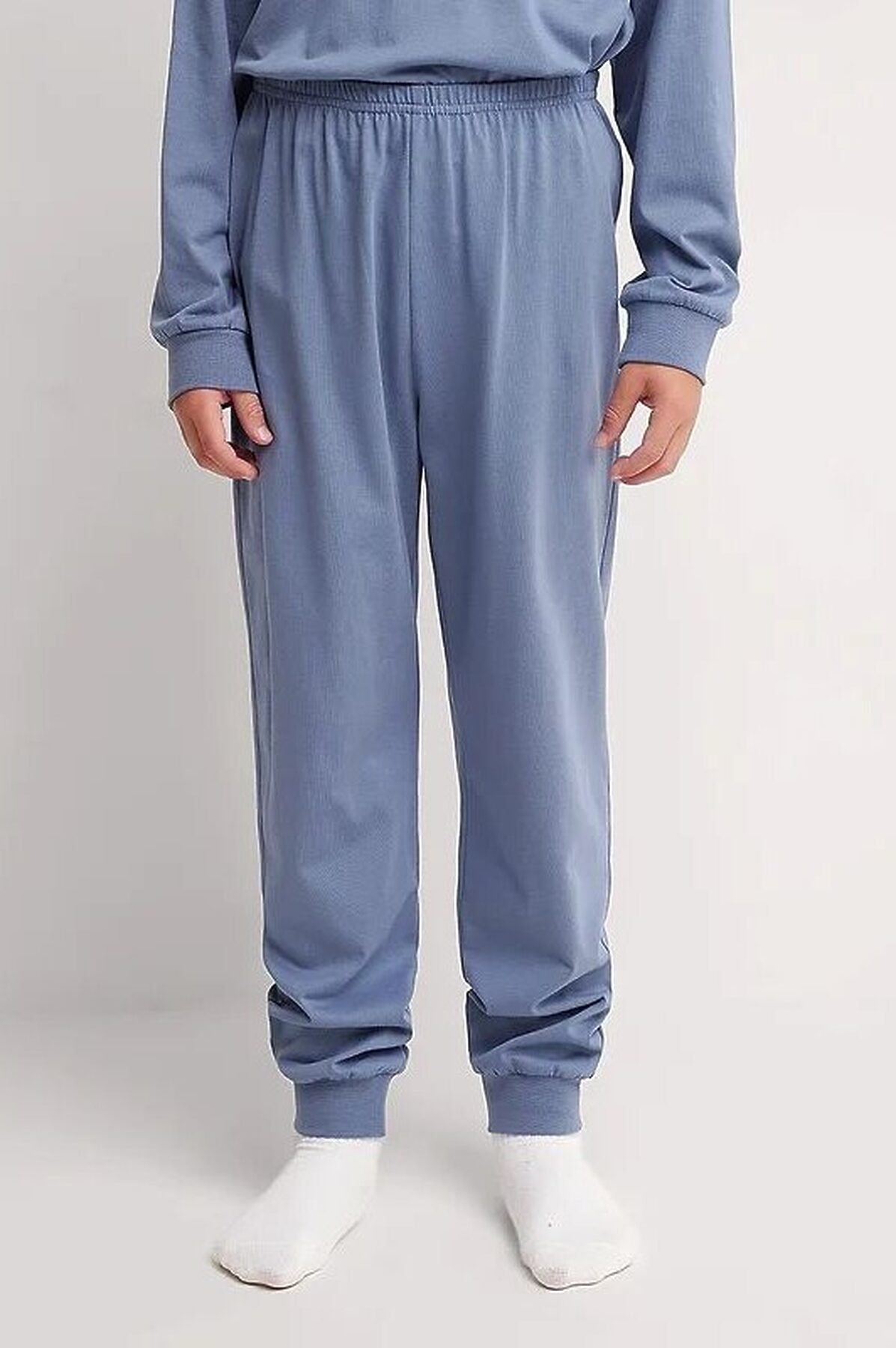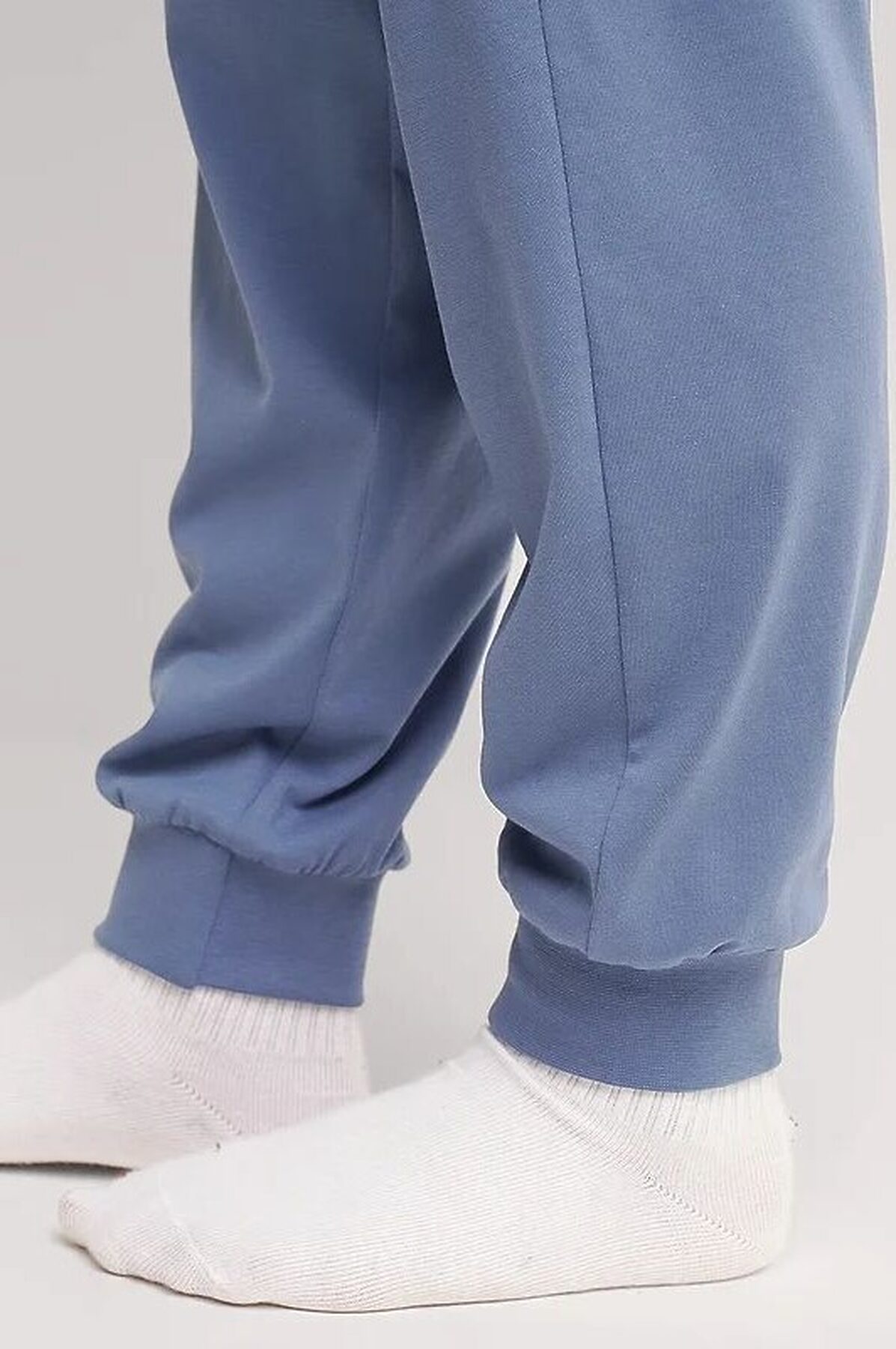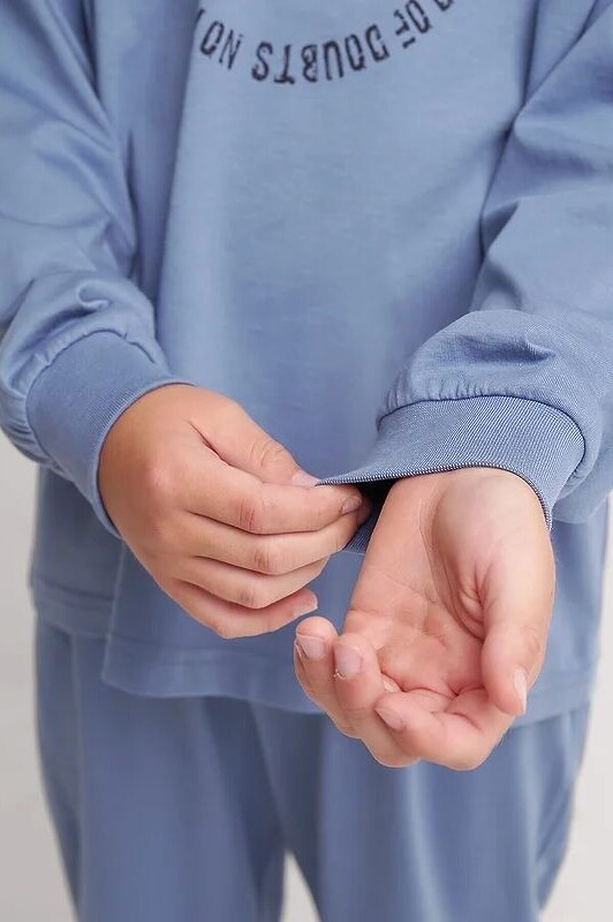 Комплект хлопковой пижамы из джемпера и брюк. Джемпер свободного кроя дополнен эластичной горловиной и манжетами. Брюки среднего объема, эластичный пояс обеспечит комфорт и идеальную посадку. По низу брюк эластичные манжеты.