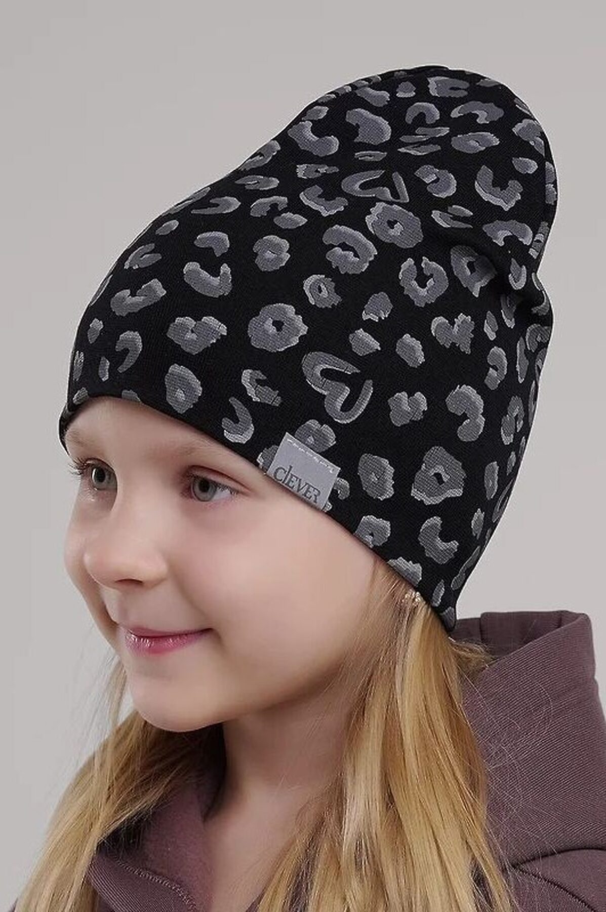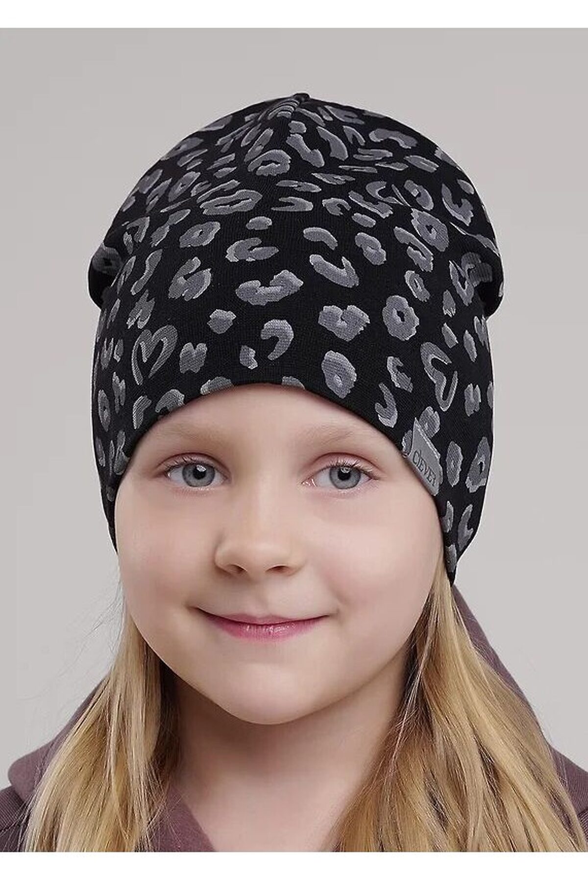 Детская двойная шапка с принтом без отворота. Размер 52-54