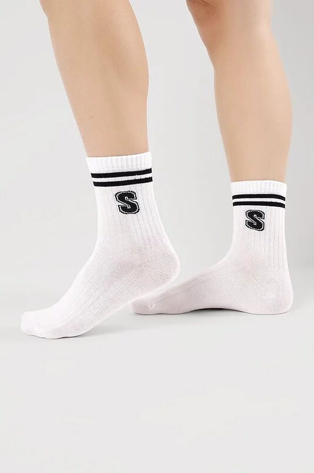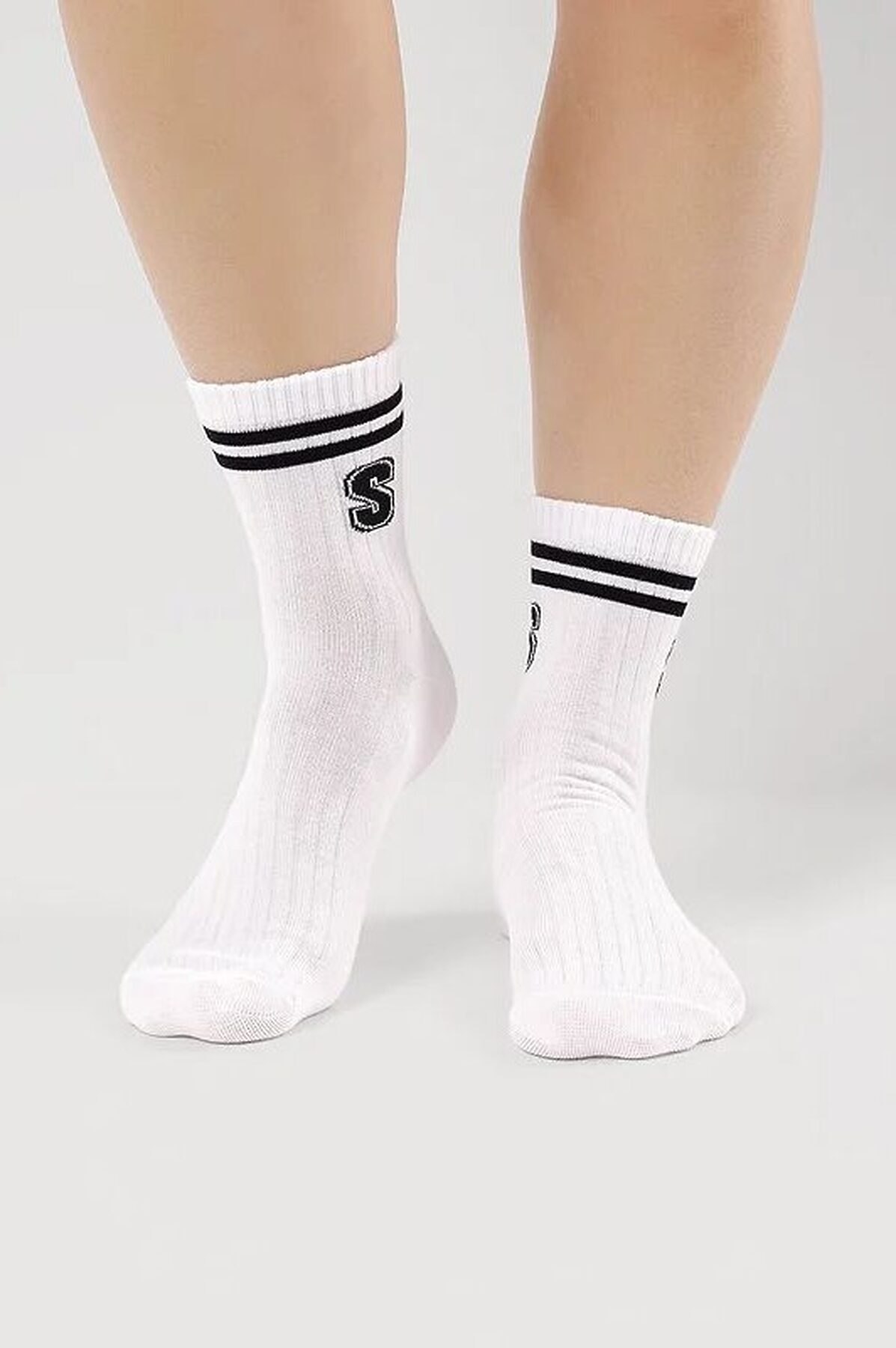 Носки для девочки в лапшу с полосками на паголенке и буквой S