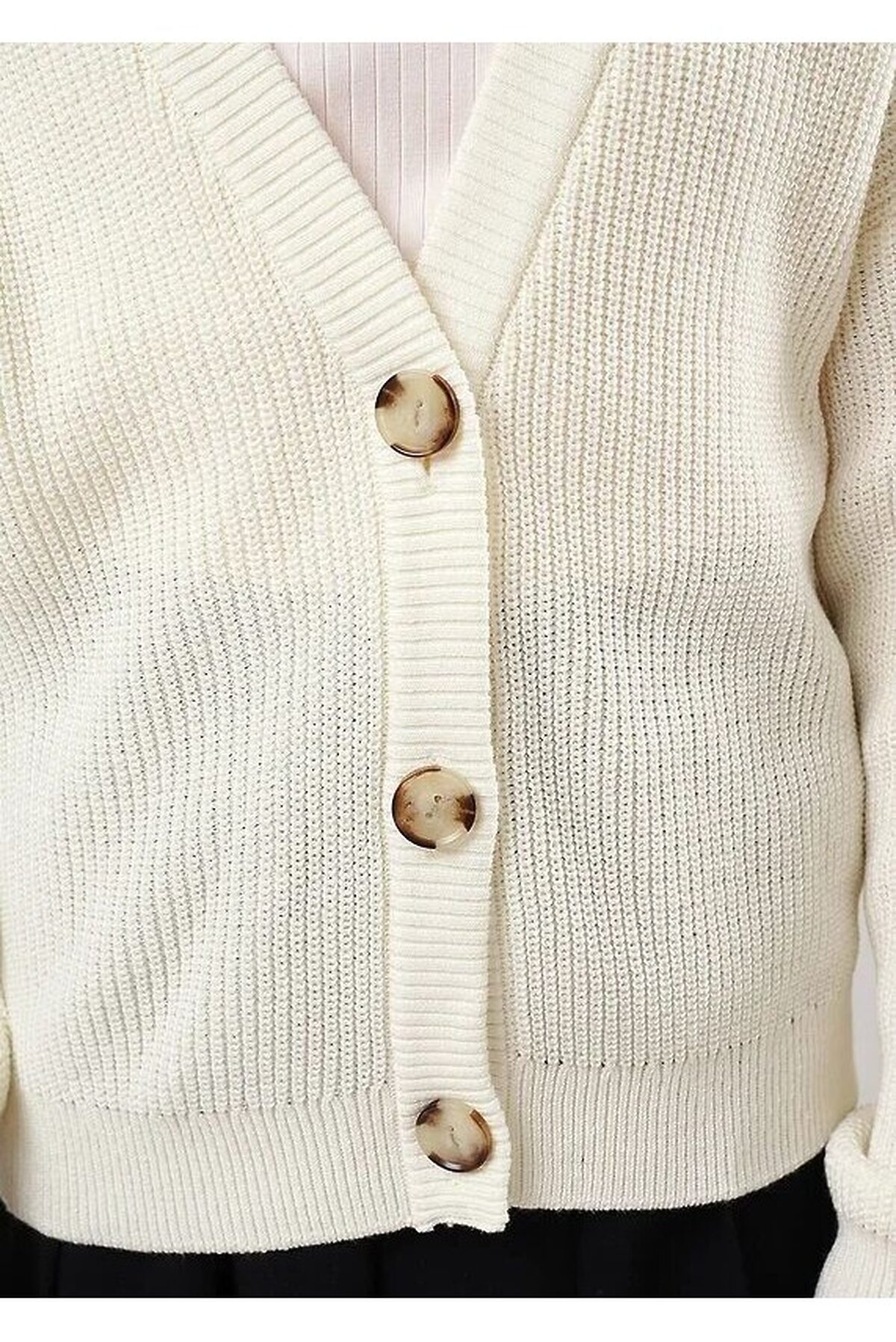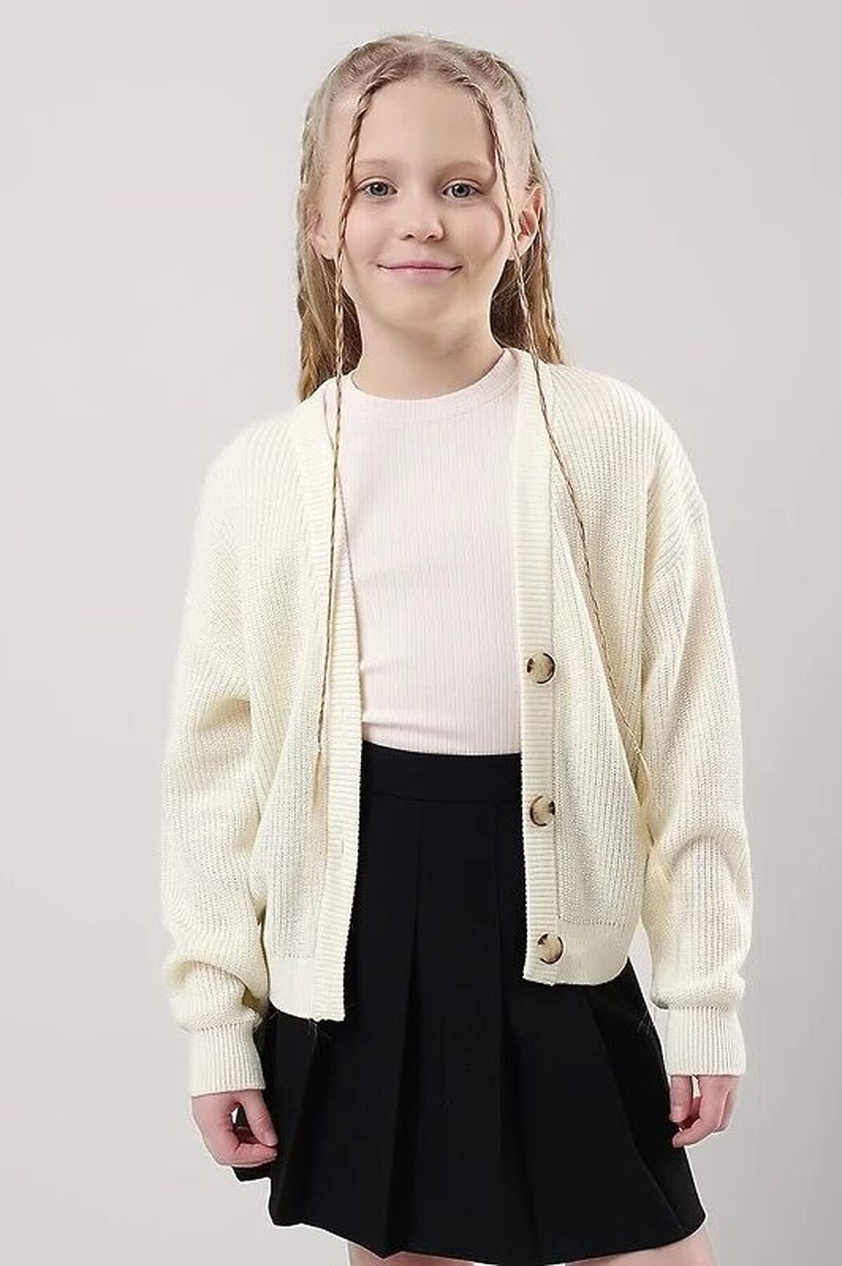 Стильный укороченный кардиган из хлопка с добавлением акрила. Трендовые оттенки, свободный силуэт, спущенная линия плеча, застежка на пуговицы. По горловине, низу рукавов и изделия эластичная вязка.