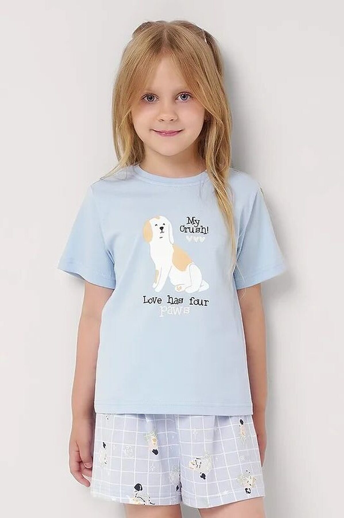 Комплект хлопковой пижамы из футболки и шорт. Футболка свободного кроя дополнена эластичной горловиной и стильным принтом. Шорты среднего объема, эластичный пояс обеспечит комфорт и идеальную посадку.