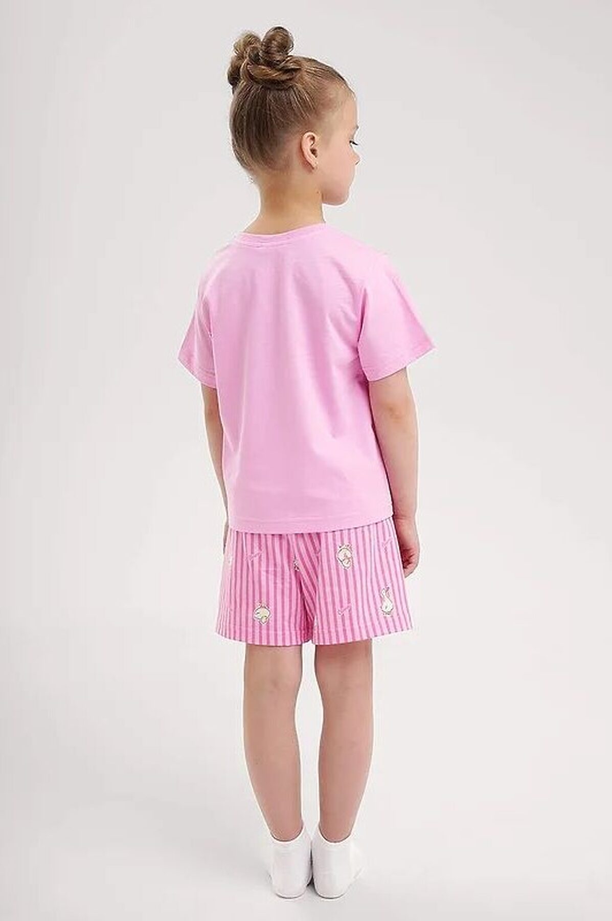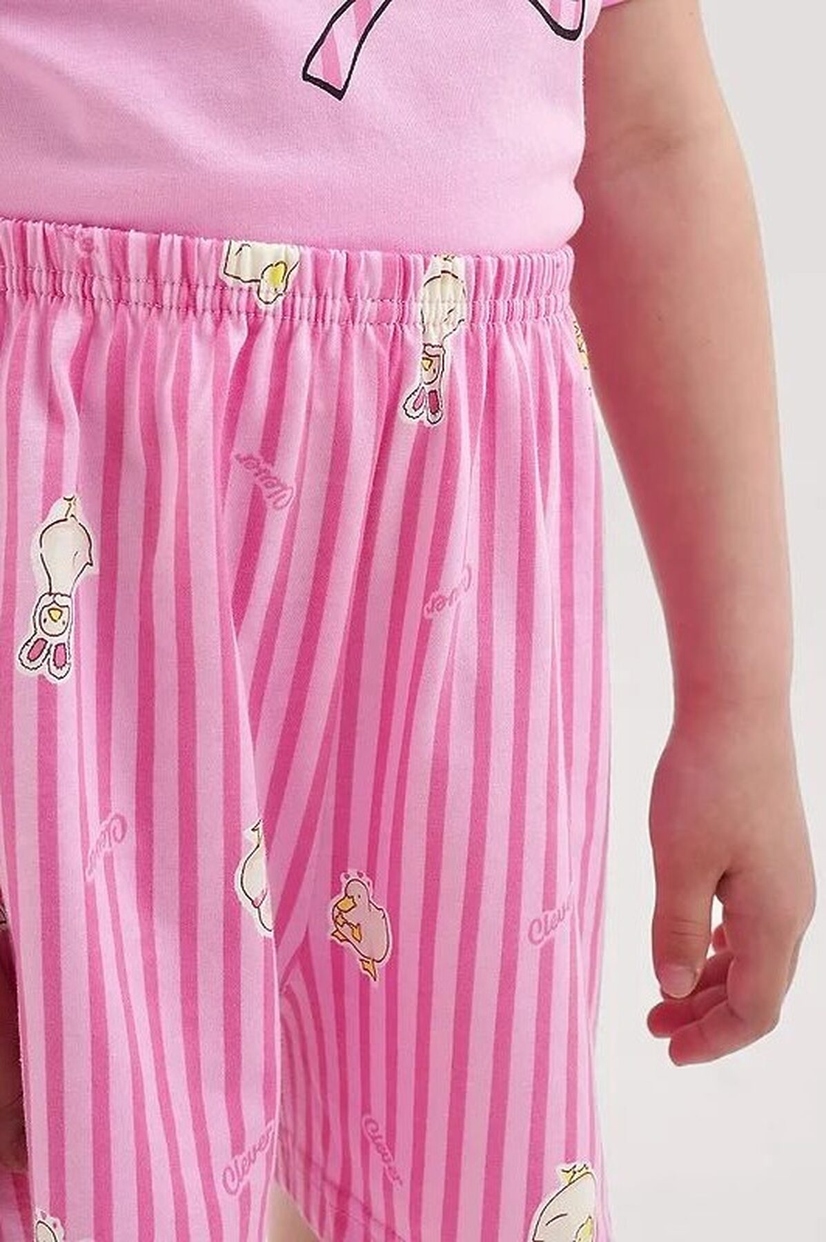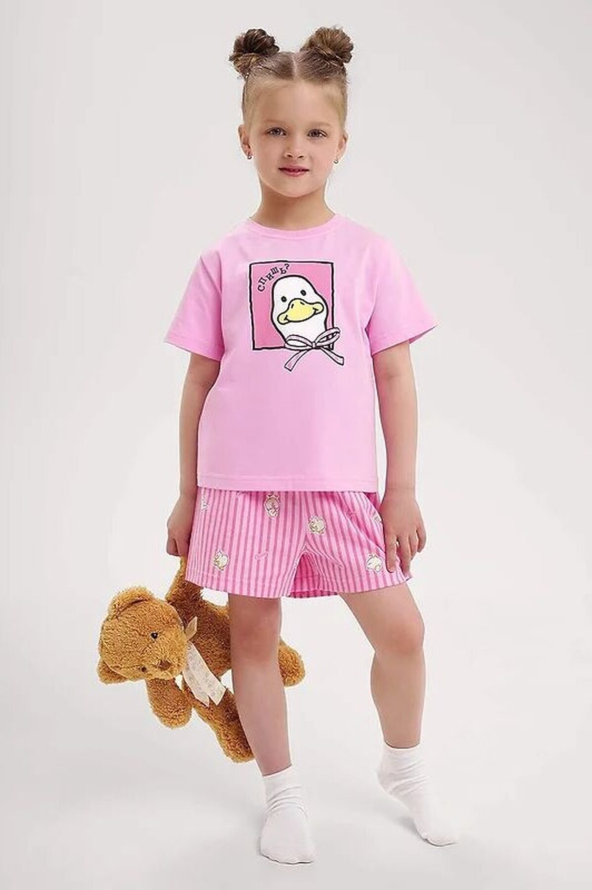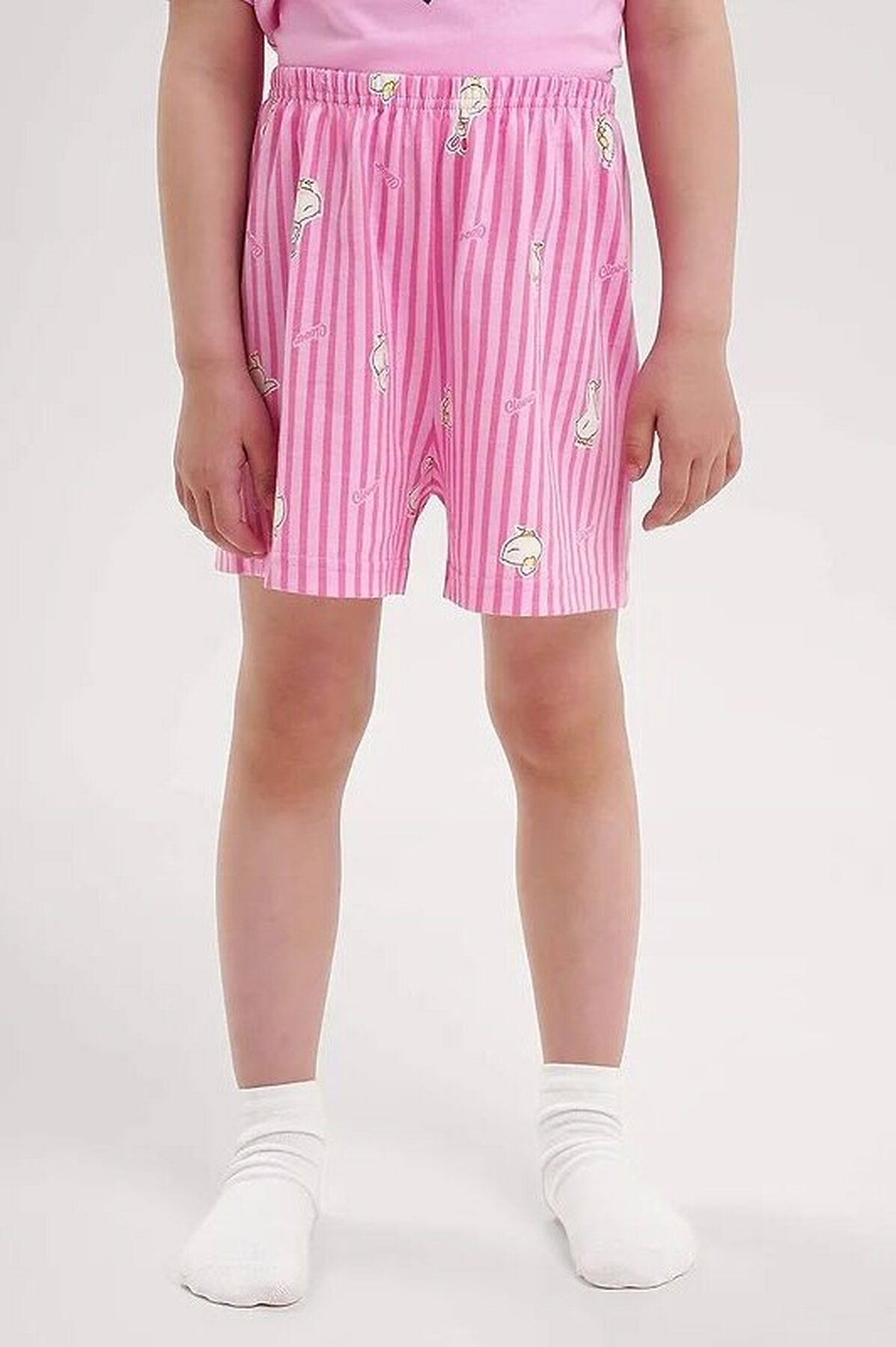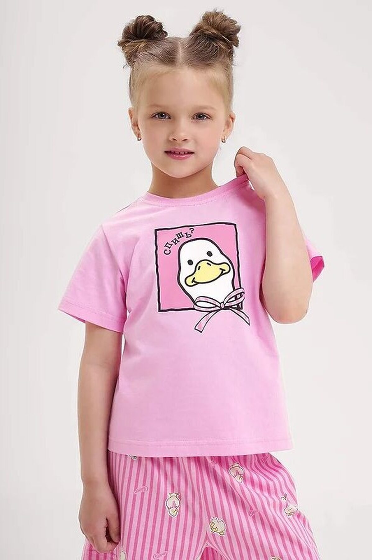 Комплект хлопковой пижамы из футболки и шорт. Футболка свободного кроя дополнена эластичной горловиной и стильным принтом. Шорты среднего объема, эластичный пояс обеспечит комфорт и идеальную посадку.