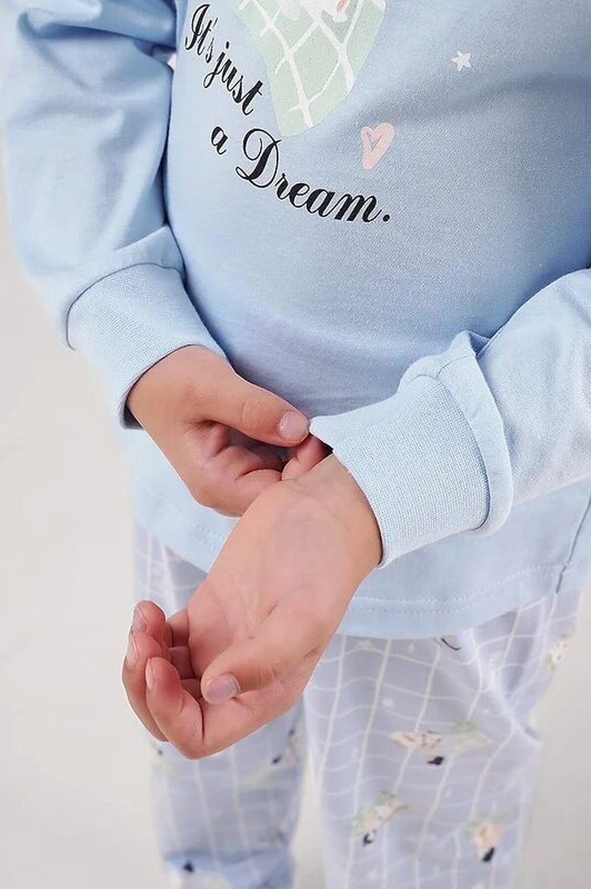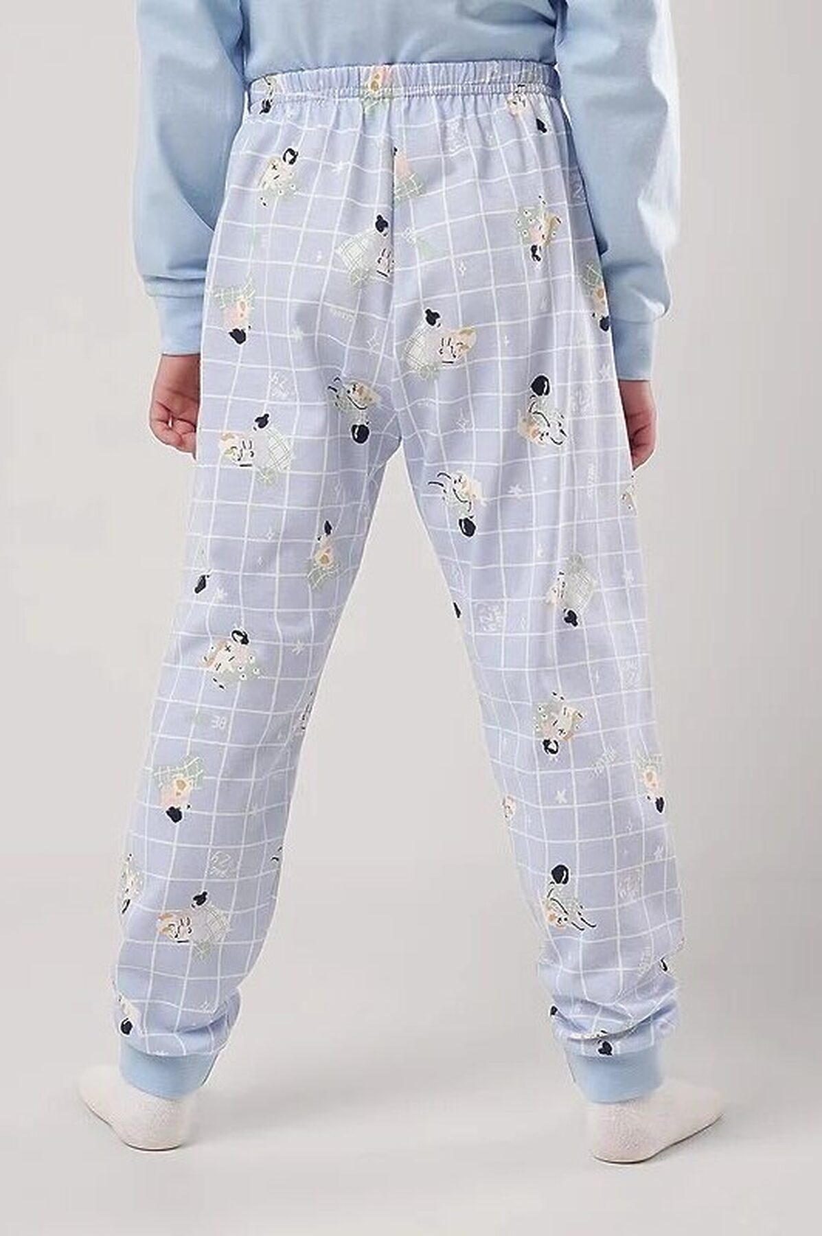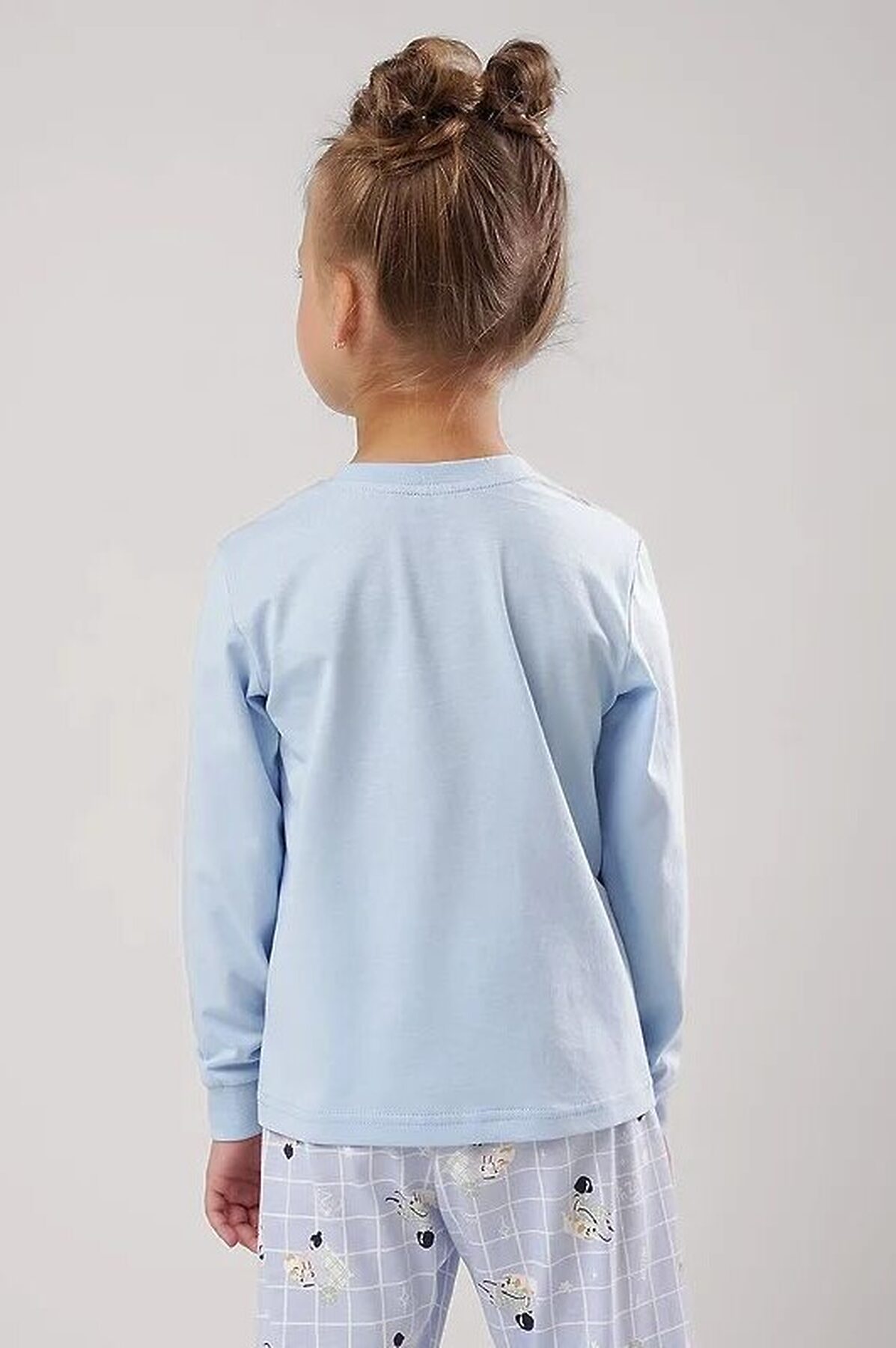 Комплект хлопковой пижамы из джемпера и брюк. Джемпер свободного кроя дополнен эластичной горловиной и манжетами. Брюки среднего объема, эластичный пояс обеспечит комфорт и идеальную посадку. По низу брюк эластичные манжеты.