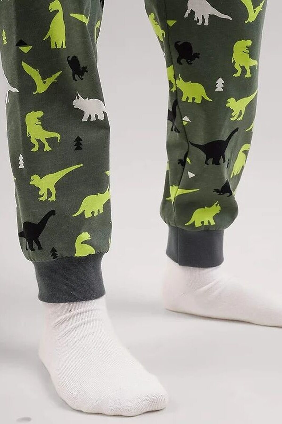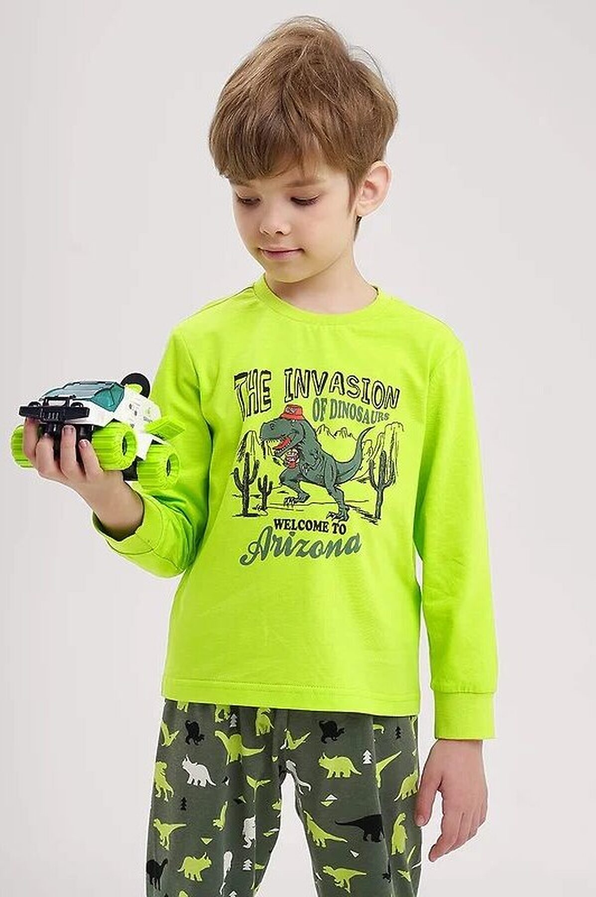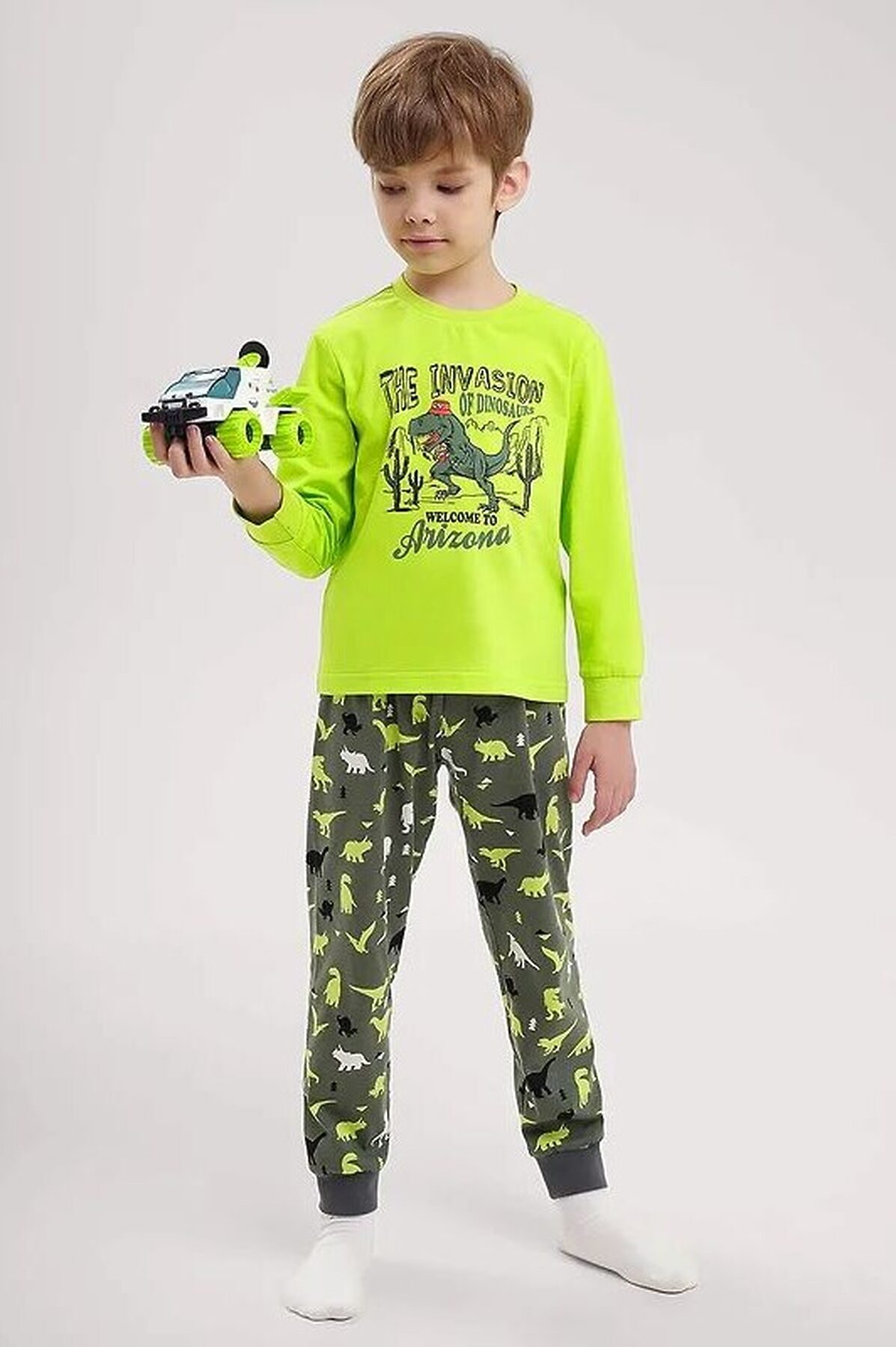 Комплект хлопковой пижамы из джемпера и брюк. Джемпер свободного кроя дополнен эластичной горловиной и манжетами. Брюки среднего объема, эластичный пояс обеспечит комфорт и идеальную посадку. По низу брюк эластичные манжеты.