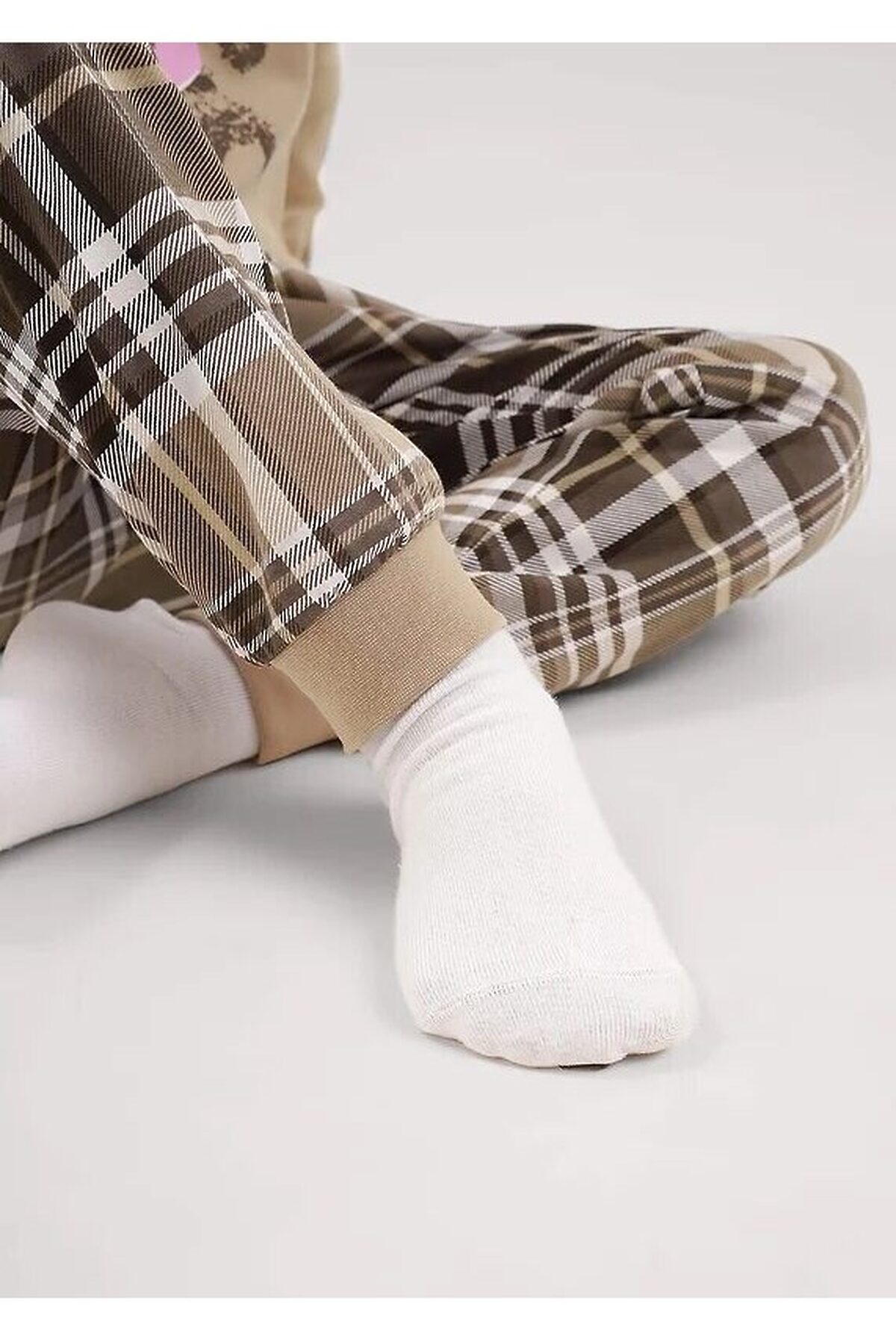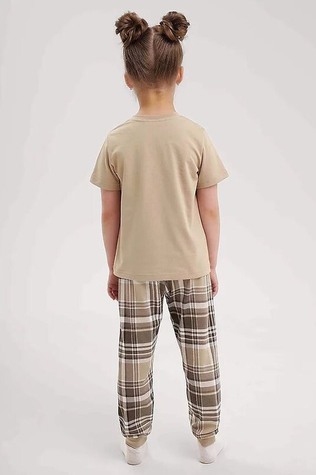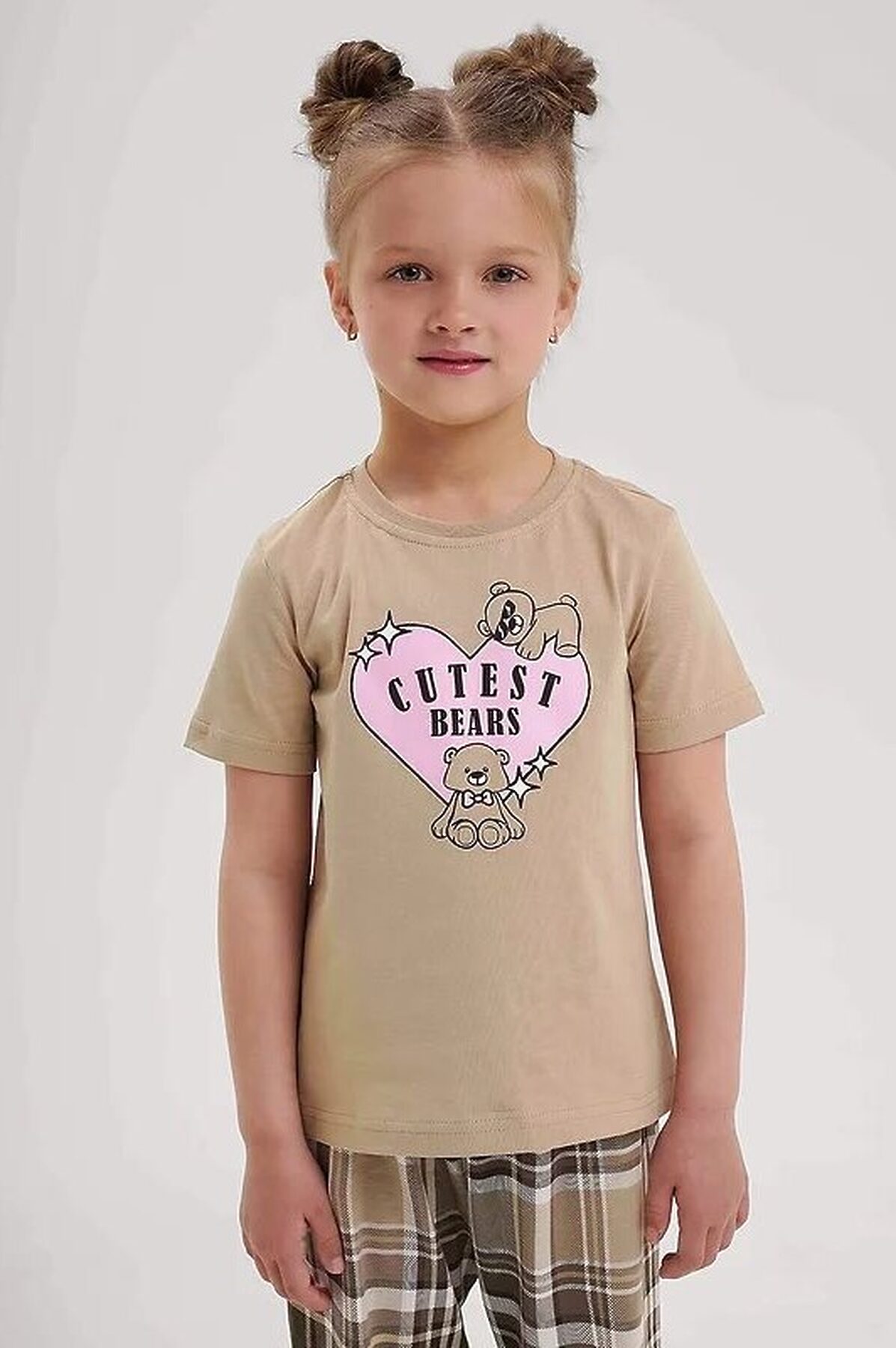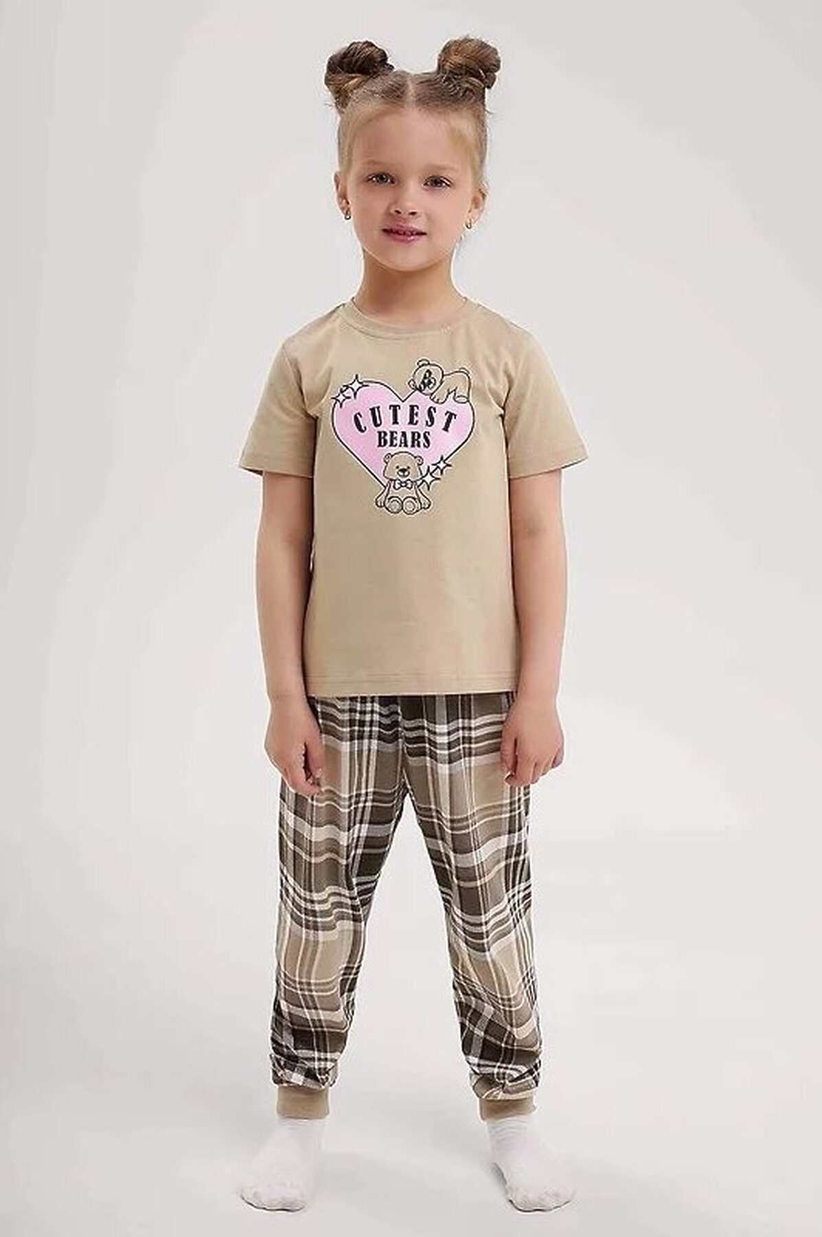 Комплект хлопковой пижамы из футболки и брюк. Футболка свободного кроя дополнена эластичной горловиной и милым принтом. Брюки среднего объема, эластичный пояс обеспечит комфорт и идеальную посадку. По низу брюк эластичные манжеты.