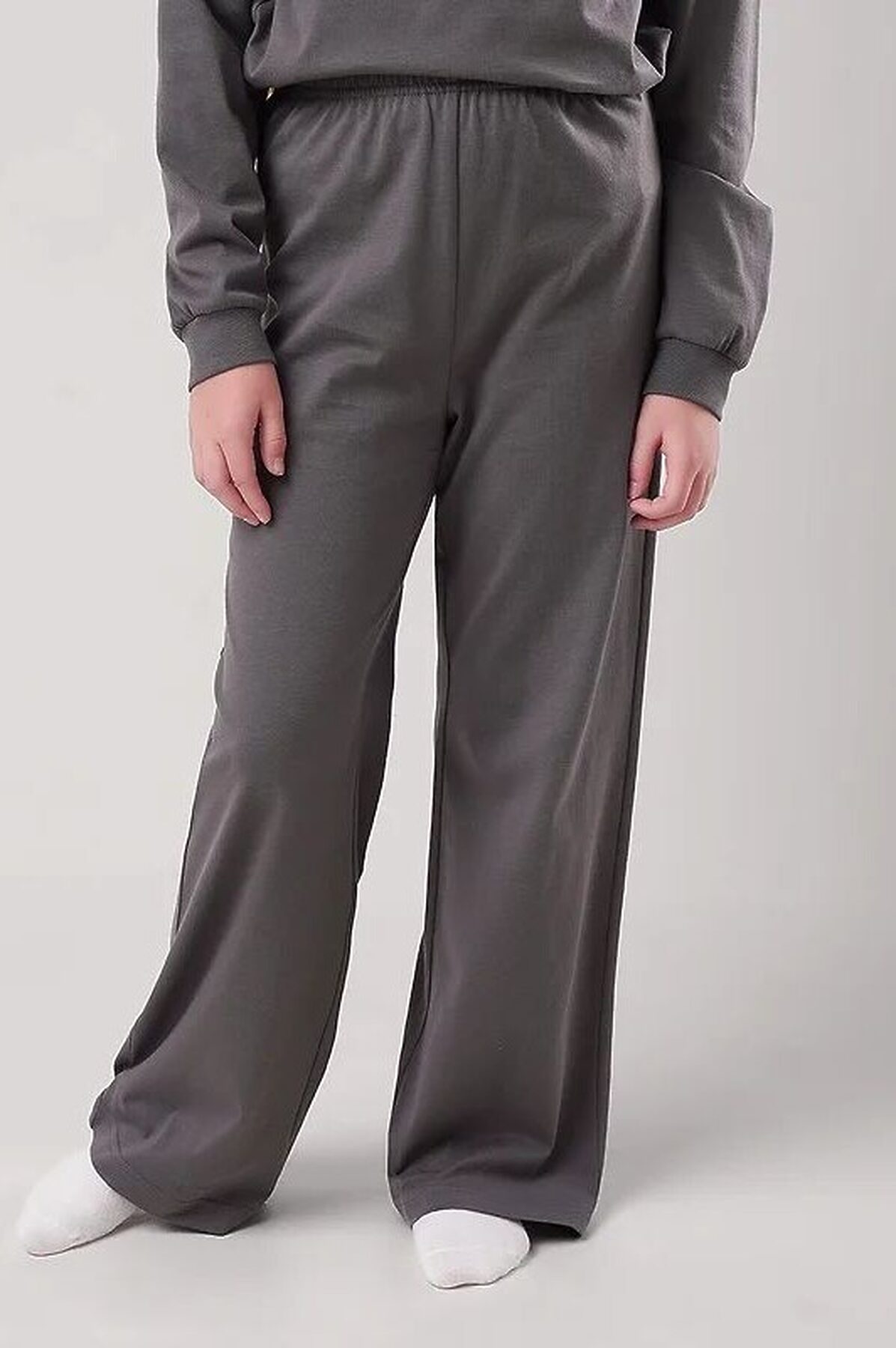 Комплект хлопковой пижамы из джемпера и брюк. Джемпер свободного кроя дополнен эластичной горловиной и манжетами. Брюки среднего объема, эластичный пояс обеспечит комфорт и идеальную посадку.