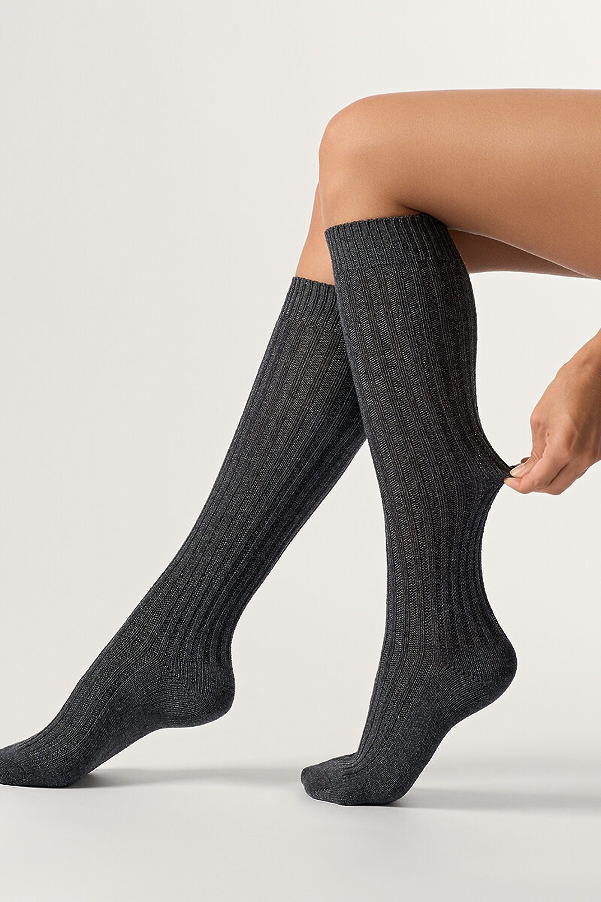 Женские тёплые эластичные гольфы 200 den с шерстью в рубчик. Шерсть в составе обладает высокими теплосберегающими свойствами и отлично пропускает воздух, а добавление эластана обеспечивает превосходное облегание. Анатомическая пятка деликатно повторяет форму стопы, а мягкая удобная резинка обеспечивает комфорт в течение всего дня. Акцентный и функциональный элемент гардероба, способный придать образу стильную завершённость — от непринуждённой повседневности до утончённой многослойности. Фактурный рубчик добавляет актуальное модное звучание — в духе современных трикотажных трендов.