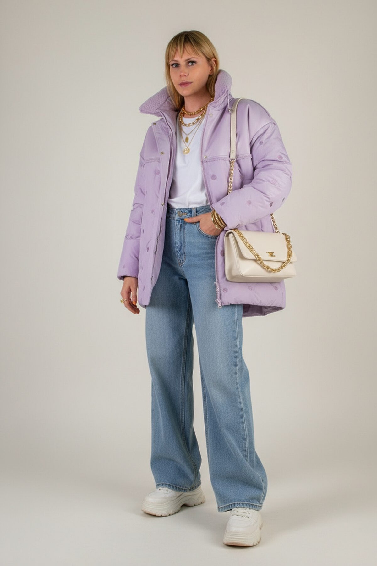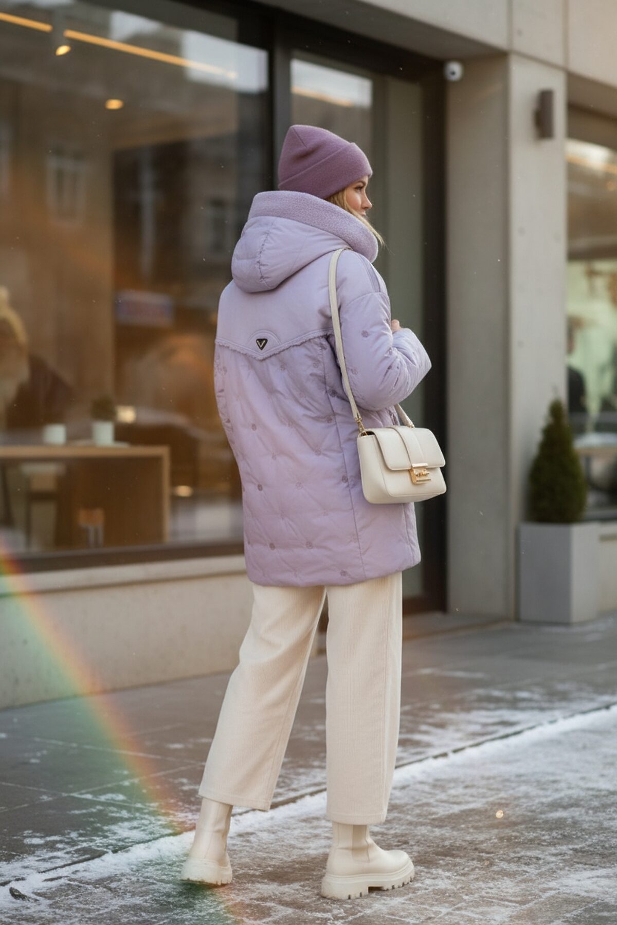 Элегантная и сверх тёплая зимняя куртка-дубленка арт.318 идеальный выбор для суровых морозов. Модель средней длины (87 см) сочетает в себе комфорт, стиль и непревзойдённое качество исполнения. Основные преимущества: Наполнитель из верблюжьей шерсти: лёгкий и при этом невероятно тёплый. Шерсть равномерно простёгана внутри изделия, что исключает смещение наполнителя и обеспечивает однородность теплового комфорта. Крой средней длины (87 см) отлично защищает от ветра и холода, позволяя сохранить свободу движений. Капюшон со стойкой-воротником на фиксаторах украшен двусторонней меховой опушкой барашек в цвет изделия исключительное сочетание уютной фактуры и актуального дизайна. Модная кокетка из утеплённой экозамши супер приятной на ощупь, отделана мехом в тон куртки. Вместо привычной строчки современная ультрасовременная вышивка, придающая изделию роскошный вид. Надёжная двойная молния с тёплой планкой на кнопках защищает от продувания. Функциональные детали: Два вместительных боковых кармана на кнопках для согрева рук и хранения мелочей. Тайный внутренний карман для документов или смартфона. Высококачественные фурнитура и строчка, которые гарантируют долговечность и эстетику. Влаго- и грязеотталкивающая пропитка ткани сохраняет безупречный вид при любых погодных испытаниях. Цветовое разнообразие: Основной акцент нежная светлая сирень: утончённый пастельный оттенок, который выгодно подчеркивает красоту женского силуэта и создаёт романтическое настроение. Также в ассортименте: светло-бежевый, бирюзовый и пыльный синий классические и одновременно смелые решения для любого образа. Зимняя куртка-дубленка арт.318 это превосходная комбинация функциональности, стиля и высоких технологий, которая сделает ваши морозные дни по-настоящему тёплыми и комфортными. Не упустите шанс обновить гардероб качественным пуховиком-дубленкой, в которой вы будете выглядеть безупречно и чувствовать себя уютно даже при экстремальных температурах.