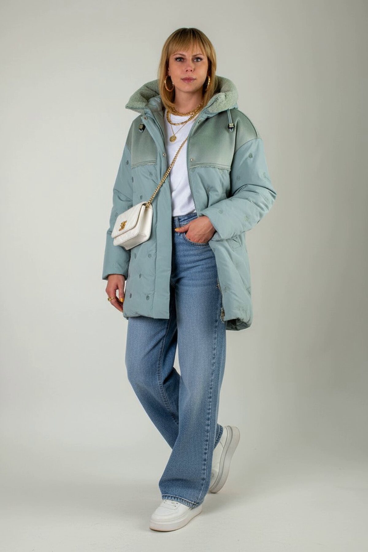 Элегантная и сверх тёплая зимняя куртка-дубленка арт.318 идеальный выбор для суровых морозов. Модель средней длины (87 см) сочетает в себе комфорт, стиль и непревзойдённое качество исполнения. Основные преимущества: Наполнитель из верблюжьей шерсти: лёгкий и при этом невероятно тёплый. Шерсть равномерно простёгана внутри изделия, что исключает смещение наполнителя и обеспечивает однородность теплового комфорта. Крой средней длины (87 см) отлично защищает от ветра и холода, позволяя сохранить свободу движений. Капюшон со стойкой-воротником на фиксаторах украшен двусторонней меховой опушкой барашек в цвет изделия исключительное сочетание уютной фактуры и актуального дизайна. Модная кокетка из утеплённой экозамши супер приятной на ощупь, отделана мехом в тон куртки. Вместо привычной строчки современная ультрасовременная вышивка, придающая изделию роскошный вид. Надёжная двойная молния с тёплой планкой на кнопках защищает от продувания. Функциональные детали: Два вместительных боковых кармана на кнопках для согрева рук и хранения мелочей. Тайный внутренний карман для документов или смартфона. Высококачественные фурнитура и строчка, которые гарантируют долговечность и эстетику. Влаго- и грязеотталкивающая пропитка ткани сохраняет безупречный вид при любых погодных испытаниях. Цветовое разнообразие: Основной акцент нежная светлая сирень: утончённый пастельный оттенок, который выгодно подчеркивает красоту женского силуэта и создаёт романтическое настроение. Также в ассортименте: светло-бежевый, бирюзовый и пыльный синий классические и одновременно смелые решения для любого образа. Зимняя куртка-дубленка арт.318 это превосходная комбинация функциональности, стиля и высоких технологий, которая сделает ваши морозные дни по-настоящему тёплыми и комфортными. Не упустите шанс обновить гардероб качественным пуховиком-дубленкой, в которой вы будете выглядеть безупречно и чувствовать себя уютно даже при экстремальных температурах.