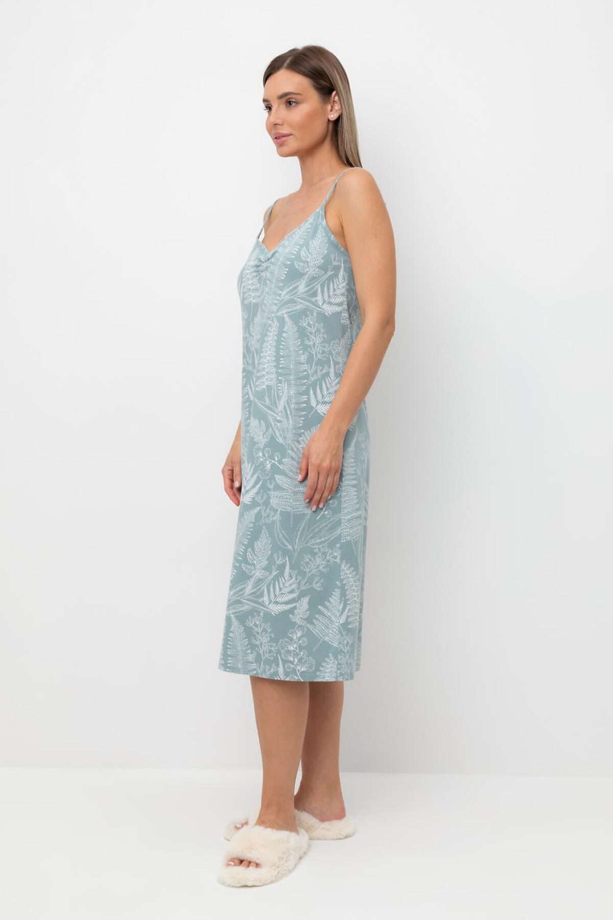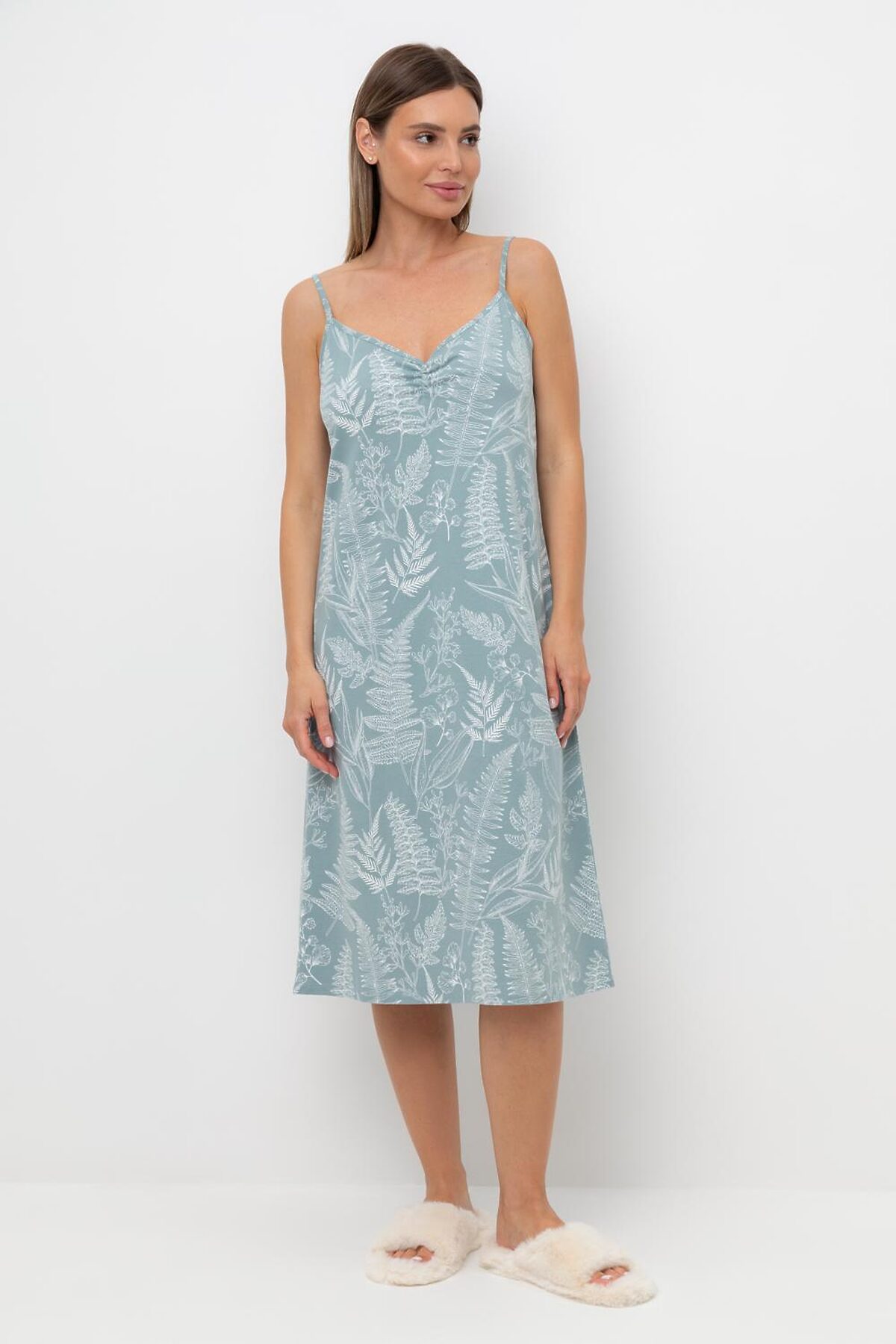 Элегантная женская сорочка с регулируемыми бретелями для комфортного сна. На груди декоративная сборка. Гладкий материал приятен к телу и позволяет коже дышать. Все трикотажные полотна производятся в соответствии с нормами Швейцарского сертификата ЭкоТекс. Сделано в Узбекистане - приталенный силуэт - гипоаллергенные красители - регулировка бретелей