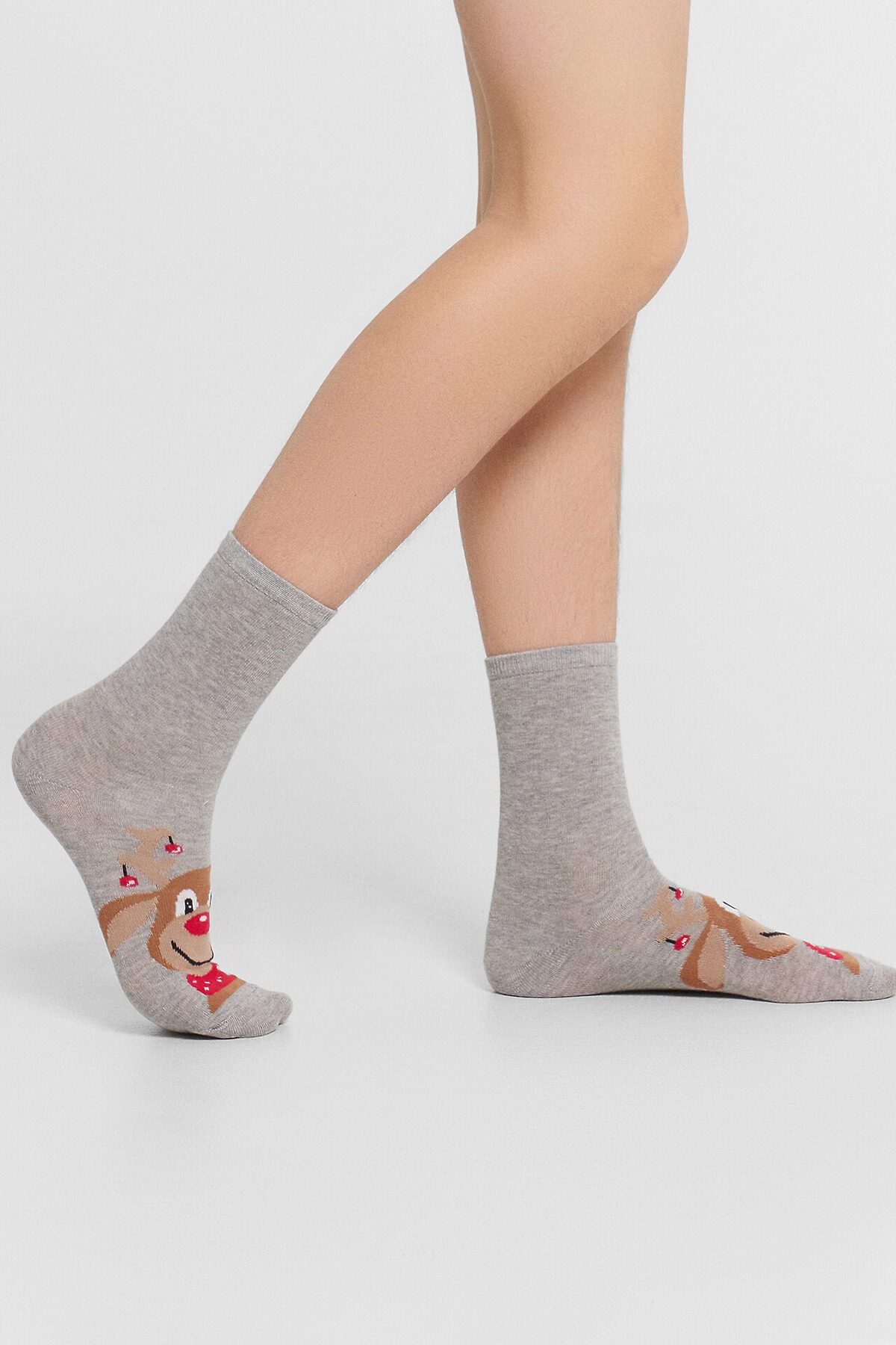 рис.3002 Детские классические носки с рисунком в виде оленя.