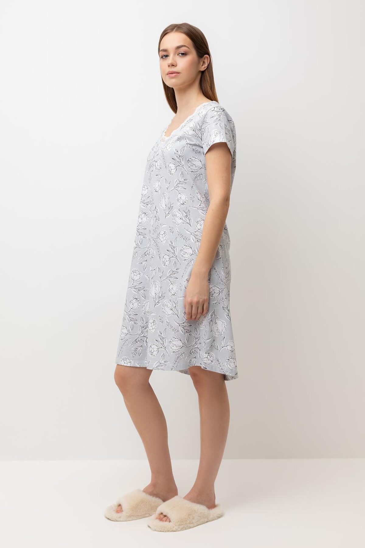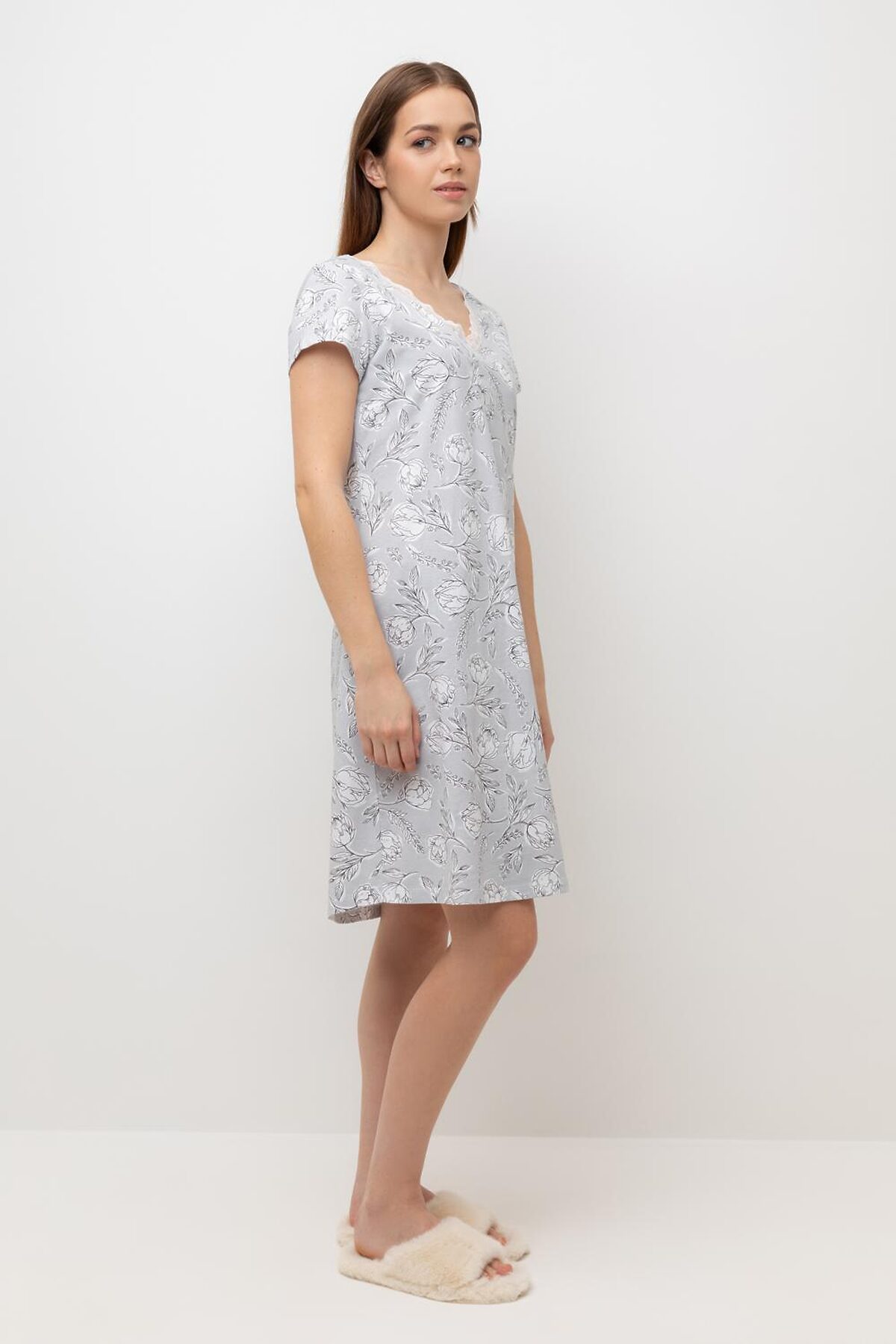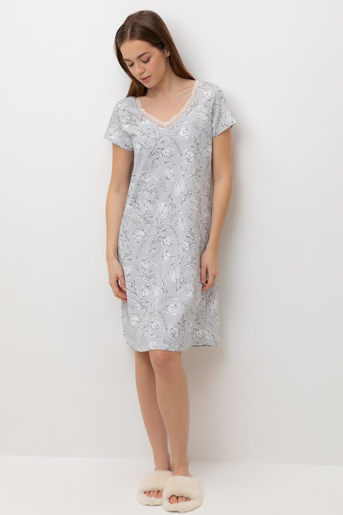 - АртикулЕ 10015/24/светло-серый,нежные цветы сорочка