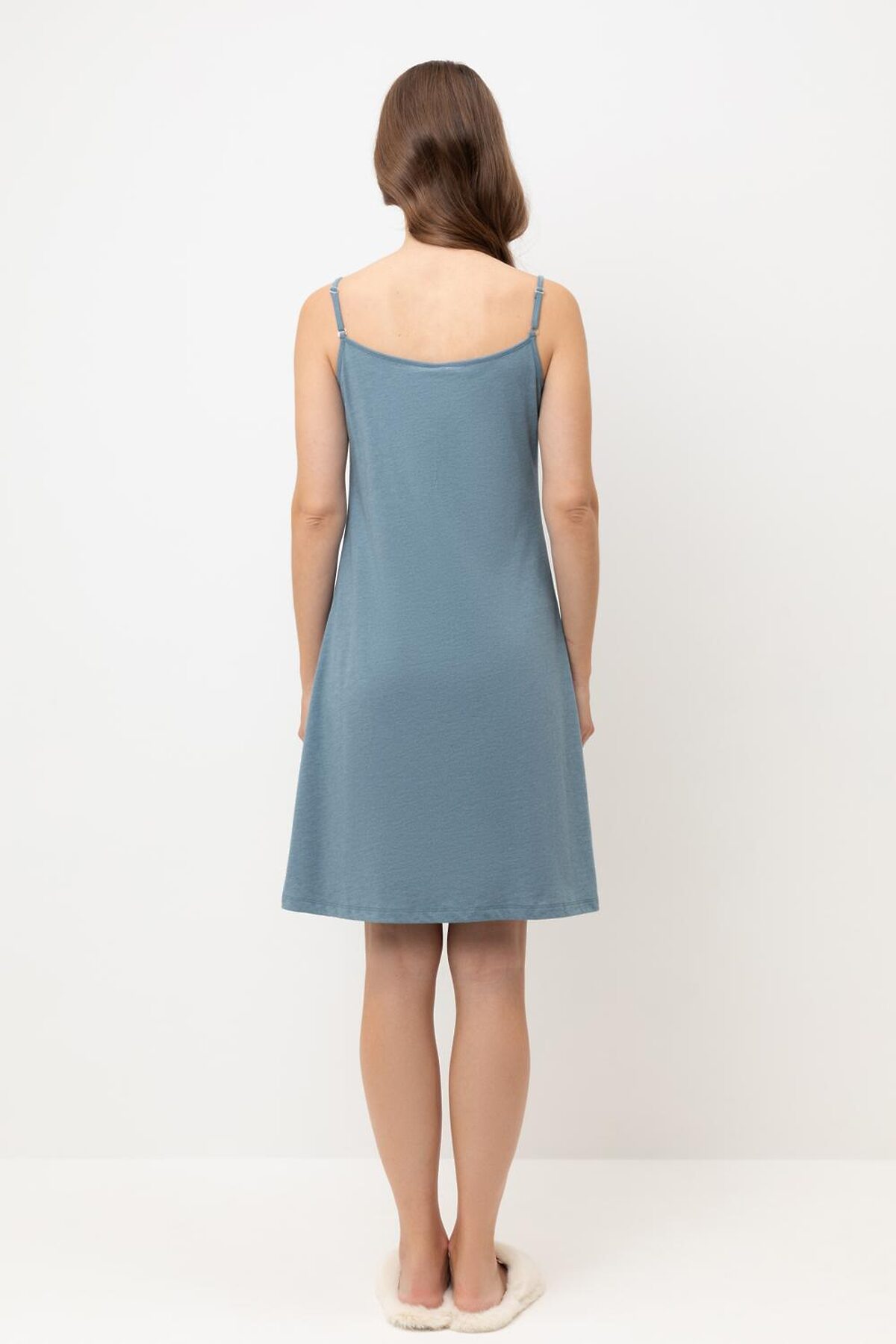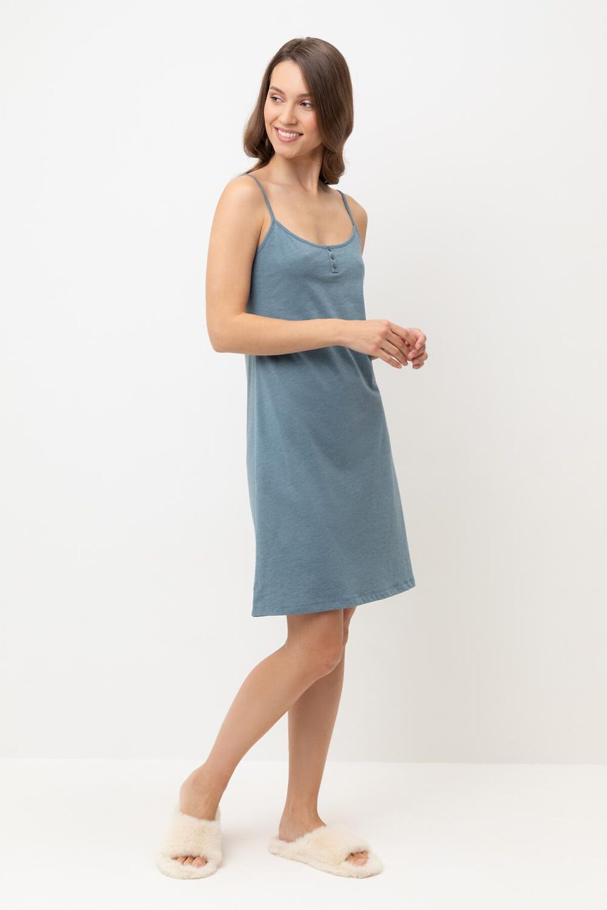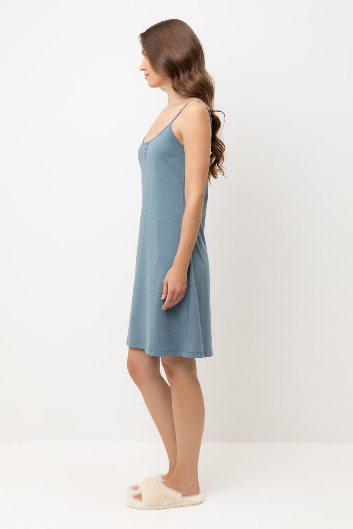 Элегантная женская сорочка с регулируемыми бретелями для комфортного сна. На груди декоративные пуговицы. Гладкий материал приятен к телу и позволяет коже дышать. Все трикотажные полотна производятся в соответствии с нормами Швейцарского сертификата ЭкоТекс. Сделано в Узбекистане - приталенный силуэт - гипоаллергенные красители - регулировка бретелей - эффект меланжа