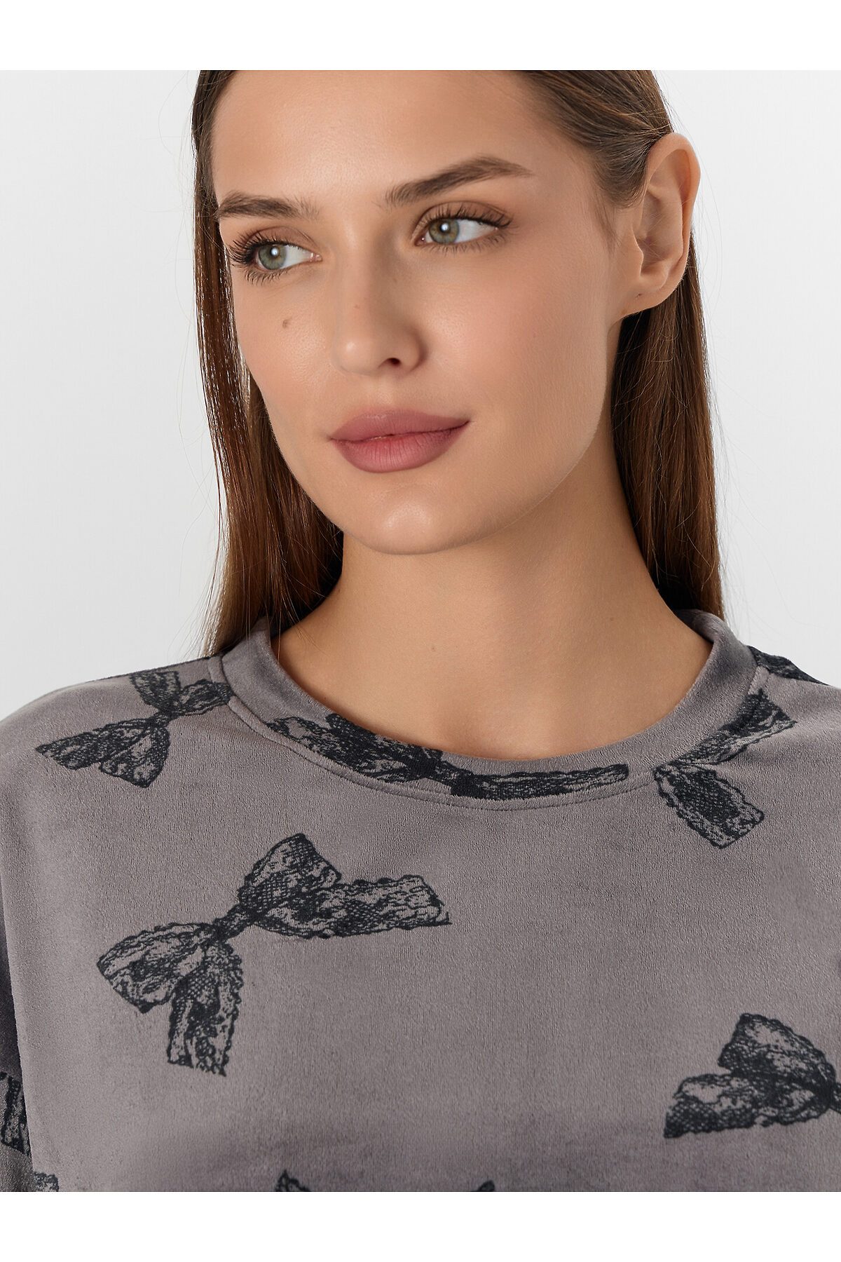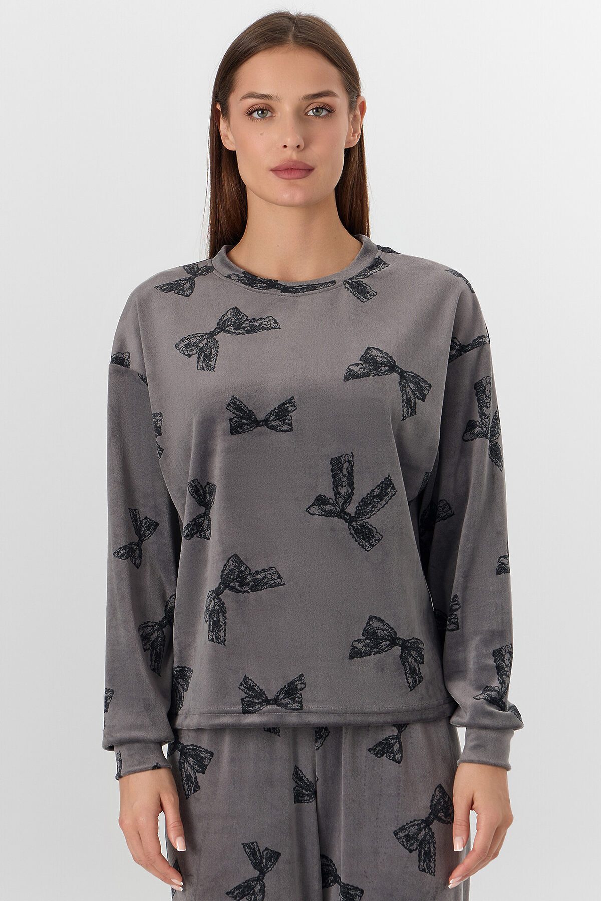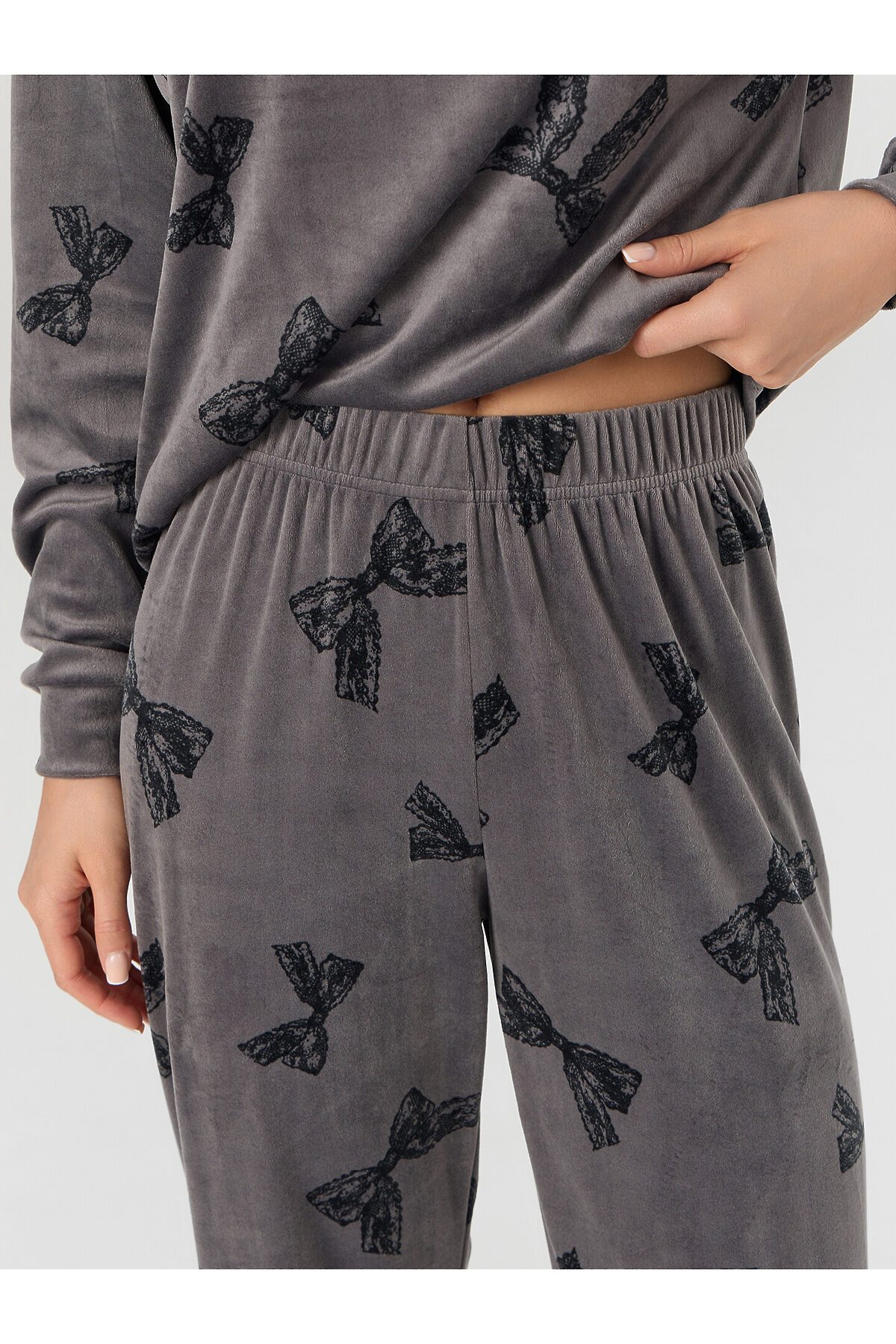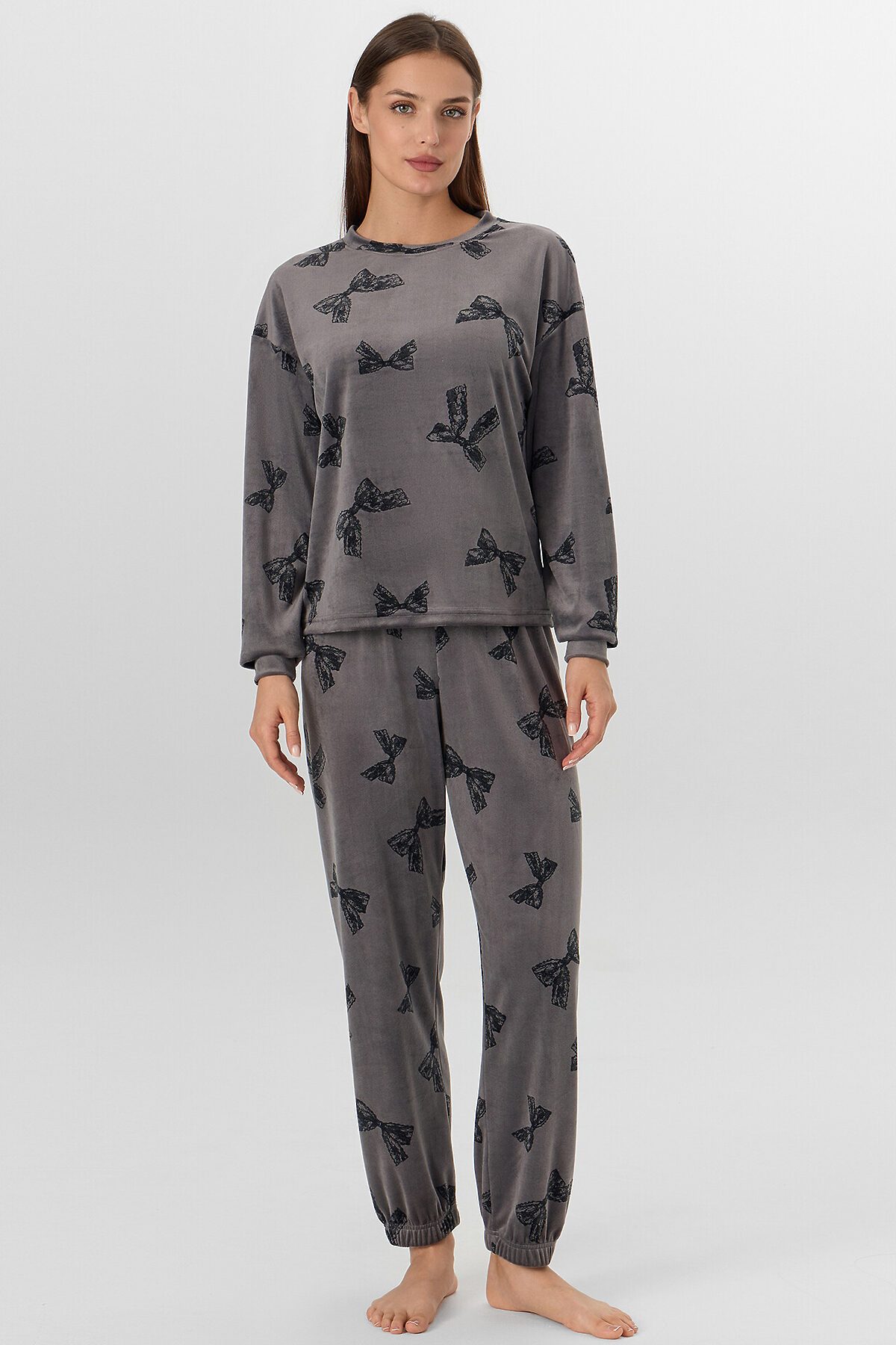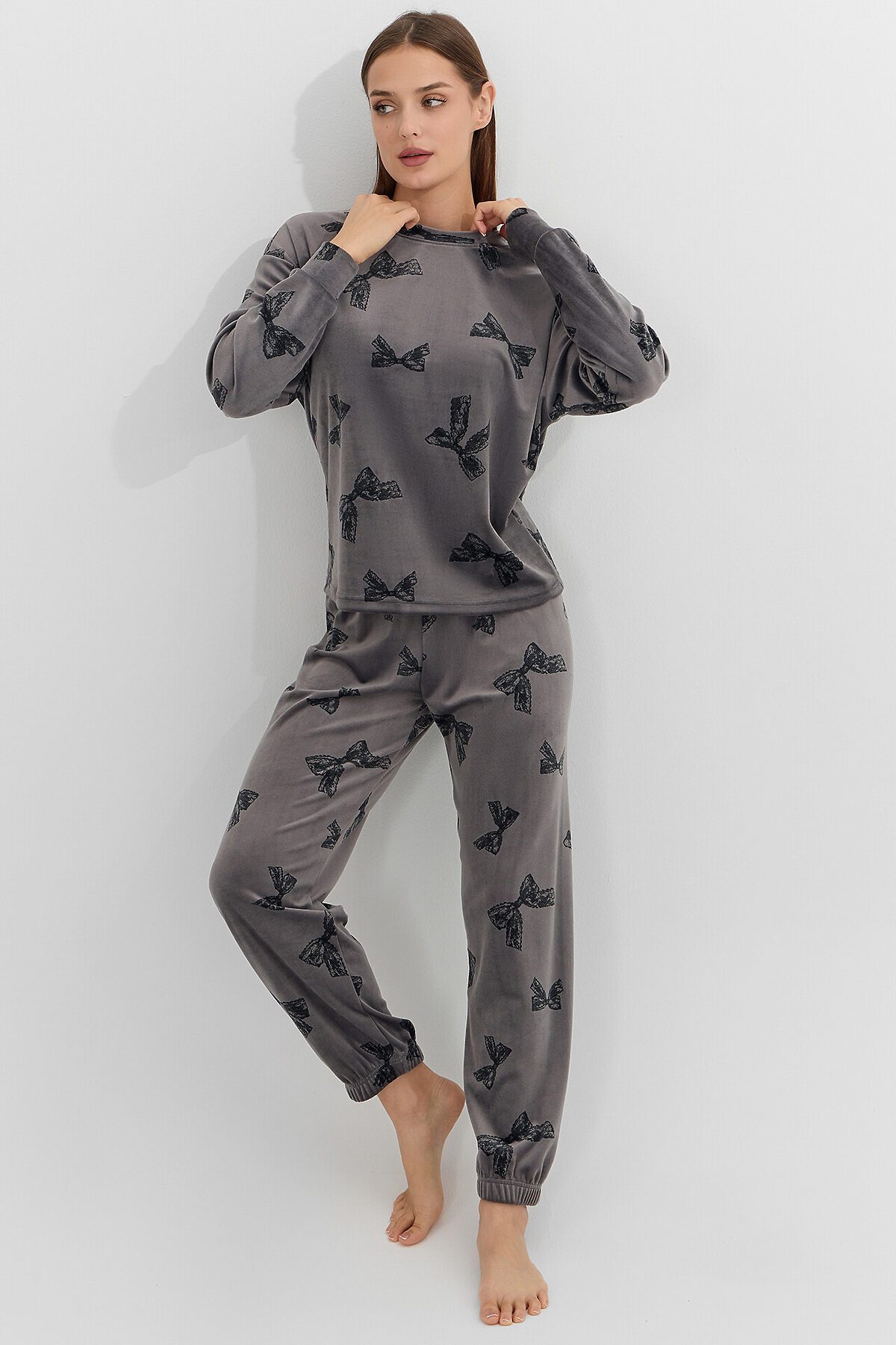 Серый велюровый комплект для женщин — ваш верный спутник для моментов полного расслабления и домашнего уюта. Набор состоит из джемпера прямого силуэта и свободных брюк, выполненных из мягкого велюра. Состав из полиэстера с добавлением эластана обеспечивает износостойкость, идеальное облегание и сохранение формы после многих стирок.