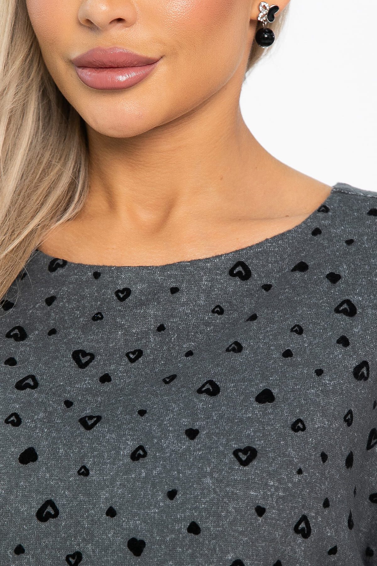 Стильное и комфортное решение для вашего повседневного гардероба. Этот уютный джемпер выполнен из качественного трикотажа серого цвета, украшен нежным принтом с сердечками, который добавляет образу игривость и очарование. Универсальный серый цвет, легко сочетающийся с различными элементами гардероба. Отлично подойдет как для прогулок по городу, так и для встреч с друзьями. Не упустите возможность стать обладательницей этого модного и комфортного изделия!