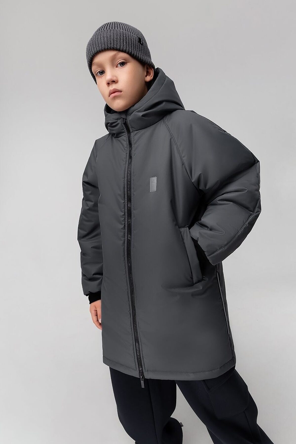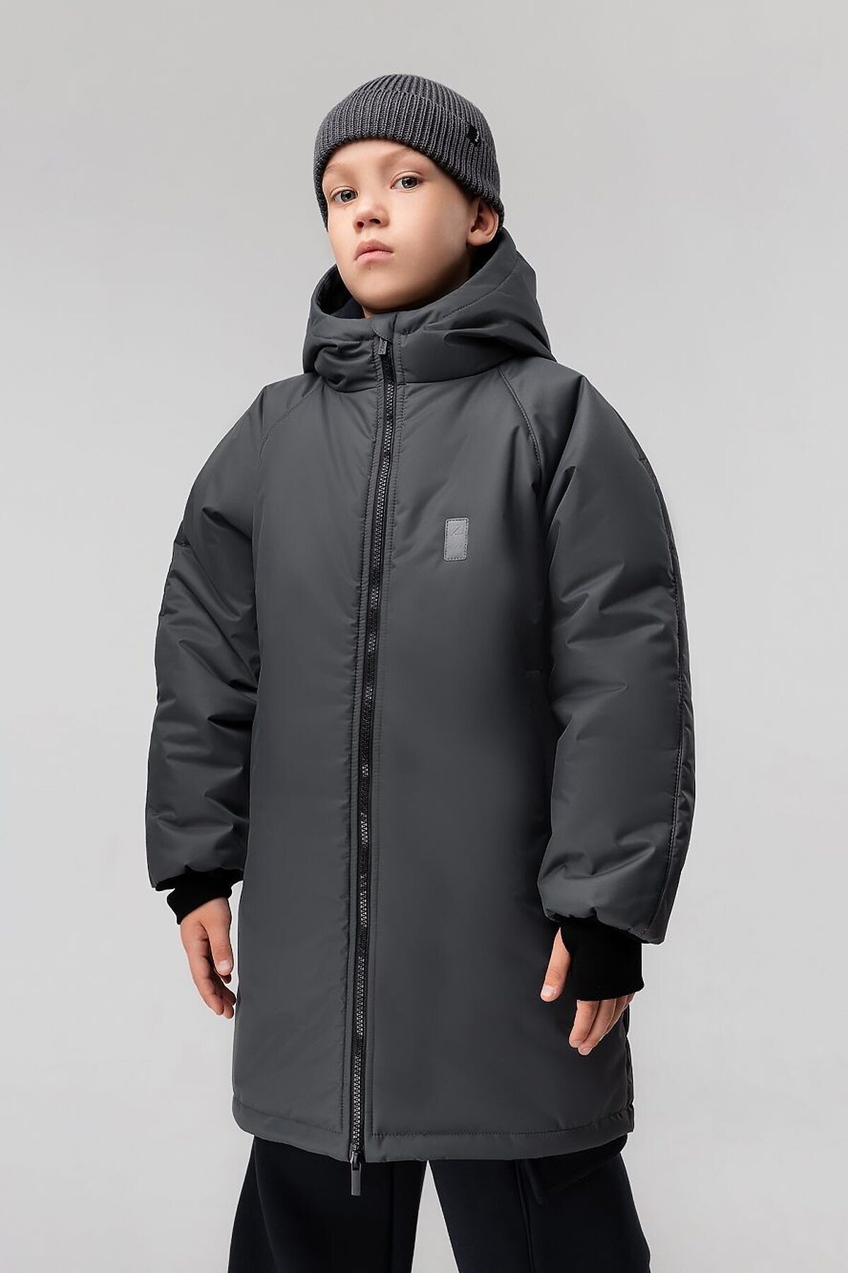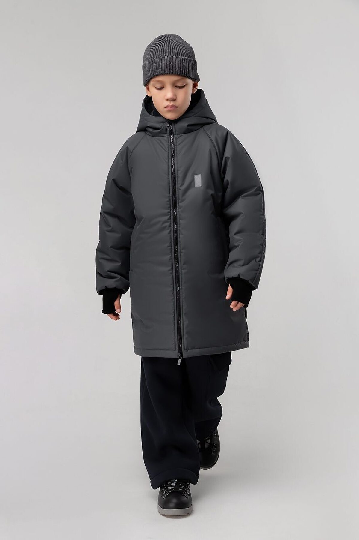 Пальто для детей школьного возраста, утеплённое на подкладке, прямого силуэта, с центральной застёжкой на тесьму -молния. Рукава реглан с притачной удлинённой манжетой с отверстием под палец. Капюшон со вставкой и с цельнокроеной стойкой. На полочке расположены карманы листочки с молнией. Материал верха: мембранная ткань 100% полиэстер, утеплитель Hetta micro 150 г/м², утеплитель в капюшоне Hetta micro 100 г/м², подкладочный материал флис 100% полиэстер. Мембрана 3000 мм/3000 г/м², флис 130 г/м². Температурный режим от 0 до -15 градусов, в зависимости от индивидуального теплообмена.
