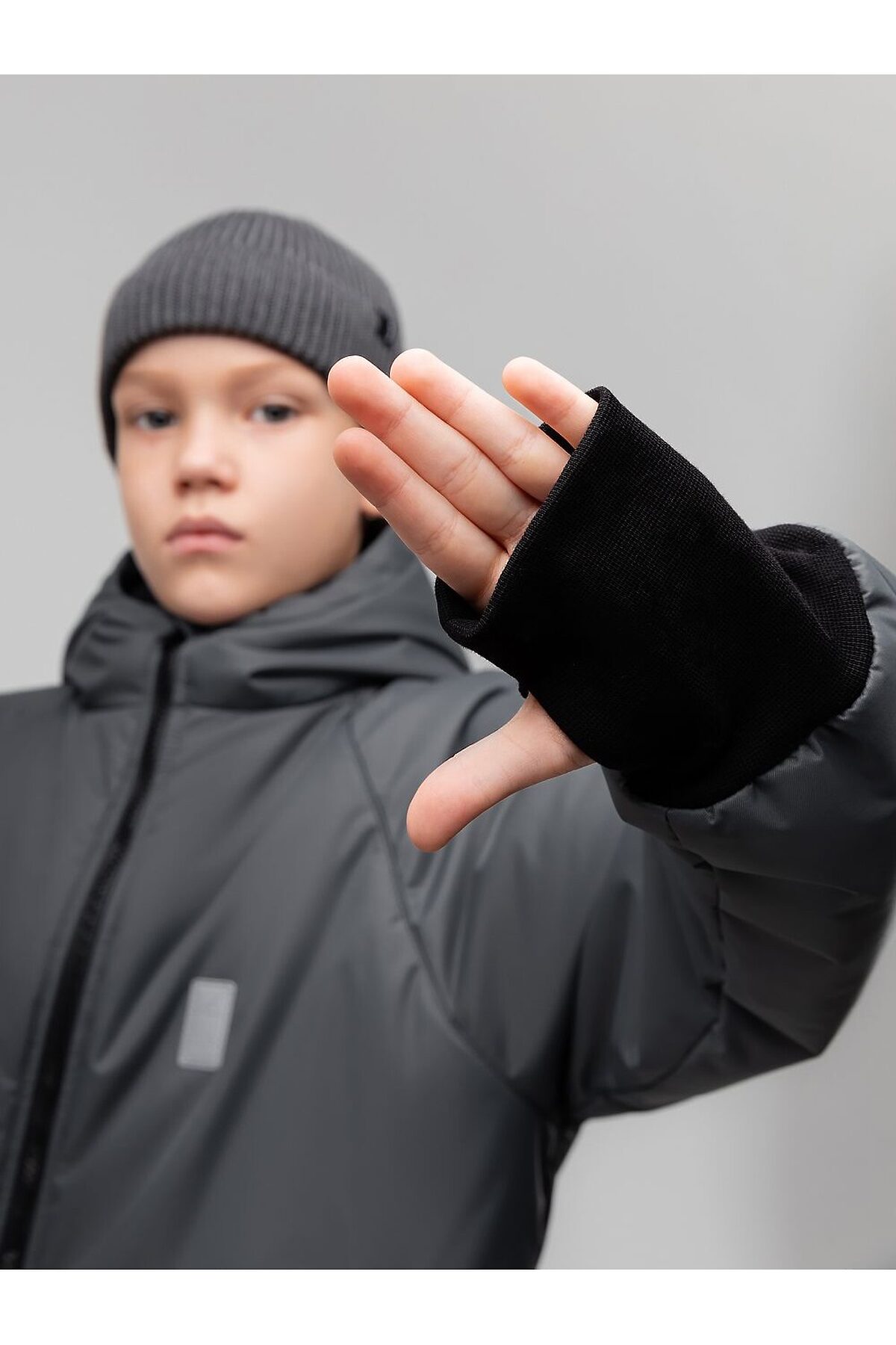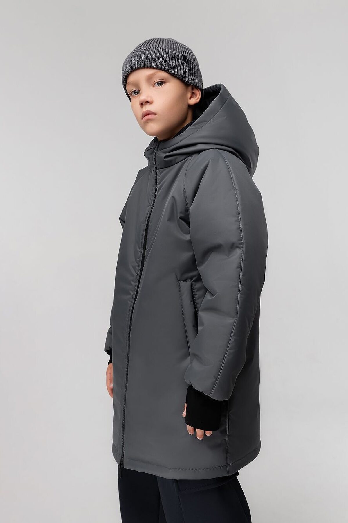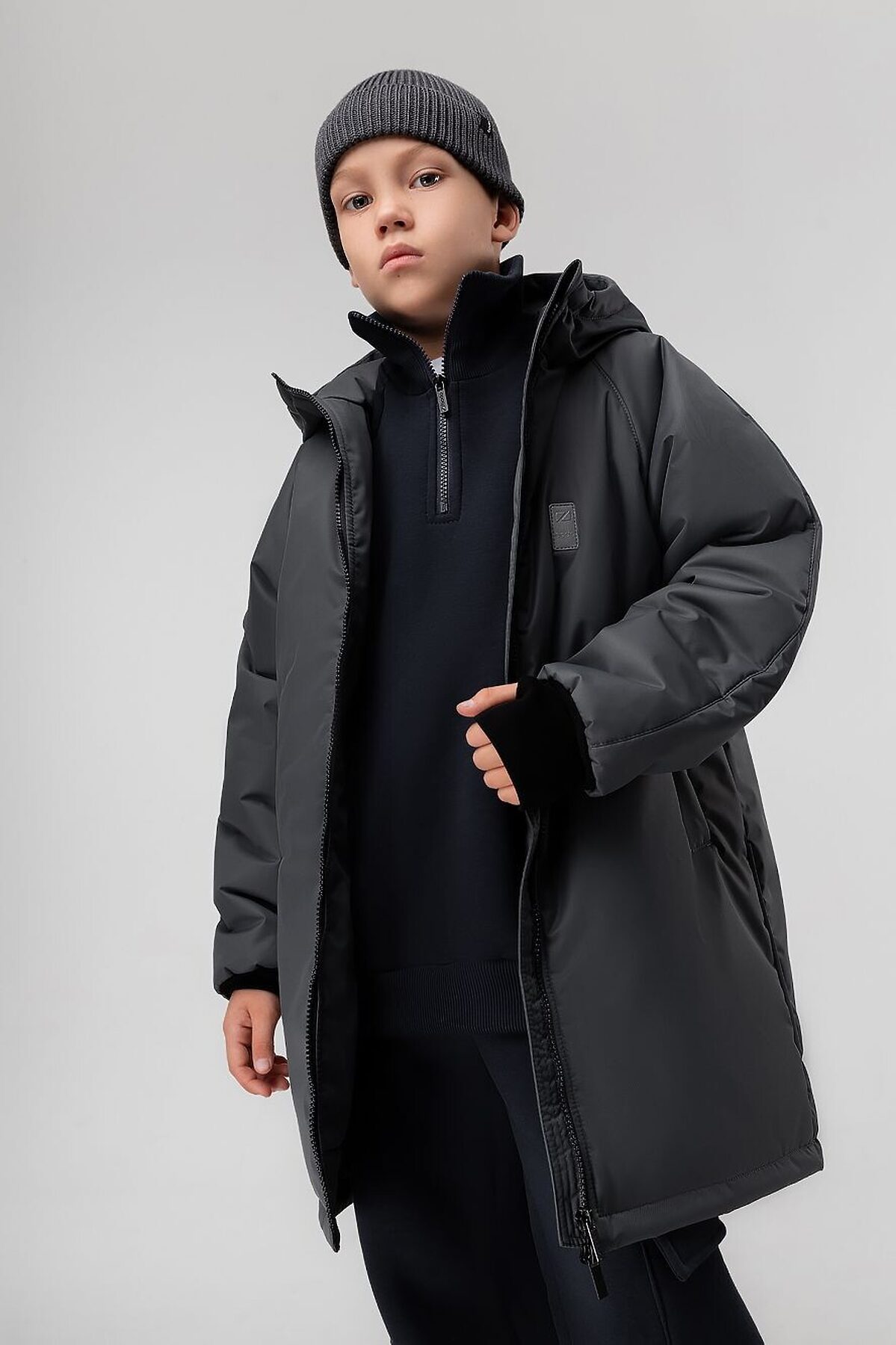 Пальто для детей школьного возраста, утеплённое на подкладке, прямого силуэта, с центральной застёжкой на тесьму -молния. Рукава реглан с притачной удлинённой манжетой с отверстием под палец. Капюшон со вставкой и с цельнокроеной стойкой. На полочке расположены карманы листочки с молнией. Материал верха: мембранная ткань 100% полиэстер, утеплитель Hetta micro 150 г/м², утеплитель в капюшоне Hetta micro 100 г/м², подкладочный материал флис 100% полиэстер. Мембрана 3000 мм/3000 г/м², флис 130 г/м². Температурный режим от 0 до -15 градусов, в зависимости от индивидуального теплообмена.